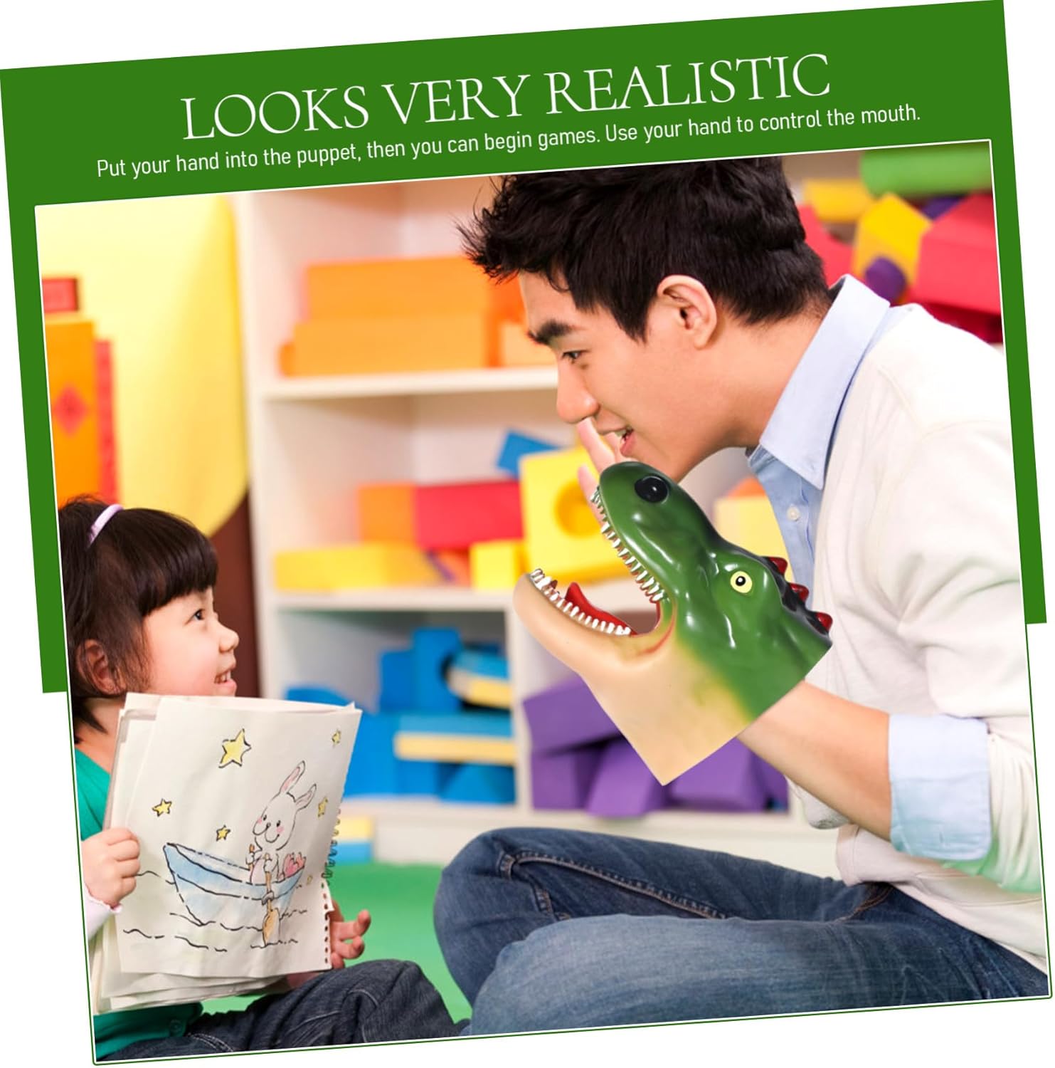 Burattini a mano in gomma - eccellenti interattivi per la casa, la scuola, l'asilo e altri centri di apprendimento, burattini a mano con animali, burattini a mano per raccontare storie - realizzati in materiale di gomma morbida, il burattino a mano è sicuro, durevole e può essere utilizzato più volte, burattini per bambini - ideali per attività di fantasia e interattive, migliorano le capacità di comunicazione e la relazione genitore-figlio, burattini per bambini Burattino a mano Dino - realizzato in materiale robusto e durevole, flessibile e buono Idrorepellente, burattini a mano per giochi di ruolo - perfetti per o compleanno, possono essere usati anche come educazione precoce, giocattolo per bambini con burattino a mano di dinosauro