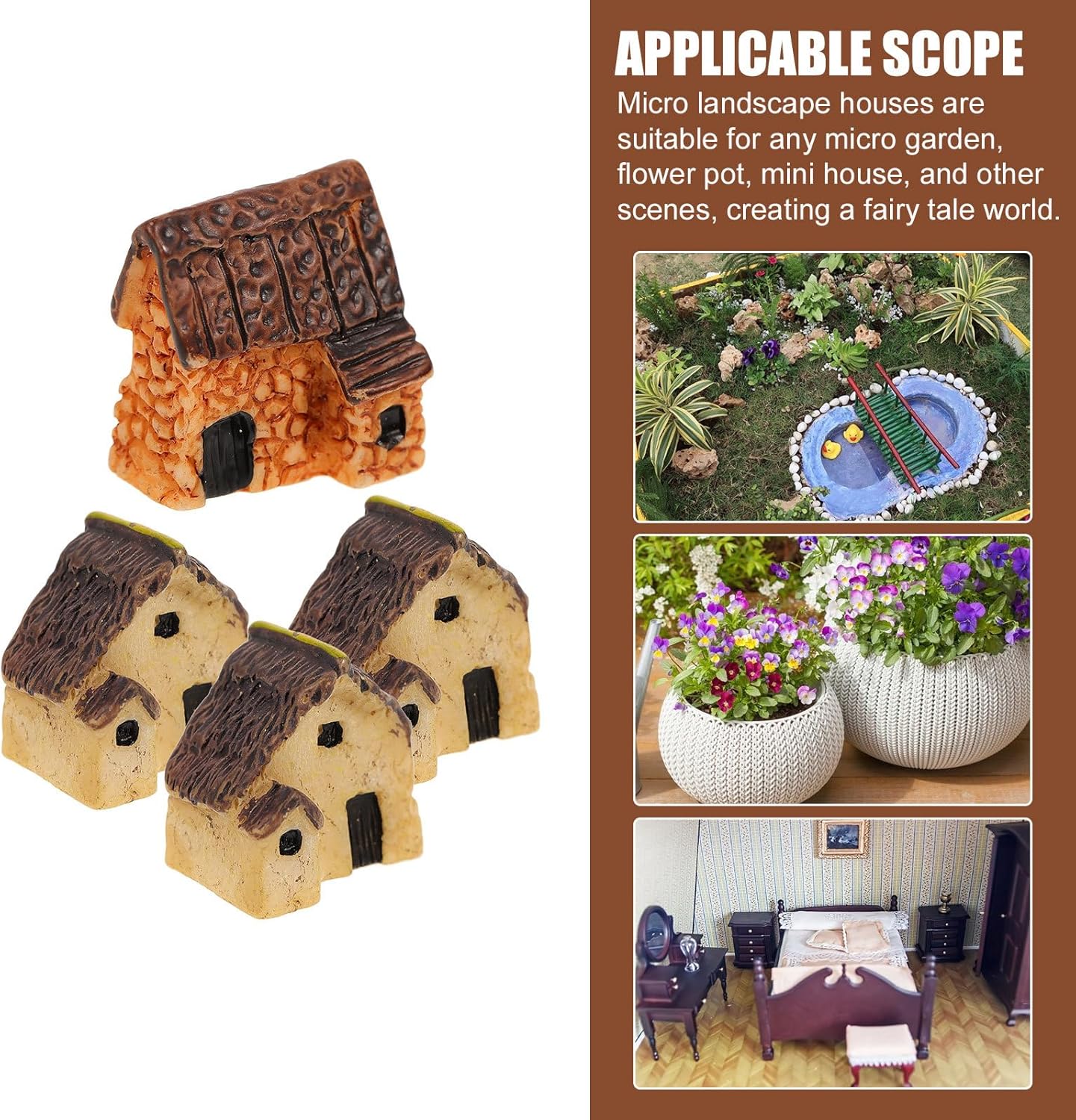 Multiuso: questa mini decorazione per casa in resina resistente è perfetta per esterni (patio, giardino) e interni (decorazione da tavolo) - Ideale come decorazione per case in miniatura per giardini fatati e altro ancora Crea mondi creativi fai-da-te: in un mini giardino, terrario, vaso di fiori o casa delle bambole, crea il tuo mondo magico con queste figure in miniatura del giardino fatato Case in miniatura dettagliate: 4 mini decorazioni uniche in qualità artigianale - realistiche e piene di fascino per scene realistiche del giardino fatato Per tutti i progetti in miniatura: perfette per la decorazione del giardino fatato in miniatura in contenitori di vetro, diorami o come un accento in un giardino roccioso. Trasforma qualsiasi luogo in un paese delle fate Ideale per gli amanti del giardino: regala questa decorazione domestica in miniatura agli amanti dei giardini fatati, un incantatore per creare insieme piccoli mondi da sogno
