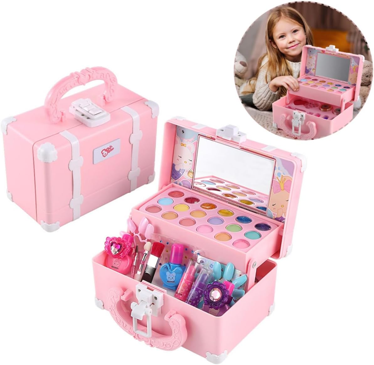 Trucco: questo trucco è realizzato in materiale ABS, per un uso sicuro, giocattolo per il trucco del trucco per ragazze: adorerai questo set completo per il trucco. Il materiale idrosolubile è pulito, non rimane e non danneggia la pelle, quindi con i giocattoli per il trucco puoi giocare a giochi di ruolo per: questo set per il trucco è per uscire con gli amici, un set interattivo per il trucco per il trucco per ragazze: uso dei muscoli addominali come materiale, alto livello di sicurezza, può, sensazione delicata e buoni giocattoli per il trucco lavabili trucco: uso di materiale ABS di alta qualità, per il tuo uso, Giochi di ruolo per ragazze
