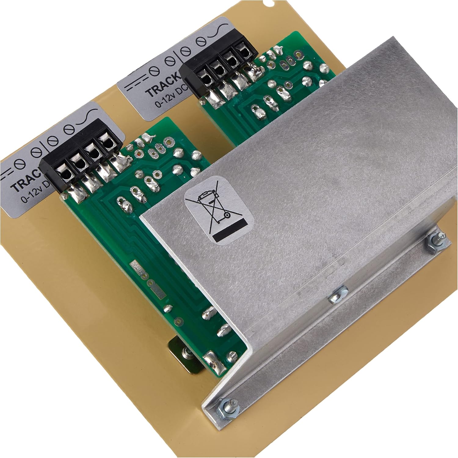 Funzione di controllo del feedback che consente alla locomotiva di mantenere la stessa velocità durante le pendenze su e giù Il controller ha due manopole rotanti per controllare la velocità di due locomotive e un interruttore DPDT Controller a doppia pista progettato per sedersi all'interno di un pannello di controllo