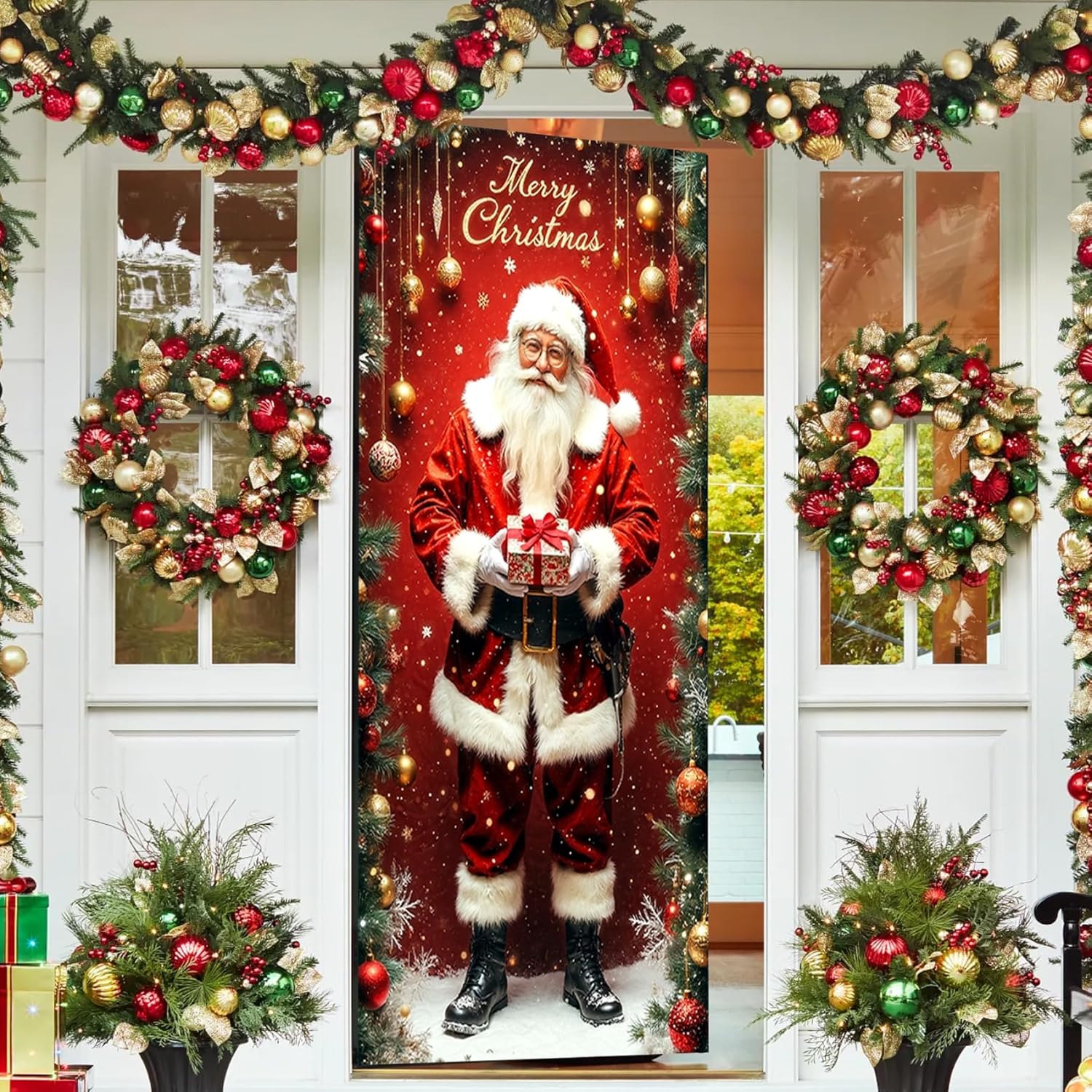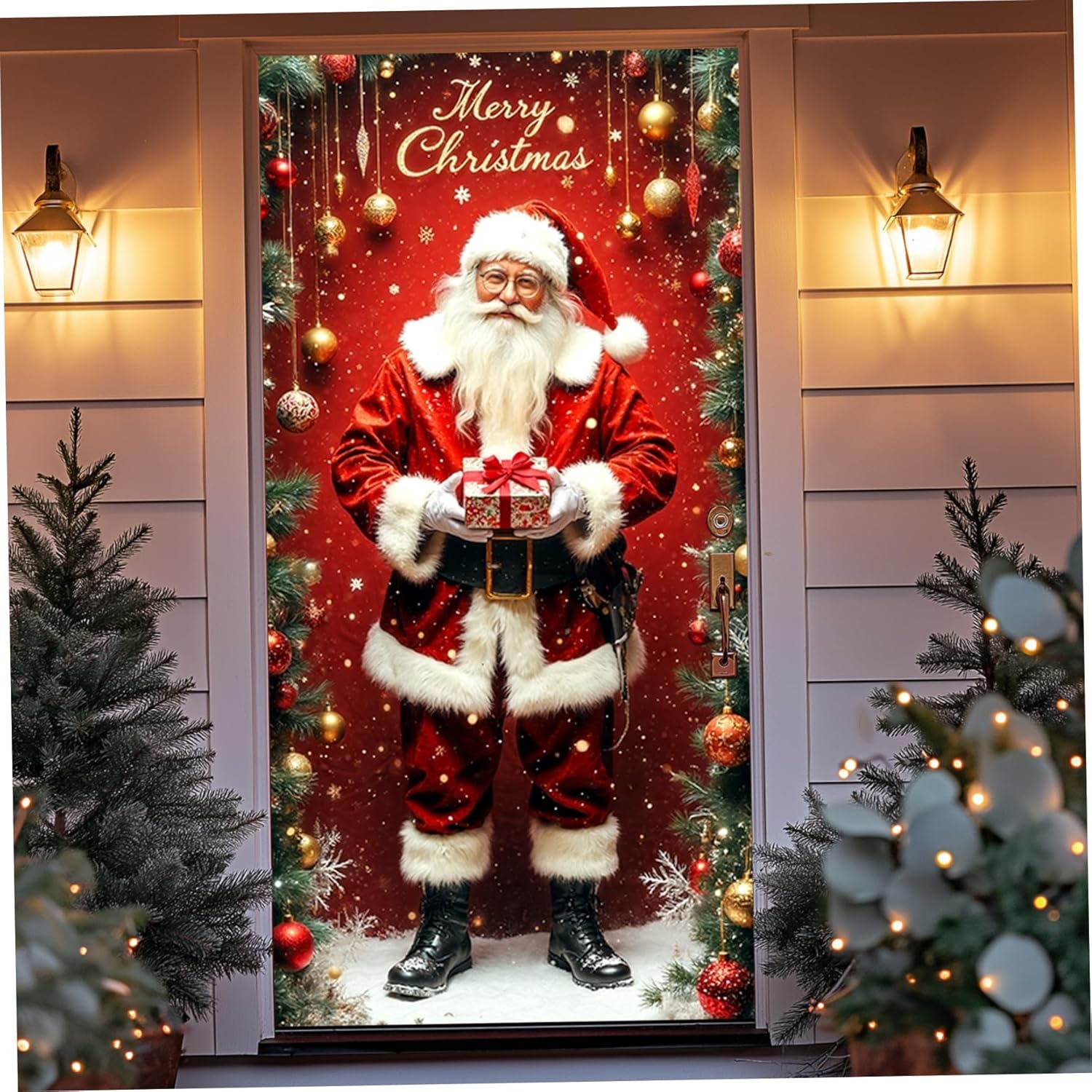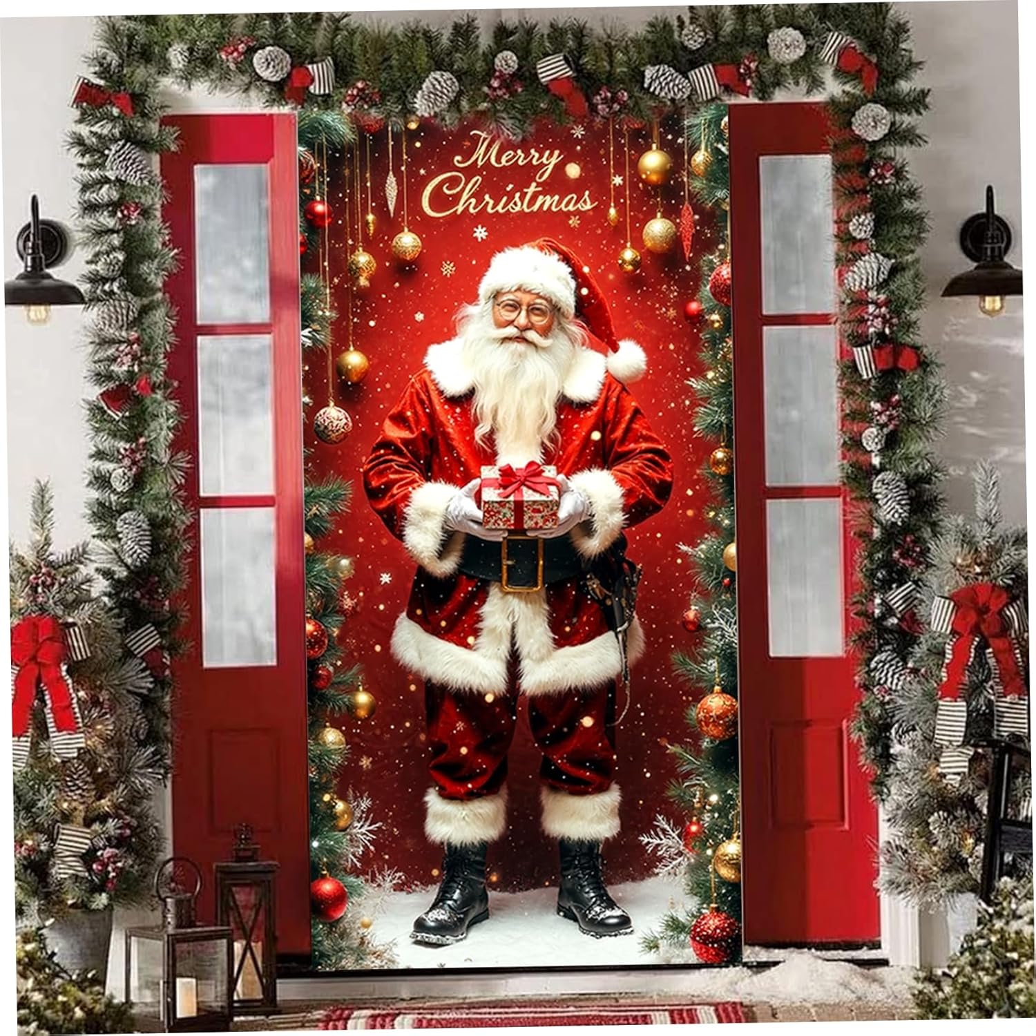 Holiday Cheer Boost: trasforma la tua porta d'ingresso in un centrotavola festivo con questa vivace copertura natalizia 35x71 per illuminare qualsiasi spazio interno o esterno e accogliere gli ospiti con spirito natalizio. ECOLOGICA E RIUTILIZZABILE: Scegliendo questa copertura per porta natalizia, contribuisci a festività natalizie sostenibili che riducono i rifiuti naturali riutilizzabili e forniscono un modo rispettoso dell'ambiente per decorare la tua casa anno dopo anno. DECORAZIONE VERSATILE: Perfetto per l'estetica della fattoria e della casa moderna, questo grande striscione per porta si abbina a varie decorazioni natalizie per interni o esterni, creando un'atmosfera vacanziera unificata e gioiosa ovunque venga esposto. FACILE INSTALLAZIONE E RIMOZIONE: dotata di funzioni di facile sospensione, questa copertura per porta della fattoria per le vacanze viene installata e rimossa rapidamente per farti risparmiare tempo e migliorare la porta d'ingresso per la festa di Natale o le celebrazioni stagionali. Durata superiore: questa copertura per porta riutilizzabile resiste agli elementi invernali anno dopo anno per garantire decorazioni natalizie di lunga durata su cui puoi fare affidamento dopo la stagione.