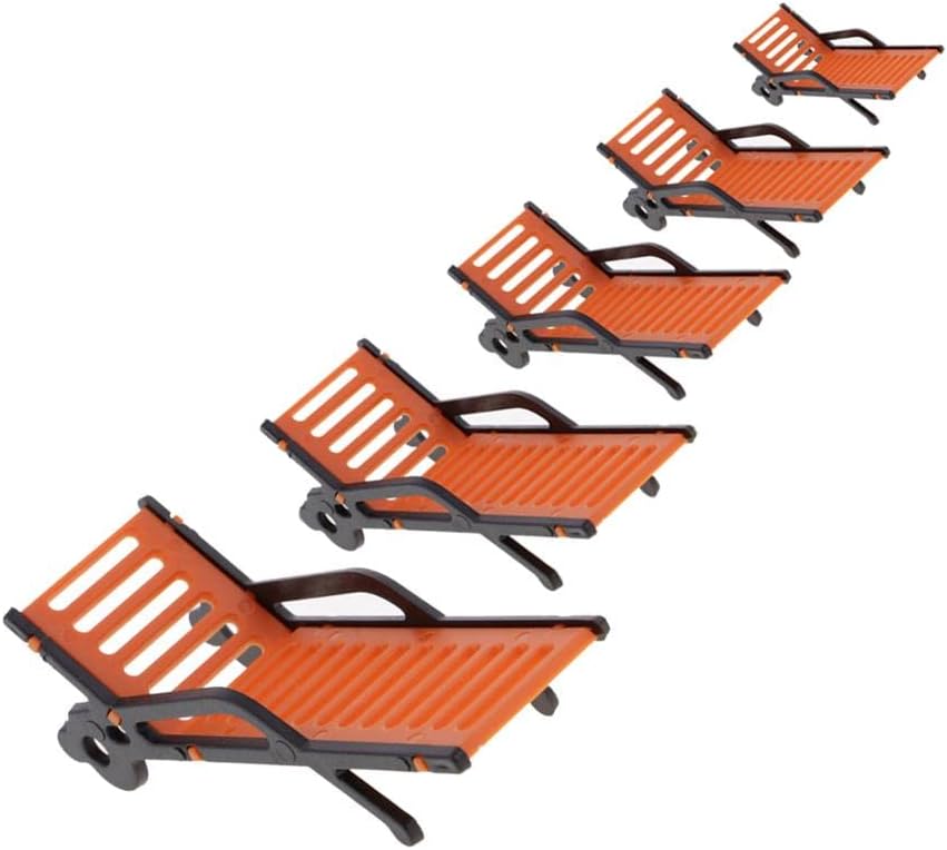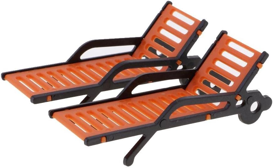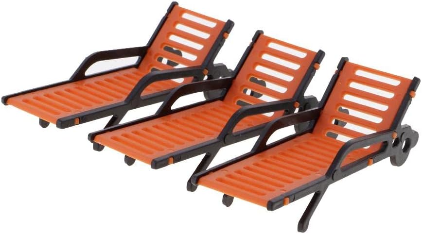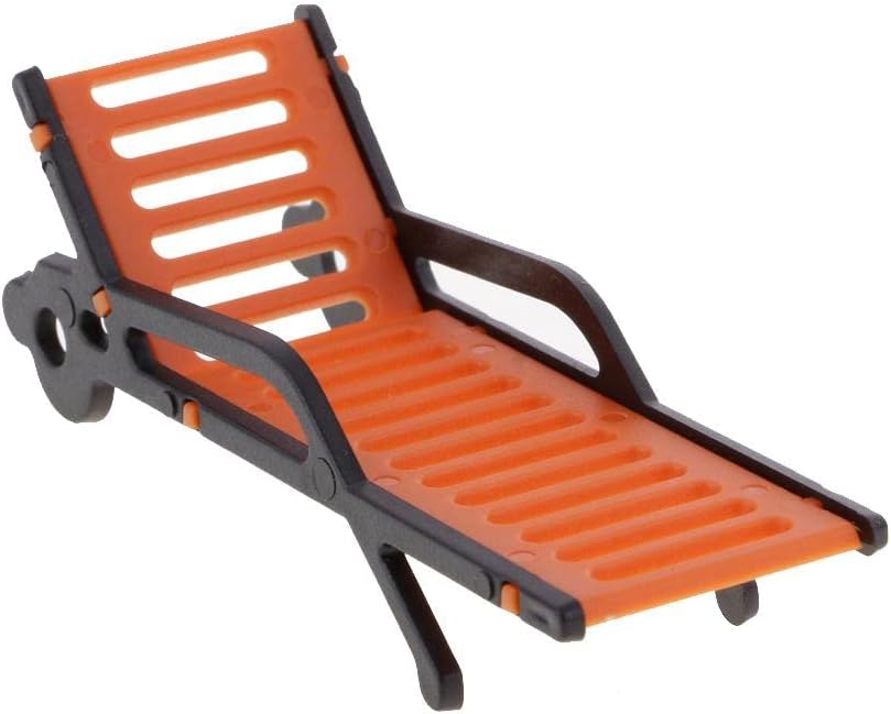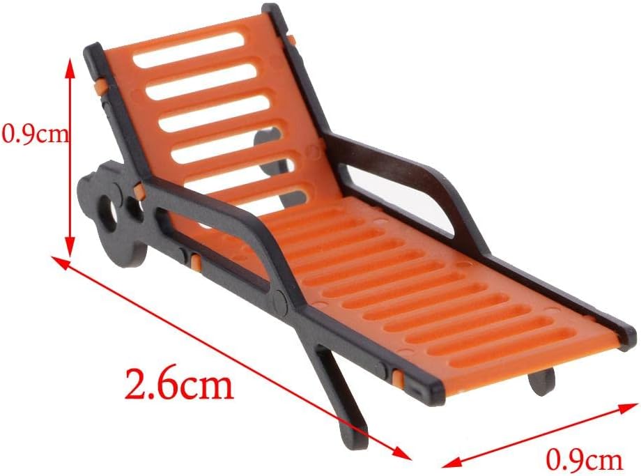 Materiale: plastica Apparizioni di simulazione con panca arancione e braccioli neri Migliora l'aspetto del paesaggio del tuo modello Perfetto da aggiungere al layout del paesaggio della tua spiaggia o casa per un tocco realistico 10 sedie a sdraio modello panchine da spiaggia