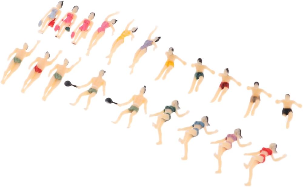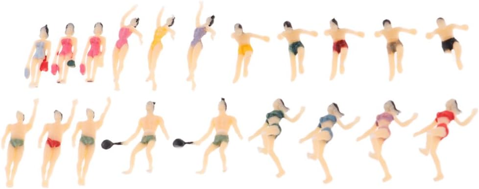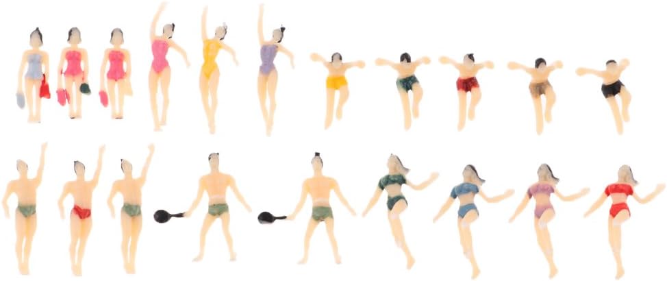 20Pcs N Scala 1:150 Dipinto Modello Figure Persone Maschio Femmina Nuotatore Dipinto e pronto per essere messo in posizione Perfetto per layout e modelli paesaggistici Scala 1:150 Confezione da 20 figure da spiaggia modello maschile e femminile