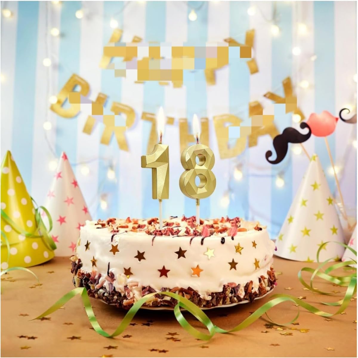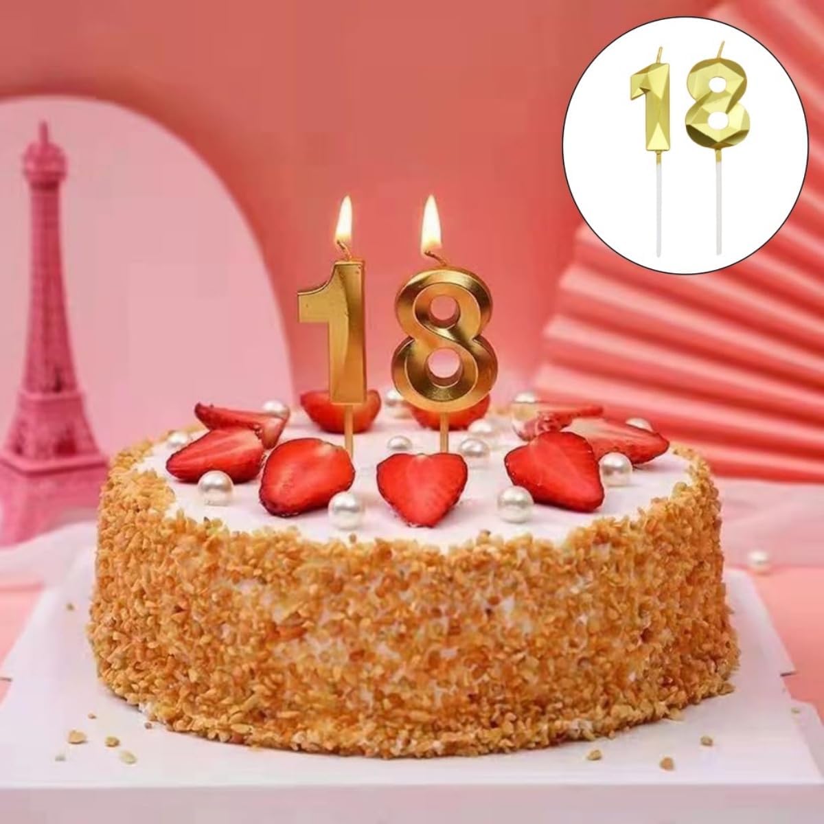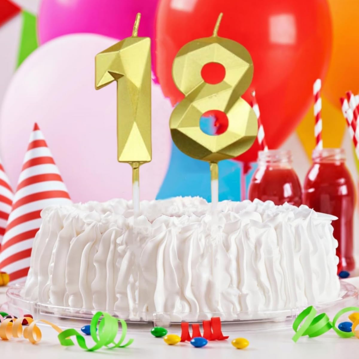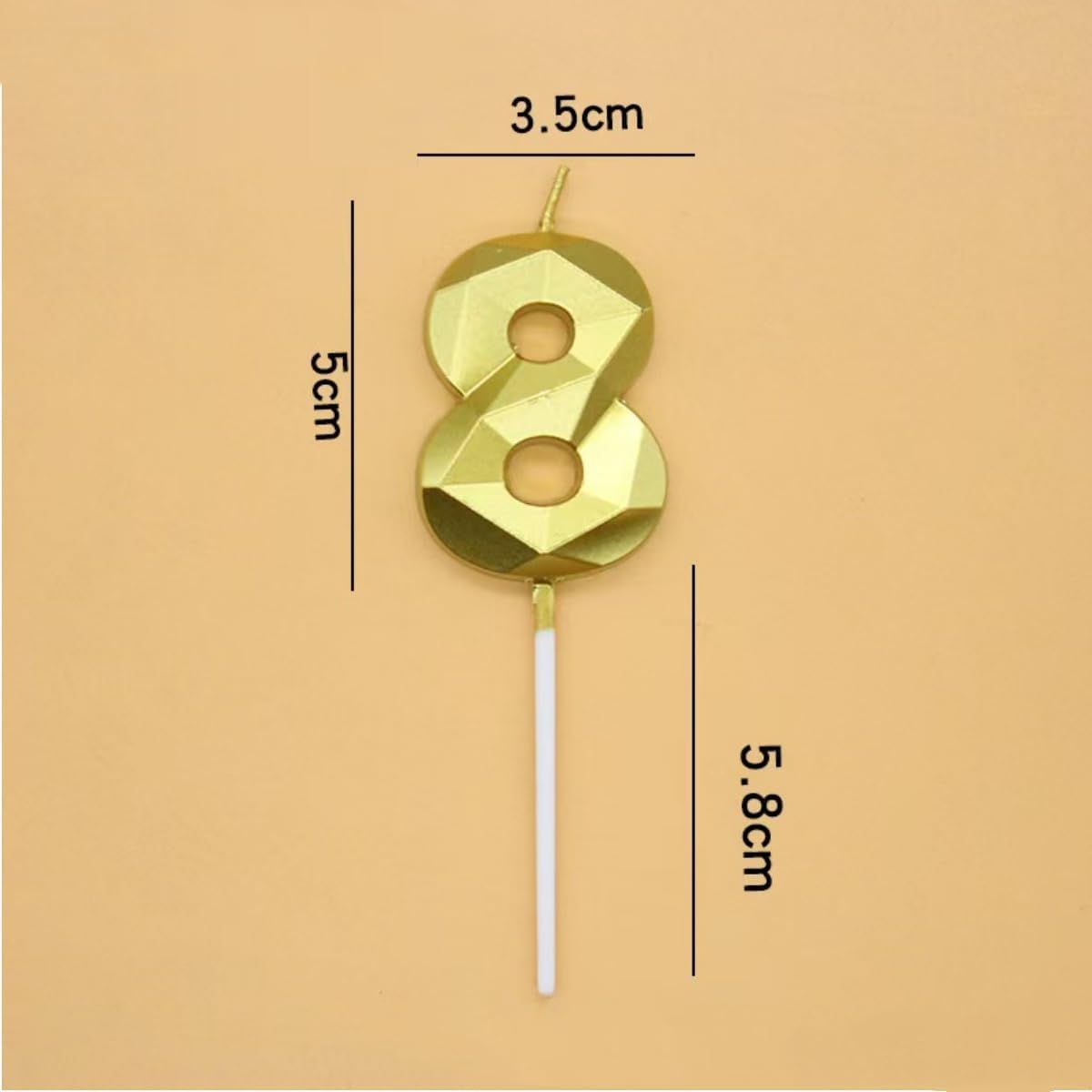 Materiale: realizzato in cera ecologica, senza additivi chimici. Le nostre candele con numeri dorati bruciano in modo uniforme, producono una fiamma stabile e sono inodori. Sicuro per i compleanni dei bambini e per il contatto con gli alimenti: ideale per essere inserito direttamente nelle torte Elegante design 3D a forma di diamante: l'esclusivo look metallico con sfaccettature prismatiche riflette efficacemente la luce. Le eleganti tonalità dorate aggiungono un tocco glamour a qualsiasi torta natalizia. Include una coppia di numeri (1+8) per combinazioni di anni flessibili. Dimensioni universali pratiche: dimensioni della candela: 10,8 cm x 3,5 cm. Proporzioni perfette per tortiere standard. Le nostre candele di compleanno hanno una forte forma tridimensionale, proprio come la superficie tagliente dei diamanti, adatte a persone di tutte le età e di entrambi i sessi Aspetto brillante: le nostre candeline di compleanno hanno una forma 3D e un aspetto dorato brillante, squisite e bellissime, per darti la sensazione di un cielo stellato. Il set di candele di compleanno scintillanti renderà la tua torta di compleanno ancora più attraente, creando un'atmosfera elegante e romantica alla tua festa Multifunzionali: queste candele sono di colore dorato, luminose e si illuminano al buio, il che le rende perfette per una varietà di feste ed eventi speciali. Che si tratti di compleanni, anniversari, matrimoni, festa del papà, festa della mamma, feste di laurea, feste a tema, feste di pensionamento, riunioni di famiglia, baby shower, mercatini di Natale o qualsiasi altra occasione, queste candele riporteranno alla mente bei ricordi per i tuoi amici e familiari
