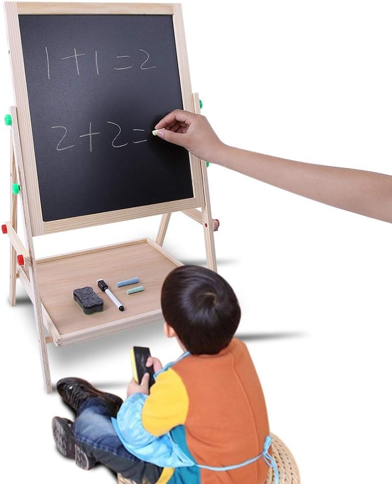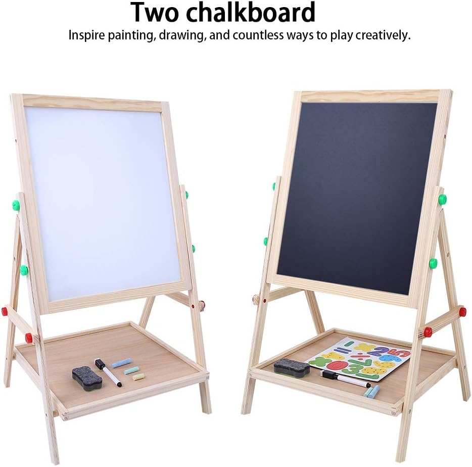 Realizzato in legno di pino premium, forte e resistente. Elevata stabilità e progettazione di prevenzione del ribaltamento. Cuci senza soluzione di continuità, ben lucidati, glabre e senza puntura, più sicuro. Altezza regolabile abilita può accompagnare i tuoi bambini durante l'intera infanzia. Tra cui 2 lavagna, ispira pittura, disegno e innumerevoli modi per giocare in modo creativo.