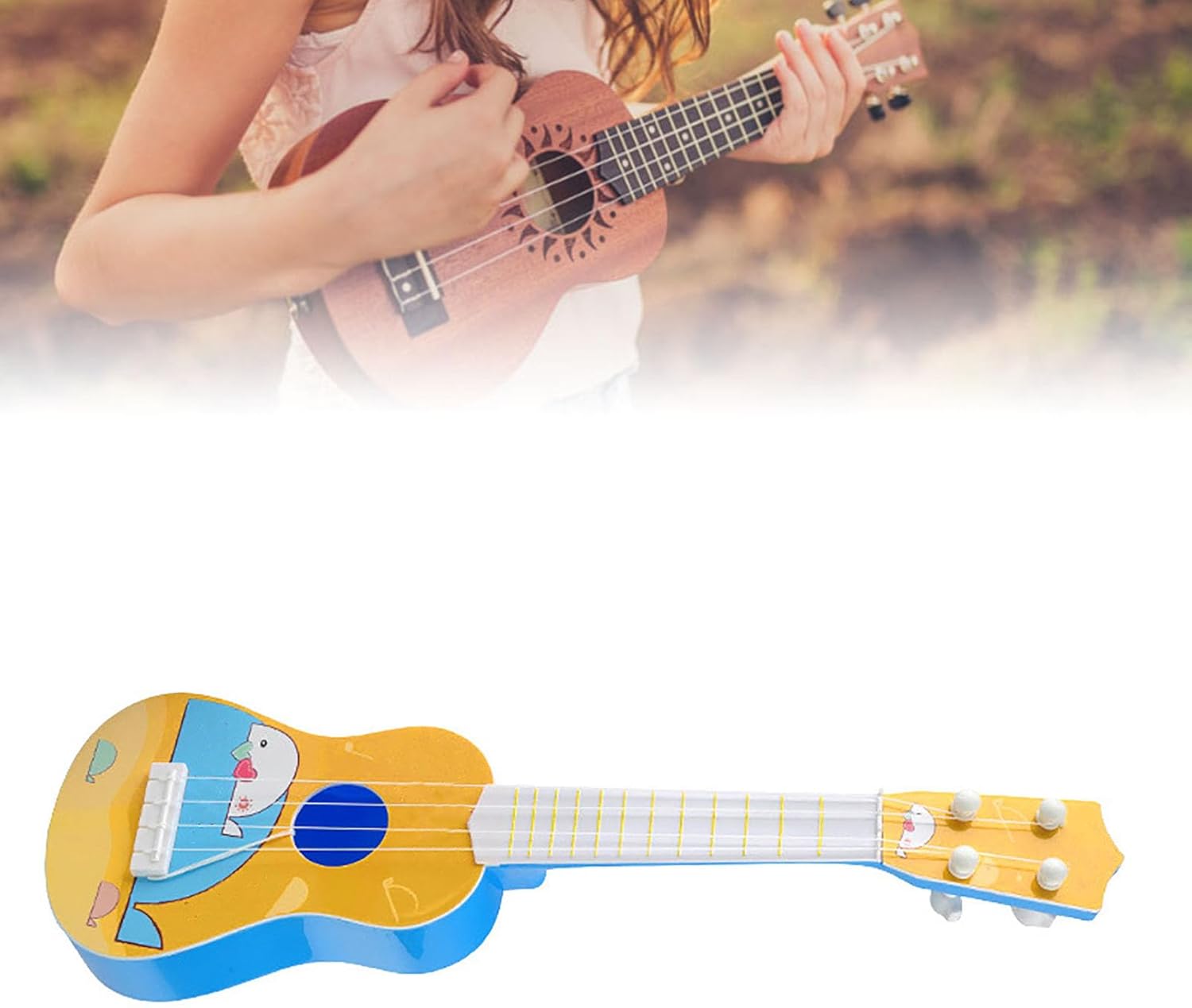 PORTATILE: il piccolo ukulele è compatto e leggero, facile da trasportare e riporre, i bambini possono ascoltare la musica sempre e ovunque, è un compagno ideale per le attività domestiche, scolastiche e all'aperto. MATERIALE ECCELLENTE: il giocattolo per strumenti musicali ukulele è realizzato in materiale eccellente con durata per resistere all'uso e al gioco dei bambini. DISEGNI COLORATI: modelli carini sono usati sul giocattolo dell'ukulele per attirare l'attenzione e l'interesse dei bambini, aumentare il divertimento dello strumento. DESIGN ADATTO AI BAMBINI: questo strumento giocattolo per ukulele per bambini è appositamente progettato per i bambini, le dimensioni sono adatte e facili da tenere e suonare, in modo che i bambini possano iniziare rapidamente a imparare e godersi la musica. EDUCATIVO: questo piccolo ukulele può aiutare i bambini a sviluppare la percezione della musica, la coordinazione occhio-mano e l'espressione musicale e ispirare la loro immaginazione