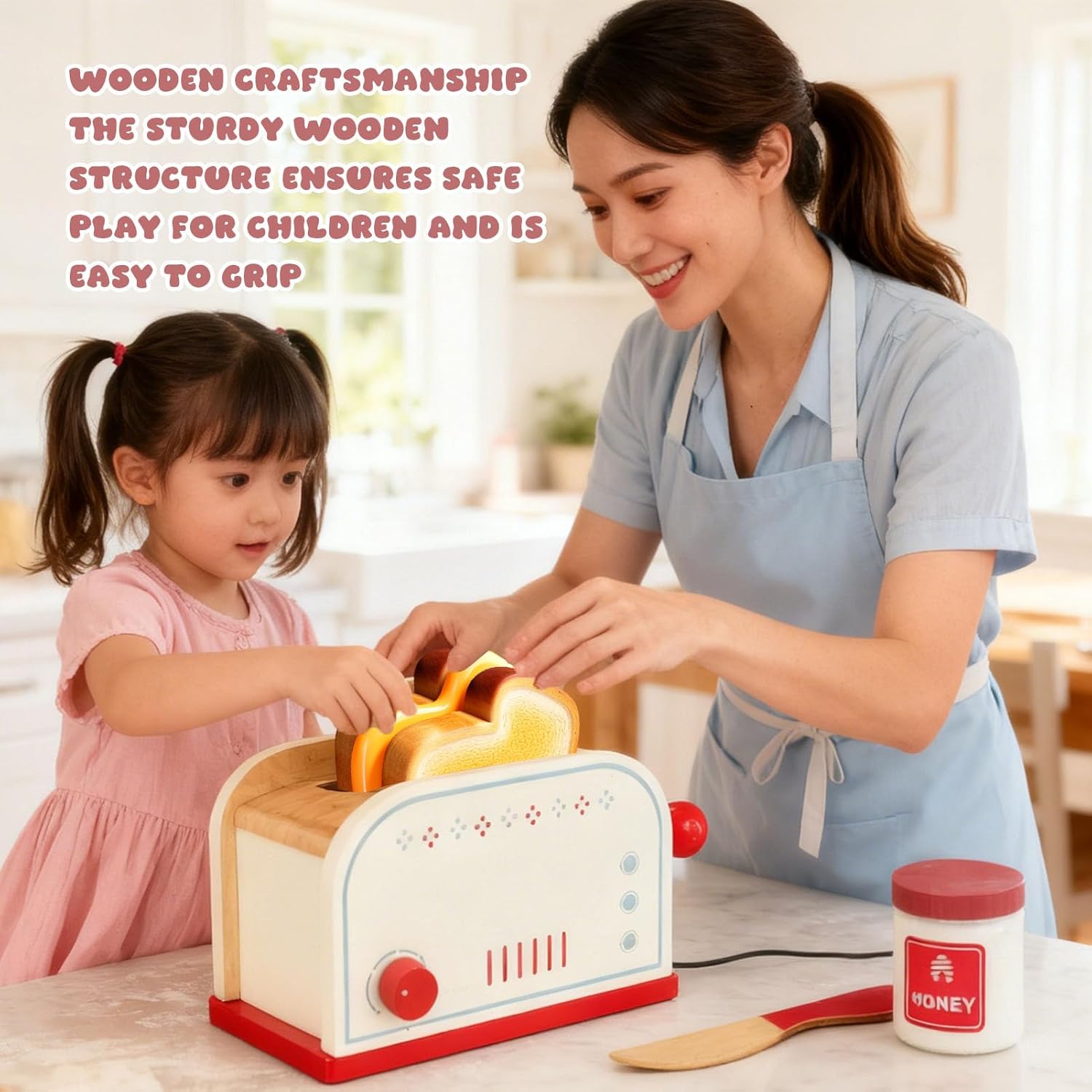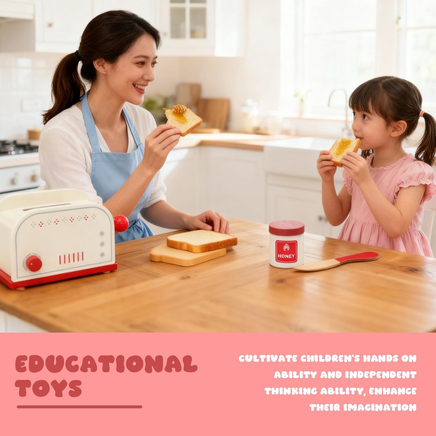 [Costruzione ] Realizzato in legno, il set da gioco da cucina è costruito per resistere a giochi difficili garantendo al tempo stesso la sicurezza. da sostanze chimiche nocive e schegge, fornendo un ambiente di gioco preoccupante per i bambini. il design robusto garantisce un uso duraturo anche nelle sale giochi affollate. [Accessorio da cucina giocattolo] Questo giocattolo per la macchina del pane si adatta perfettamente a qualsiasi cucina da gioco o configurazione domestica. le dimensioni compatte lo rendono facile da riporre, mentre il design senza tempo garantisce che rimanga il giocattolo preferito per anni. ottimo per il gioco da o le attività di gruppo, [ Esperienza di gioco con il tostapane] Questo set da gioco con tostapane in legno presenta un design classico che imita il vero processo di tostatura, completo di finte fette di pane. il gioco interattivo stimola la creatività e l'immaginazione, rendendolo una deliziosa aggiunta a qualsiasi allestimento della cucina da gioco. [Sviluppo educativo] Adatto sia a ragazzi che a ragazze, questo set da gioco migliora le capacità motorie e incoraggia il pensiero . il gioco in cucina promuove lo sviluppo cognitivo e l'interazione sociale mentre i bambini si impegnano in scenari di cucina finta con amici o familiari. [Dettagli del giocattolo da cucina] Progettato con attenzione ai dettagli, questo set di tostapane in legno include funzionalità che affascinano le giovani menti. il set viene fornito con tutto il necessario per un'esperienza di colazione finta completa, rendendolo ideale per i giovani aspiranti chef.