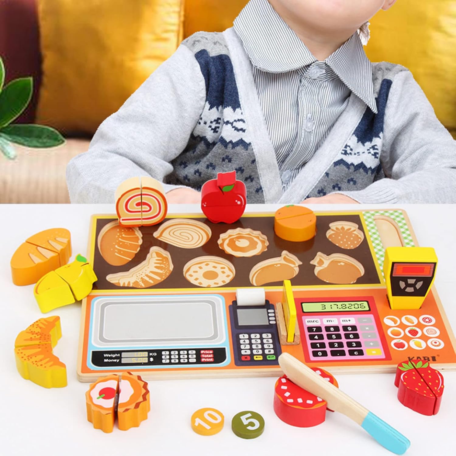 Gioca insieme: il set da gioco per tagliare frutta e verdura può essere giocato con amici e genitori, il che può promuovere le relazioni tra di loro. Sviluppa abilità: i bambini fingono che tagliare il set di cibo può migliorare l'attenzione dei bambini, il pensiero logico, l'abilità pratica e la pazienza. Migliora la coordinazione: il giocattolo per tagliare la frutta e la verdura dei bambini può migliorare la flessibilità delle del bambino, sviluppare la coordinazione occhio-mano. Dimensioni perfette: fai finta di tagliare il set di alimenti con una dimensione adatta per le mani piccole, in modo che i bambini possano affettarli con precisione con un coltello di legno. Cognizione del cibo: fai finta di giocare al set di taglio del cibo che consente al bambino di avere una comprensione percettiva di taglieri, frutta, verdura e coltelli,