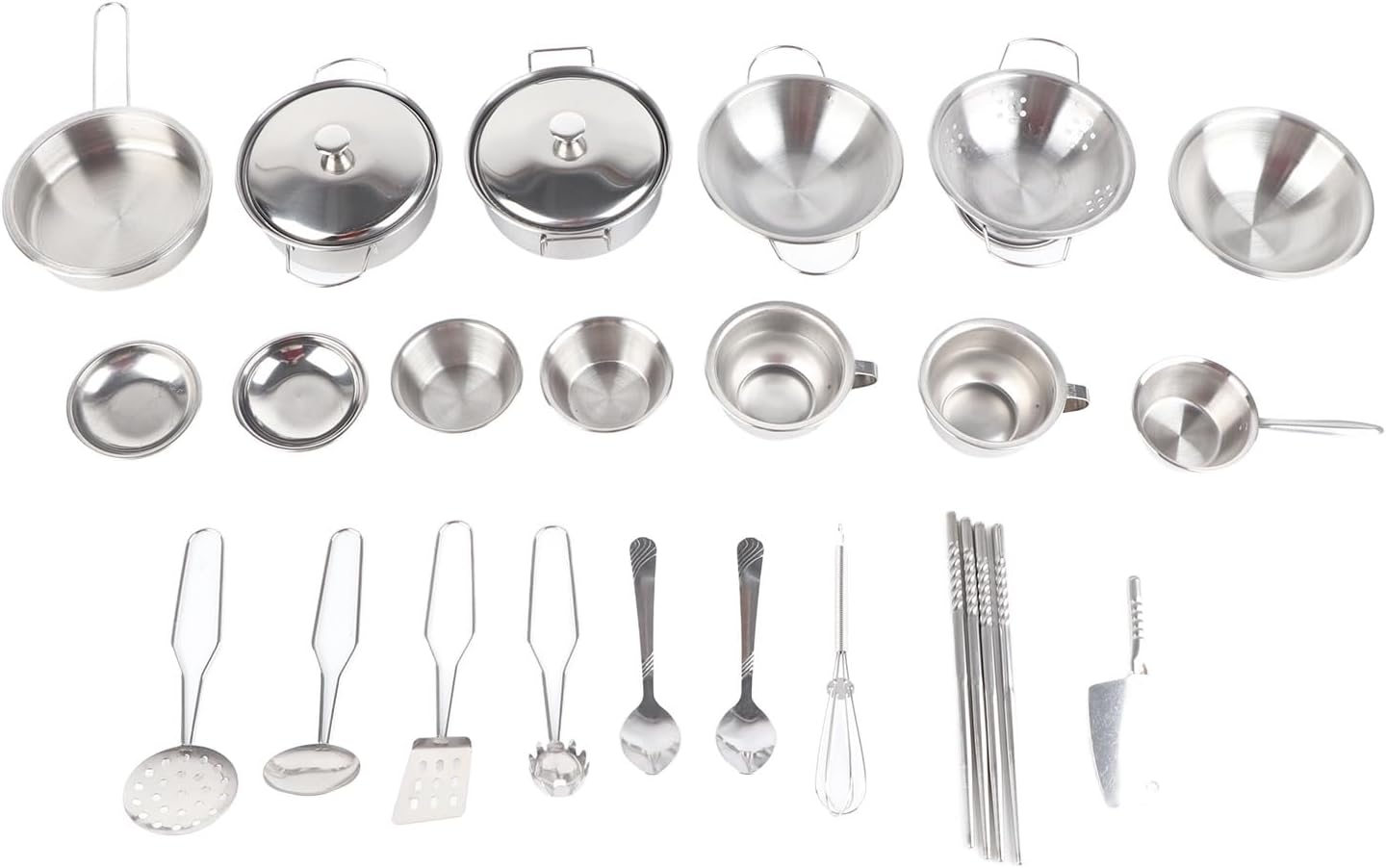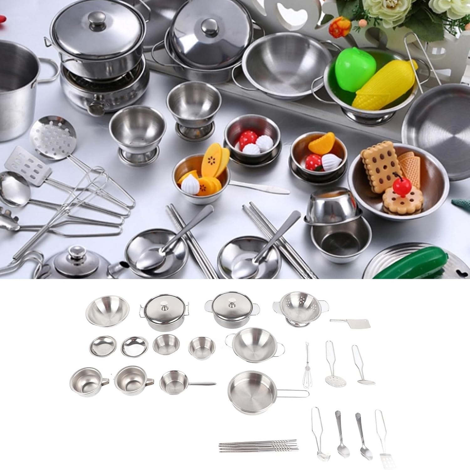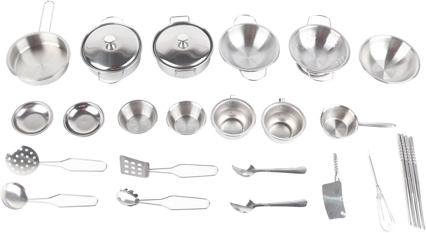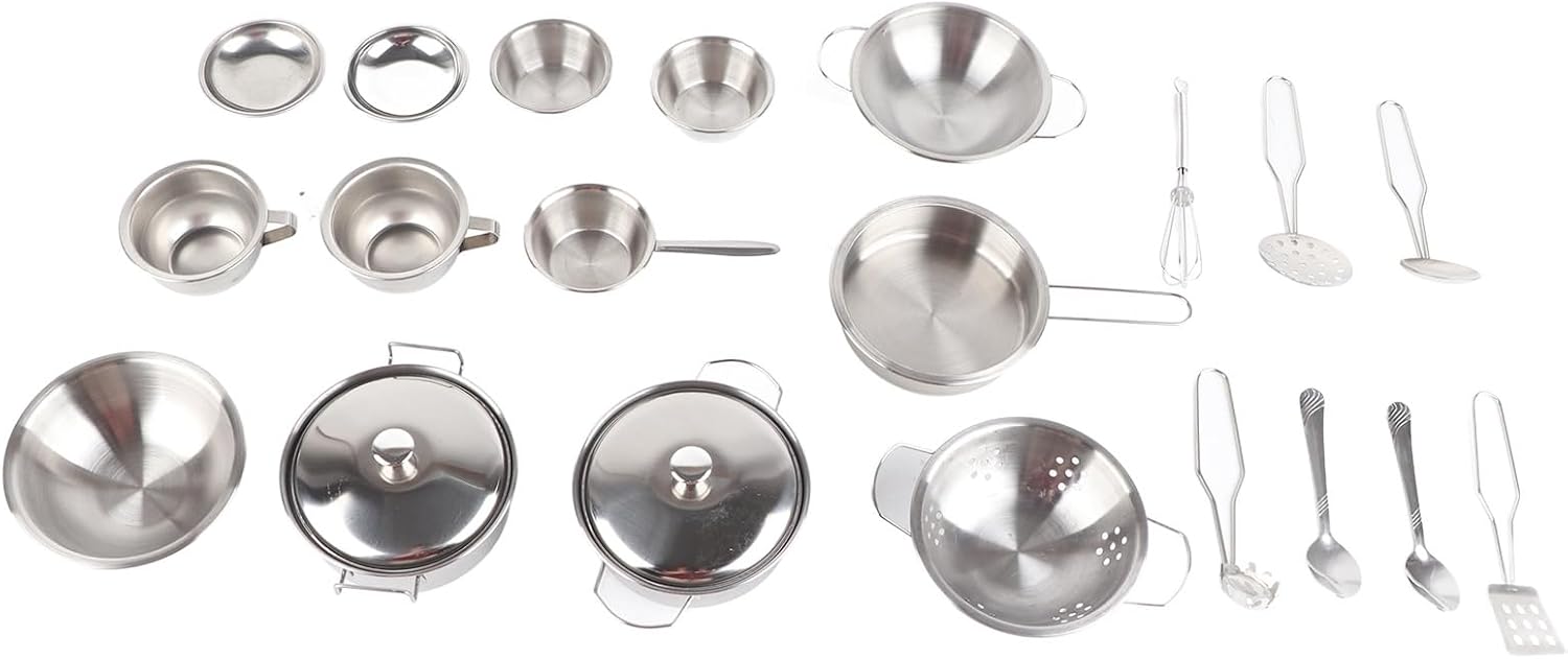 [COSTRUZIONE DUREVOLE IN ACCIAIO INOSSIDABILE] garantisce una lunga durata nel tempo di gioco, superando le alternative in plastica. [MATERIALE NON TOSSICO] garantisce la sicurezza dei bambini durante il gioco fantasioso. [AUMENTA L'INTELLIGENZA E LE ABILITÀ PRATICHE] Incoraggiare il gioco pratico in cucina, incoraggiando la crescita e la creatività. [INFORMA SUGLI UTENSILI DA CUCINA] aiuta i bambini a comprendere lo scopo degli utensili da cucina e come usarli. [ IDEALE PER BAMBINI] da regalare ai tuoi figli o ai figli dei tuoi amici, ispira gioco fantasioso e divertimento.