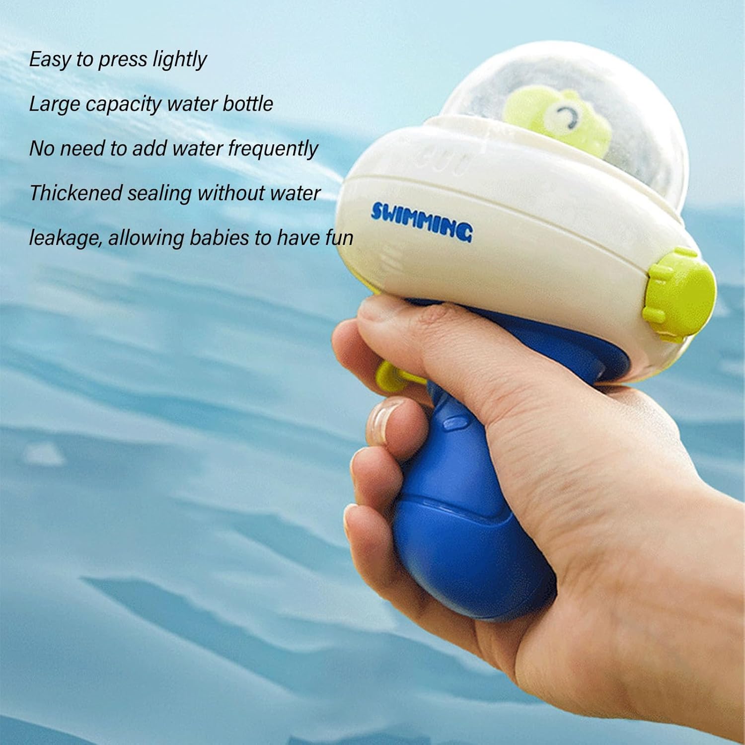 [FREDDO ED EMOZIONANTE] Preparati per ore di divertimento con questo gioco acquatico a lungo raggio. [UTILIZZO MULTISCENA] Ideale per feste in piscina, interazioni genitore-figlio e giochi all'asilo. [DESIGN LEGGERO] Dimensioni perfette per bambini e adulti, facile da riempire e . [NESSUNA BATTERIA NECESSARIA] Funzionamento semplice e senza problemi per un divertimento acquatico istantaneo. [MATERIALE ADATTO AI BAMBINI] Realizzato in materiale ABS di alta qualità presa e confortevole.