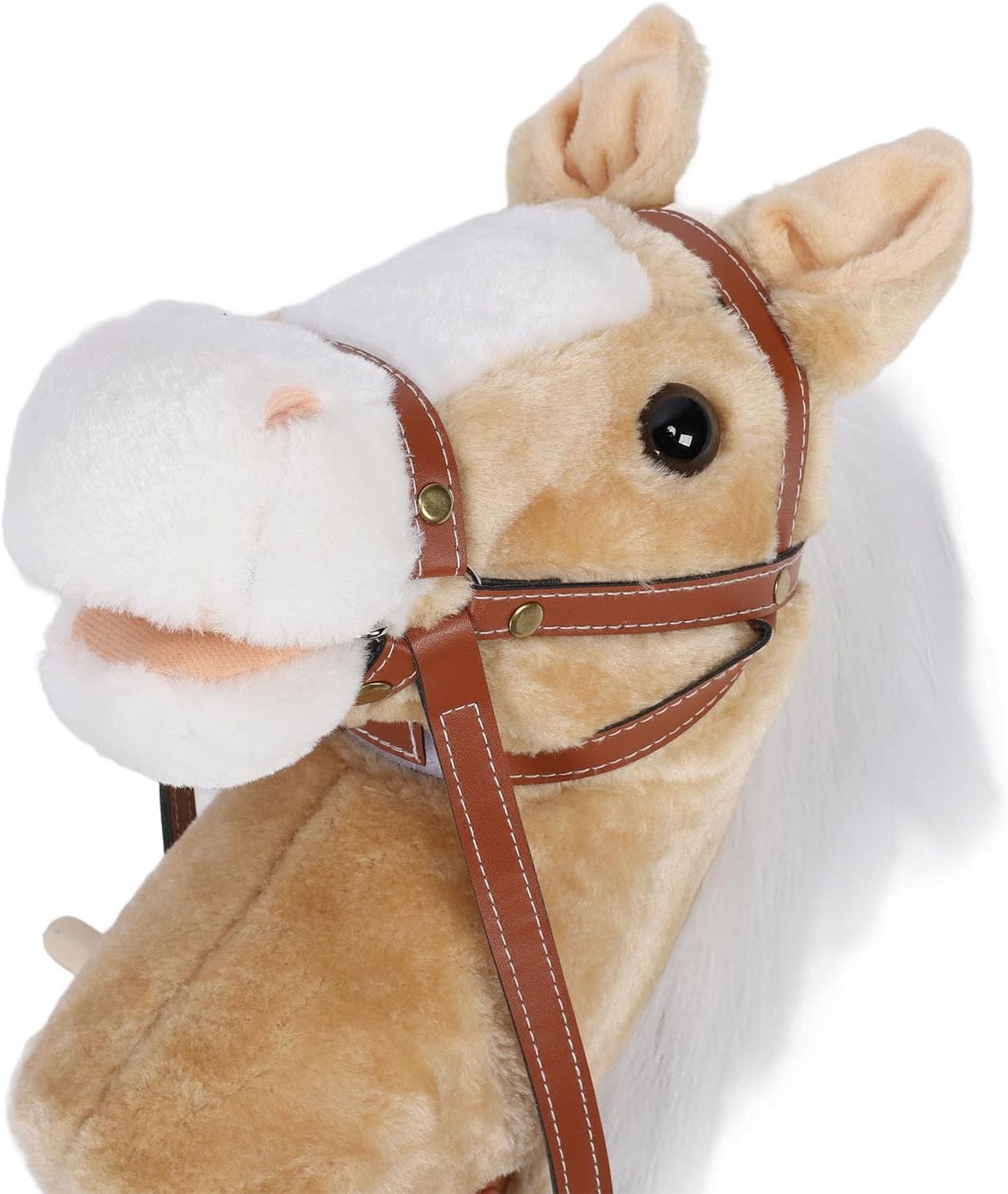 Effetto sonoro: se premi le orecchie dell'adorabile cavallo, emetterà due suoni di galoppo e nitrito, simulando il suono di un vero cavallo per attirare l'attenzione dei bambini. Morbido ed educativo: il materiale morbido di questo peluche aggiunge un tocco di realtà, rendendo più interessante andare a cavallo su un bastone. I bambini possono controllare meglio il cavallo dei cartoni animati e migliorare le loro capacità motorie e la coordinazione mentre giocano. Sviluppo dell'equilibrio: il giocattolo è dotato di robuste aste di legno, maniglie e ruote più lisce per garantire durata e stabilità. I bambini possono spingerlo liberamente in casa o all'aperto per ore di divertimento. Aspetto carino: il morbido peluche del cavallo presenta una testa dall'aspetto da cartone animato con occhi e criniera piccoli, caratterizzato da un design carino che piacerà ai bambini. Materiale premium: il bastone del cavallo dei cartoni animati è realizzato in peluche di alta qualità, legno di pino e materiale in pelle, robusto e non facile da rompere, resistente alle cadute, garantendo un uso duraturo.