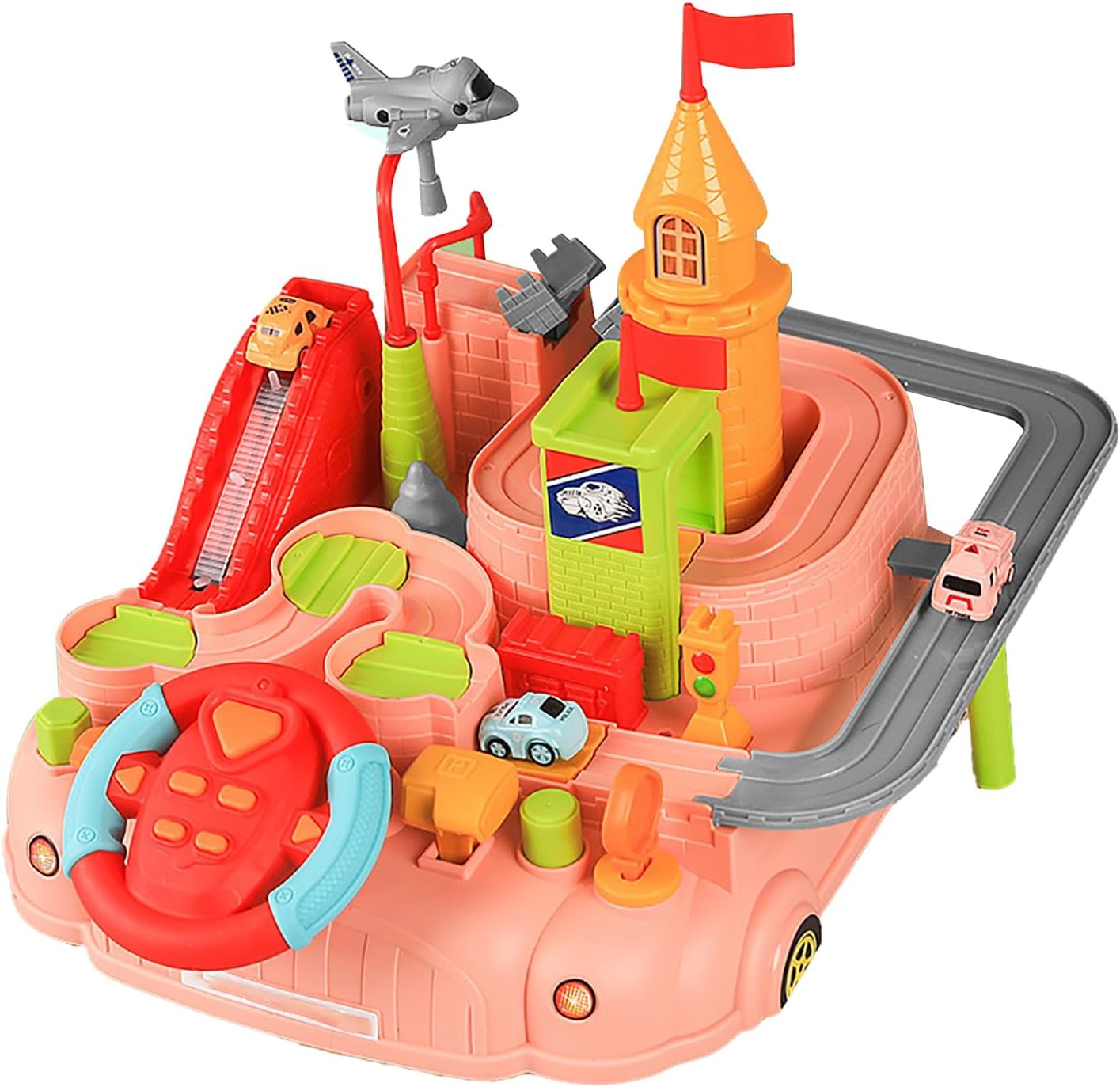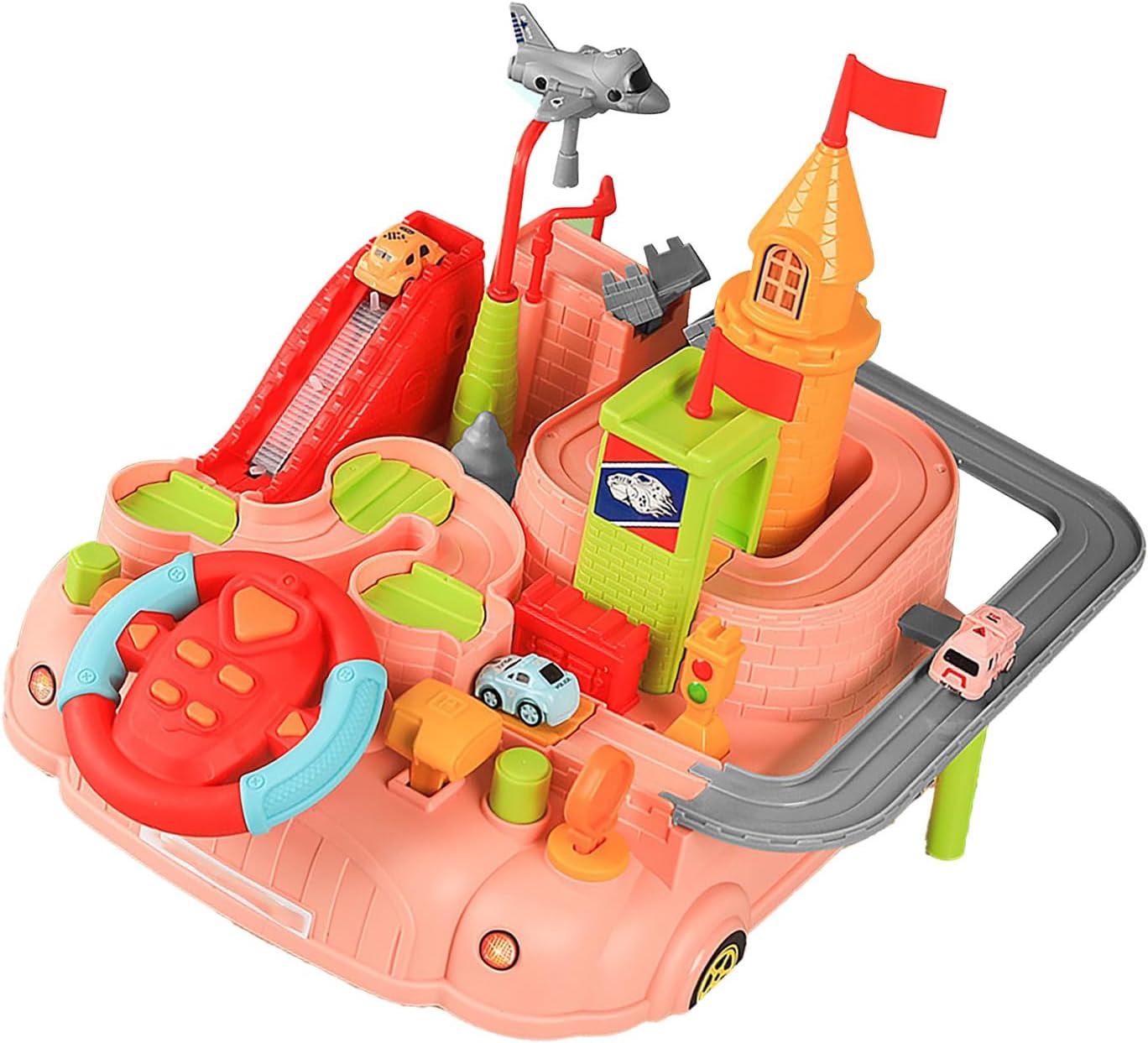 RACE TRACK DESIGN: una modalità avventura in auto per bambini che stimola la loro immaginazione e creatività. SCORRIMENTO INERZIALE: Il veicolo ha la funzione di scorrimento inerziale, permettendo ai bambini di vivere una vera esperienza di guida. IDEALE: con un design unico e una manifattura squisita, questo giocattolo è una sorpresa ideale per ragazzi, ragazze, come di compleanno, di festival, ecc. INTERAZIONE RICCA: Dotato di un parcheggio del volante, che consente ai bambini di simulare una vera esperienza di guida e migliorare le capacità di coordinazione occhio-mano. GIOCATTOLI EDUCATIVI: risolvendo compiti difficili, coltiva le capacità di problem solving e di pensiero logico dei bambini.