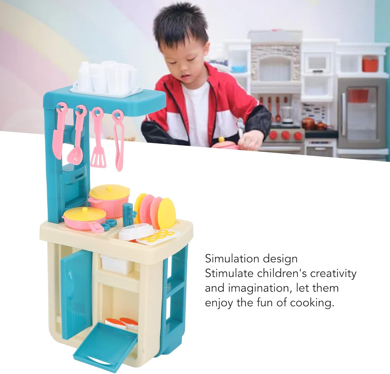 ESPERIENZA ARRICCHENTE: il set di giochi da cucina include utensili da cucina, fornelli, cibo, ecc., simulando la scena reale della cucina in tutti gli aspetti, arricchendo l'esperienza dei bambini. MATERIALE SICURO: il set da gioco per la cucina per bambini è realizzato in plastica, che è e salutare per garantire la sicurezza e la salute dei bambini e può resistere all'usura a lungo termine. STIMOLARE L'IMMAGINAZIONE: il set di giocattoli Forno e Lavello è progettato per stimolare la creatività e l'immaginazione del tuo bambino, permettendogli di godersi il divertimento della cucina. COLTIVARE IL SENSO DI COOPERAZIONE: il set da cucina giocattolo è adatto sia a ragazzi che a ragazze, senza limitazioni di genere, consentendo ai bambini di giocare insieme, coltivare il senso di cooperazione e la qualità della volontà di condividere. SCHEMA DI COLORI SCIENTIFICO: il set da cucina giocattolo adotta schema di colori scientifico per migliorare la percezione dei colori dei bambini, i giochi di ruolo e sperimentare il divertimento della cucina.