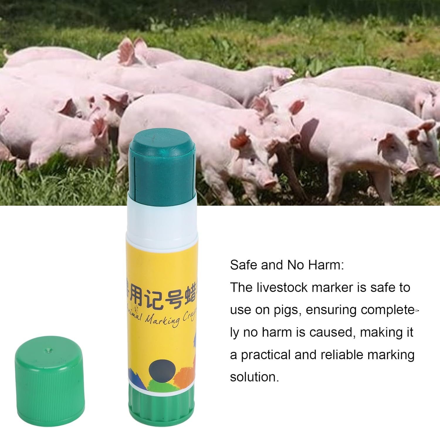 Sicuro e nessun danno: il marcatore per bestiame è sicuro da usare sui maiali, garantendo che non venga causato alcun danno, rendendolo una soluzione di marcatura pratica e affidabile. Comodo pennarello per pelle di maiale: il pastello per marcare offre una facile maneggevolezza senza la necessità di strumenti aggiuntivi, consentendo agli utenti di contrassegnare in modo efficiente informazioni importanti sulla pelle dei maiali. Marcature chiare e stabili: il pastello è progettato specificamente per marcare i suini, fornendo segni chiari e stabili facili da leggere e distinguere. Utilizzo nell'industria dell'allevamento: studiato su misura per l'industria dell'allevamento, questo marcatore è per identificare i suini durante varie attività come esami, allevamento e somministrazione di vaccini. Materiale ABS durevole: il marcatore per bestiame è costruito con materiale ABS di alta qualità, garantendo resistenza, durata e prestazioni di lunga durata senza il rischio di rottura.