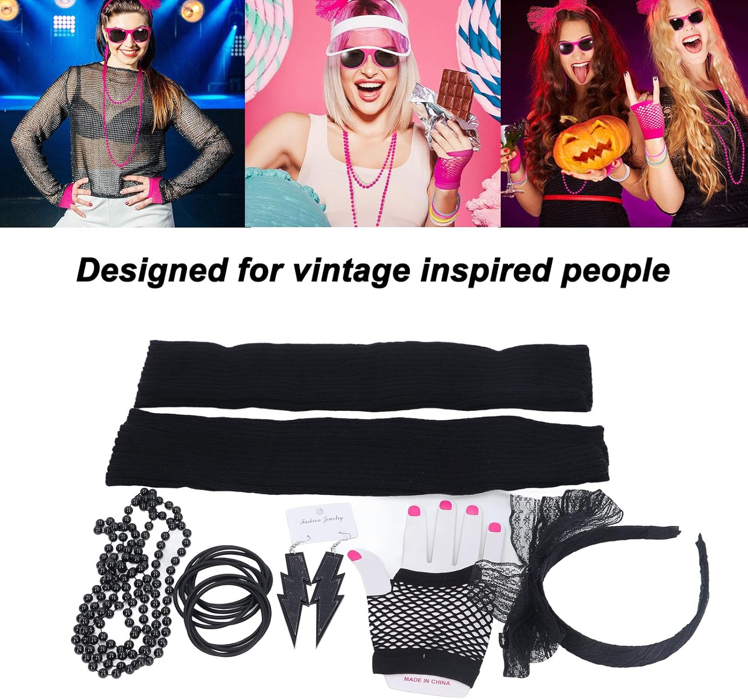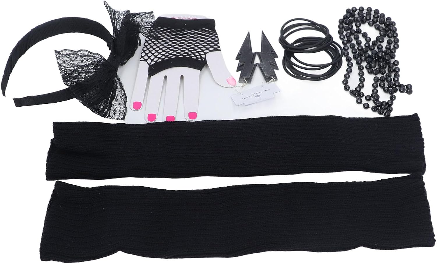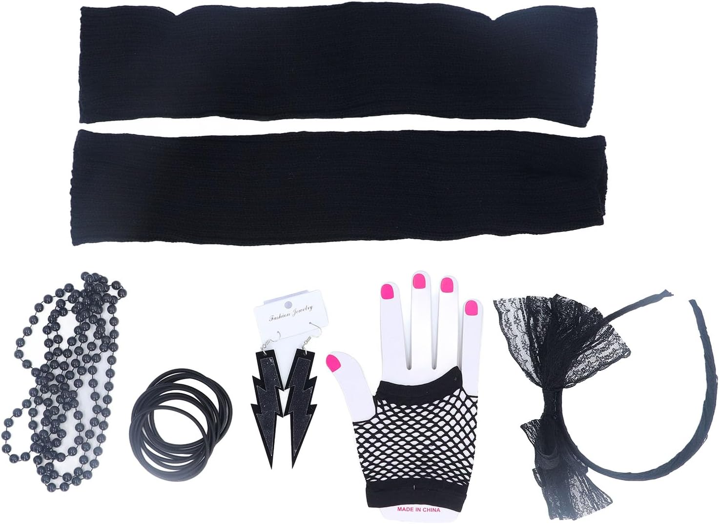 Set di abiti al neon per abiti da ballo anni '80: il set di accessori per costumi per feste a tema anni '80 e Halloween. Include fascia in pizzo, , scaldamuscoli, collana, orecchini e braccialetti. Autentico stile anni '80: cattura vibrante ed eccentrica degli anni '80 con questo set di abiti neon. La fascia in pizzo, i braccialetti luminosi e gli accessori audaci trasudano un senso retrò. Accessori per costumi versatili: non per gli anni '80, gli accessori per orecchini con fascia in pizzo possono essere utilizzati anche per varie feste a tema ed eventi cosplay. Mescola e abbina con abiti diversi per un look unico. Pacchetto completo per le feste: il set di fasce per orecchini al neon include tutto il necessario per completare il tuo look da ballo anni '80. Dalla testa ai piedi, sarai pronto a ballare tutta la notte con sicurezza e stile. Materiali in tessuto: il kit di orecchini in pizzo neon è realizzato in tessuto di pizzo, nylon elastico e plastica, questi accessori sono resistenti e comodi da indossare. I e gli scaldamuscoli sono elastici vestibilità perfetta.