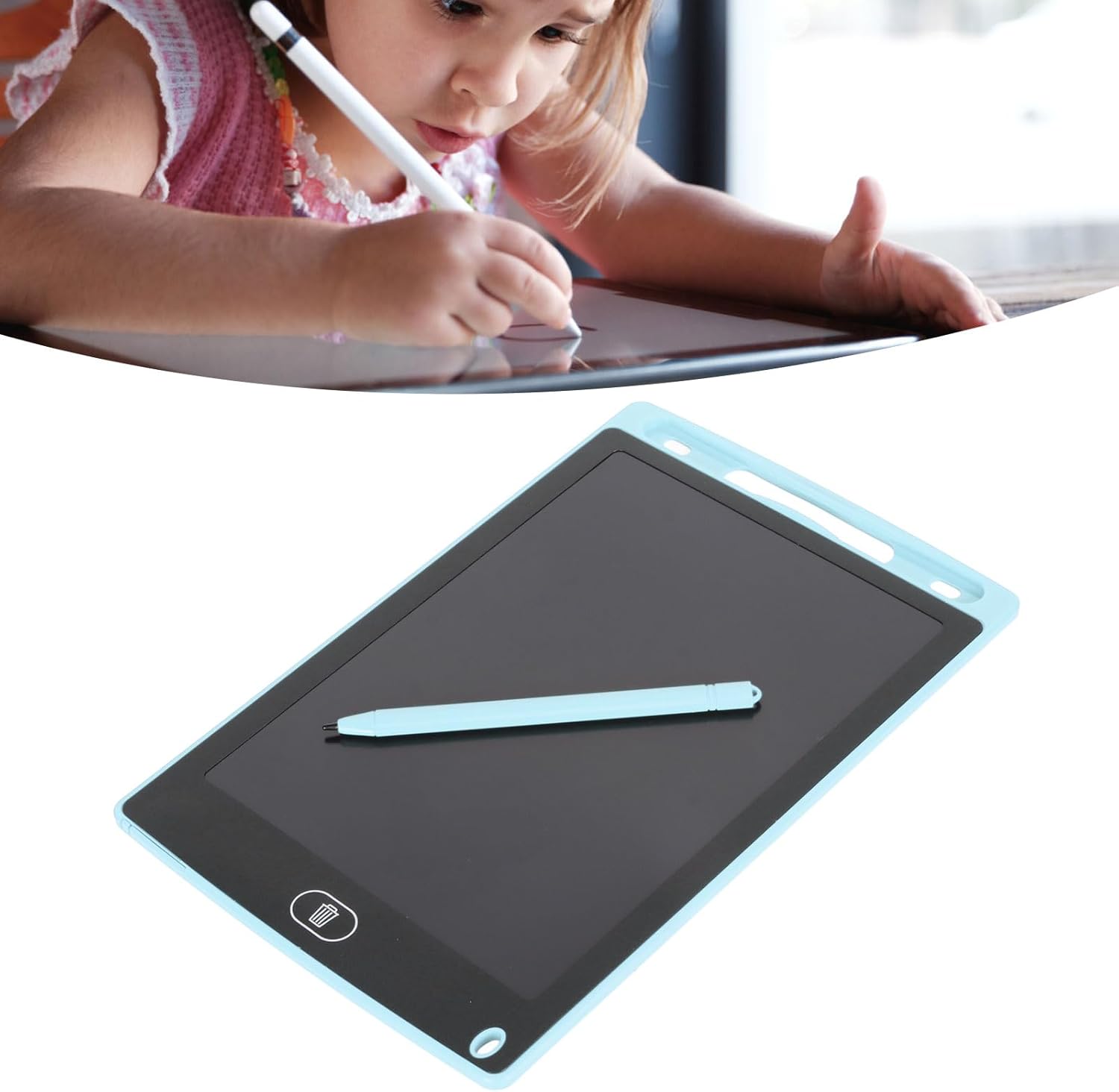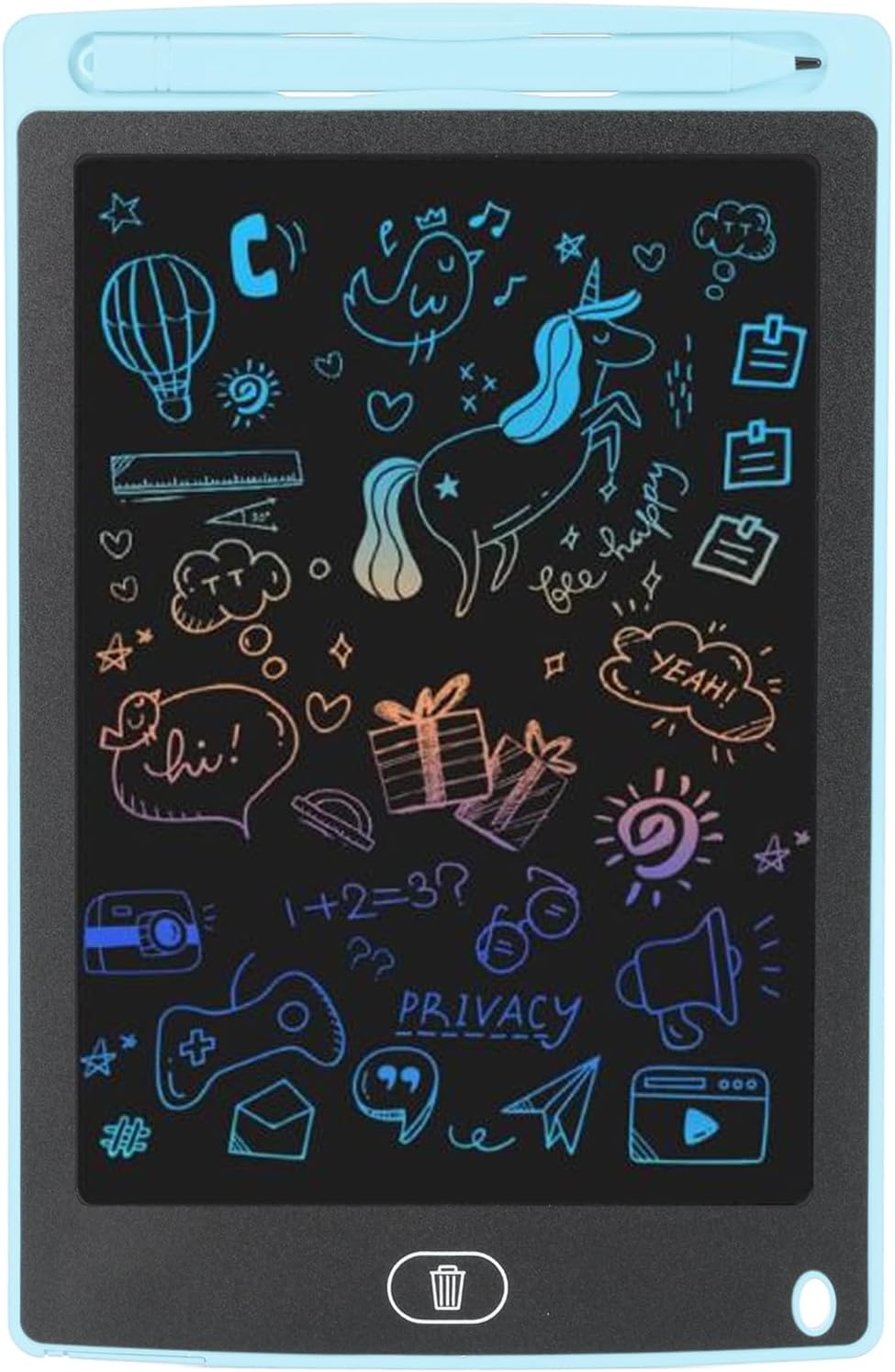 [Schermo da 8,5 pollici]: il tappetino per tablet da disegno offre spazio sufficiente per gli scarabocchi, riduce l'abbagliamento e nessuna radiazione e garantisce che la vista dei tuoi bambini non si deteriori. [Protezione ambientale]: la batteria integrata da 150 mAh può durare per 12 mesi e la batteria è sostituibile senza ricarica. La tavoletta grafica può essere cancellata 100.000 volte, risparmiando molto sull'utilizzo di carta e matita, e una tavola da disegno equivale a salvare 4 alberi. [Giocattolo educativo]: la tavoletta grafica LCD è un giocattolo per far giocare i bambini, disegnare e attività di apprendimento in età prescolare per migliorare l'attenzione dei bambini e coltivare gli hobby della pittura. [Funzione di cancellazione e blocco]: il pulsante di cancellazione sul giocattolo del tavolo da disegno può cancellare tutto sulla tavola da disegno e la funzione di blocco impedisce che i disegni dei bambini vengano eliminati per errore. [Durevole e portatile]: la tavoletta da scrittura da 8,5 pollici è realizzata in plastica, con un design ad angoli arrotondati, adatta per autobus, aereo, viaggi, scuola, ristorante e molte altre scene.