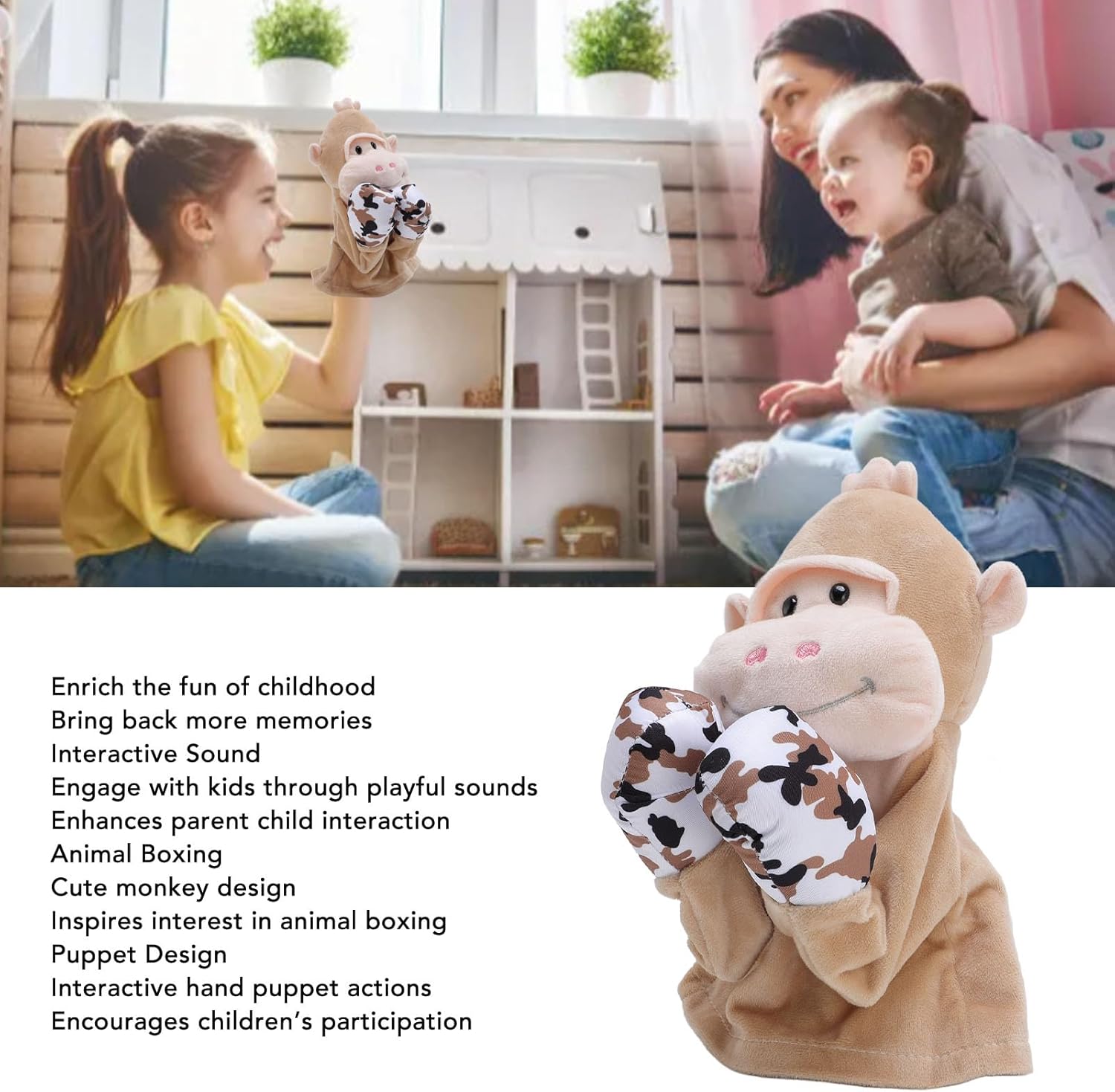 [SUONO INTERATTIVO COINVOLGENTE] Rendi il gioco più divertente svegliando i suoni di questa marionetta da boxe. [SPARK IMAGINATION] Incoraggia il gioco fantasioso con il simpatico design della scimmia, promuovendo la creatività nei bambini. [PROMUOVERE L'ATTIVITÀ FISICA] Fai muovere i bambini con questo pupazzo da boxe con animali per un gioco interattivo e attivo. [TRANQUILLITÀ] I genitori possono rilassarsi sapendo che questa marionetta è realizzata con materiali sicuri e adatti ai bambini. [MOMENTI MEMORABILI] Condividi le esperienze nostalgiche dei manichini da boxe del passato, creando ricordi duraturi con tuo figlio.