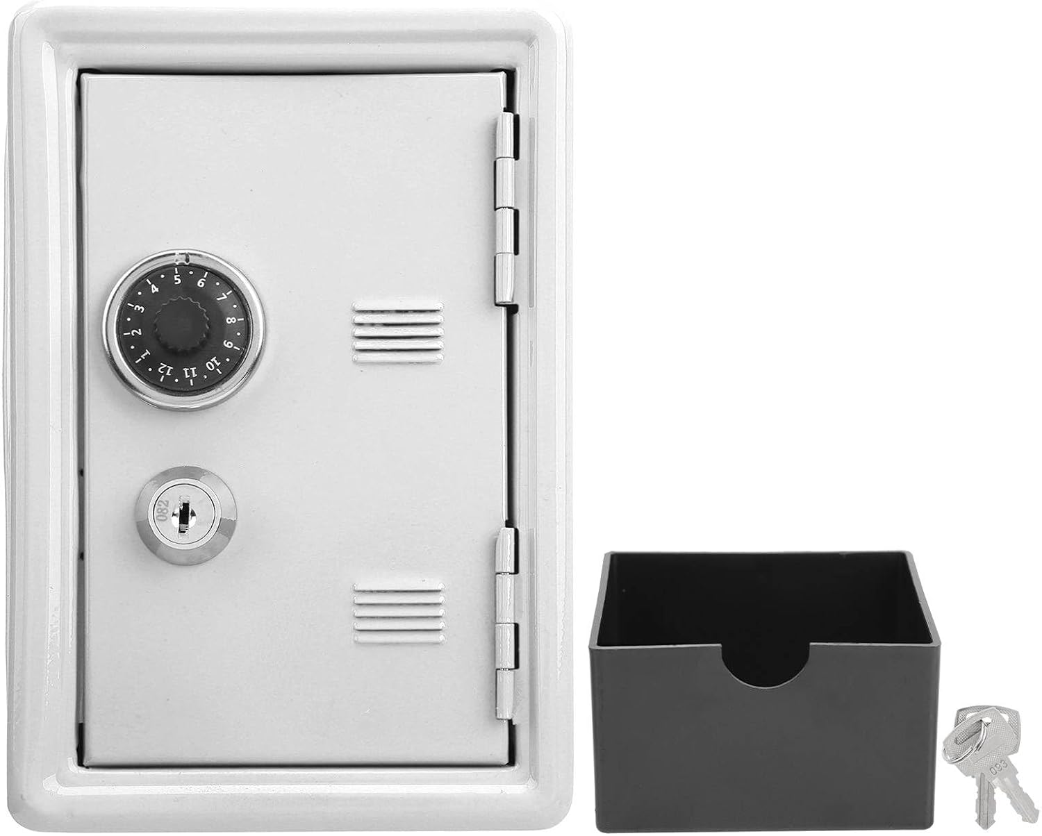Il design della guarnizione antiscivolo e antifrizione può prevenire efficacemente l'abrasione e i graffi del salvadanaio. Il design della ruota del codice di simulazione è bello e generoso e il pannello della porta può essere allacciato ruotando il pulsante. Contenitore per il estraibile incorporato, design a trazione flessibile e libero, due modi per risparmiare denaro, per soddisfare le diverse esigenze di archiviazione. La cerniera è ben fatta e resistente. Il design della fessura per le monete sulla parte superiore rende la conservazione del comoda e veloce, che può essere completata senza aprirla. Il guscio esterno è in ferro, solido e resistente, il processo di verniciatura è uniformemente lucido, la mano è fine e non si arrugginisce facilmente.