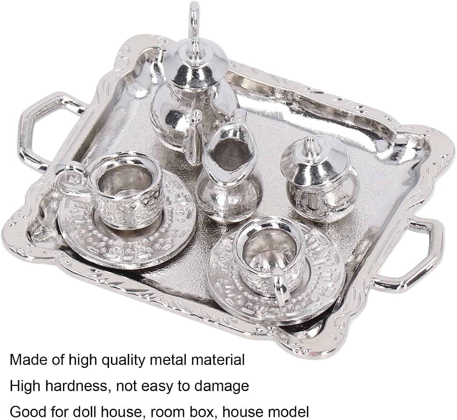 Materiale metallico: realizzato in materiale metallico di alta qualità, elevata durezza, non facile da danneggiare, per giochi a lungo termine. Kit completo: contiene 1 vassoio da tè, 1 teiera, 2 tazze, 2 piatti, 2 bottiglie da tè e 2 coperchi per teiere per un'esperienza di gioco completa. Miniatura: giocattolo modello di vassoio da tè in miniatura, progettato per Box/Cover delle bambole, adatto per Box/Cover delle bambole in scala 1/12. Ampiamente applicabile: questi kit di vassoi da tè sono i migliori per Box/Cover delle bambole, scatole da camera, modelli di Box/Cover e sono molto pratici. Realistico: vassoi da tè, teiere e tazze realistici che possono contenere una piccola quantità di tè e offrire al tuo bambino un'esperienza più realistica.