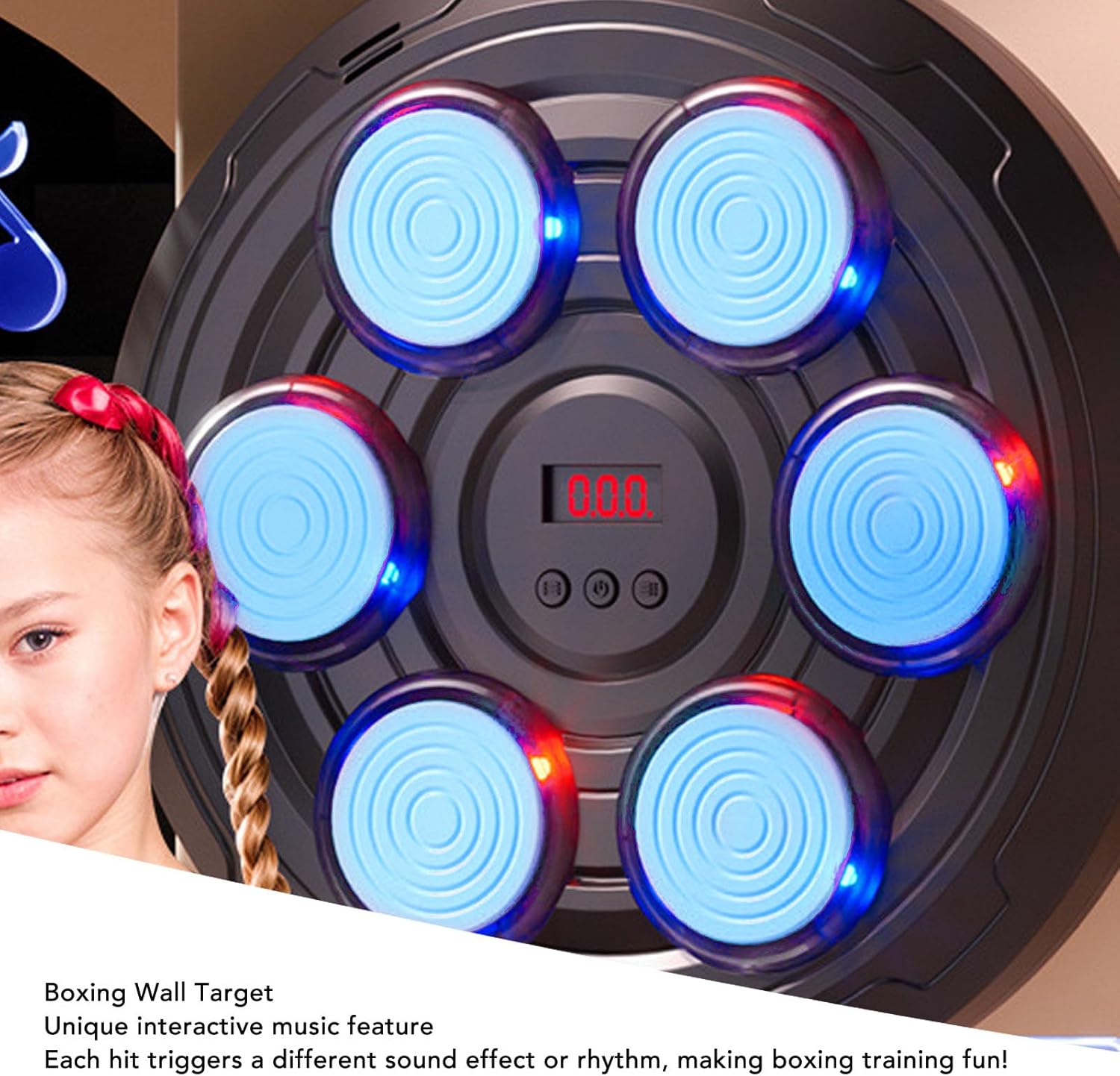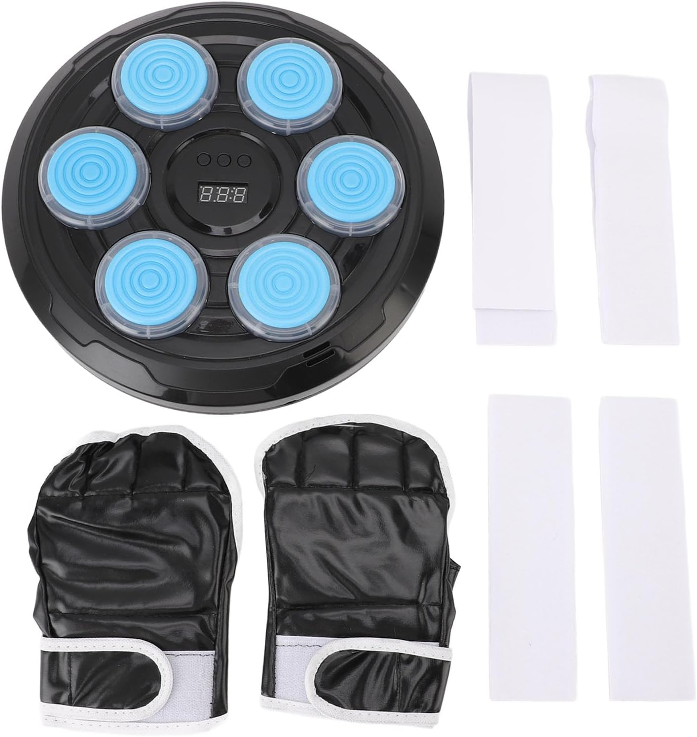 Music Interactive Experience per allenamenti divertenti: il bersaglio del muro di boxe presenta una funzione di interazione musicale unica che innesca diversi effetti sonori o ritmi ad ogni sciopero, rendendo piacevole la tua formazione di boxe e accendendo la tua passione per il fitness. Design a 6 pulsanti Smart per un feedback preciso: con il suo design intelligente a 6 pulsanti, questo target di boxe murale riconosce accuratamente la posizione e l'intensità sorprendenti. Il di feedback visivo ti aiuta a migliorare efficacemente le capacità di boxe e la velocità di reazione. Design portatile per gli allenamenti On the Go: il design compatto e portatile della macchina da punzonatura della boxe semplifica il trasporto e la memorizzazione. Sia a casa che in palestra, puoi creare l'allenamento in qualsiasi momento, adattandosi in modo flessibile a vari ambienti. Modalità di allenamento versatili per soddisfare varie esigenze: offrire due modalità con tre impostazioni di velocità, tra cui l'allenamento di reazione, l'allenamento della forza e la modalità di sfida, questa macchina da boxe si rivolge a diversi requisiti di fitness, garantendo un'esperienza di allenamento completa ed efficiente. comodi per la sicurezza delle mani: inclusi con l'obiettivo sono di boxe appositamente progettati, che forniscono comfort e protezione eccellente, garantendo che le mani rimangano al durante le sessioni di allenamento.