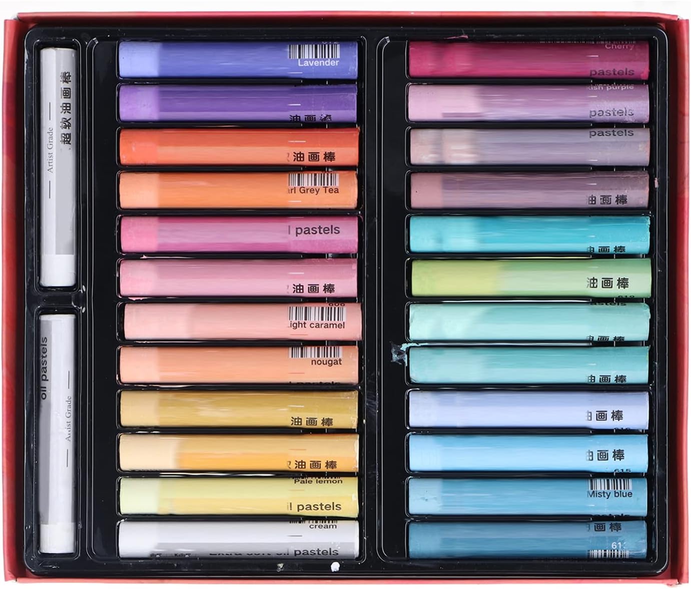 COLORE UNIFORME: il set di colori ad olio è composto da oli misti, cere e pigmenti ecocompatibili, con forte adesione, non facile da sbiadire e colore lucido e uniforme FACILE DA USARE: i pastelli pastello sono facili da usare e da pulire, di colore brillante, particolarmente morbidi e possono essere utilizzati su carta e altri supporti CAMPO DI APPLICAZIONE: I pastelli a olio cilindrici non sono facili da rompere, il che è comodo da usare per artisti di tutte le età, possono essere rapidamente trasferiti su carta e mescolati con altri colori QUANTITÀ DELL'IMBALLAGGIO: inclusi 24 di colori pastello e 2 di bianco e 1 cartella colori, i colori sono vivaci e delicati, possono essere sovrapposti o mescolati con più colori, con una trama unica COLLA A OLIO MORBIDO: le forniture per pittura a olio sono morbide e cremose, il che le rende più lisce e adatte alle tecniche di miscelazione e spatola