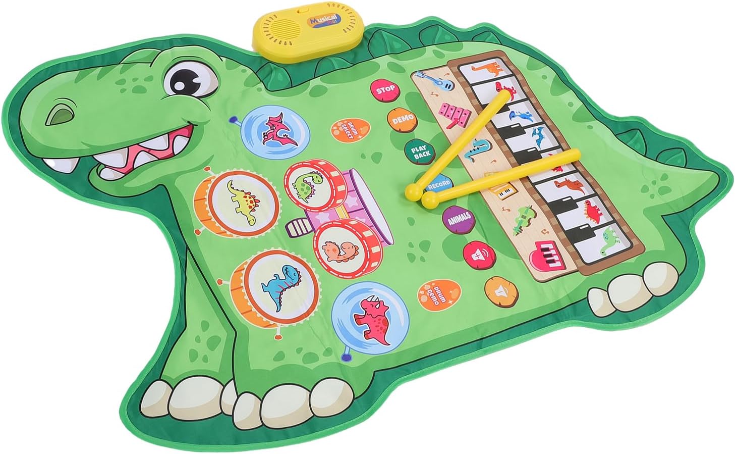 Materiali sicuri e robusti: realizzati in plastica e tessuto di plastica e PE di ottima qualità, questo tappetino musicale è sicuro e robusto, garantendo un tempo di gioco senza preoccupazione per tuo figlio. Educazione precoce: progettata per promuovere lo sviluppo cognitivo e migliorare l'intelligenza, questo tappetino è strumento di educazione precoce per la crescita del tuo piccolo. Design del mat di piano: il layout in stile piano incoraggia i bambini a saltare e suonare mentre si godono la gioia della musica, combinando l'attività fisica con l'esplorazione musicale. Funzione di musica di batteria: dotato di una funzione di batteria, questo tappetino musicale per bambini aiuta a coltivare il senso del ritmo e del potenziale musicale di tuo figlio. Disegni di dinosauri: con motivi di dinosauro, questo tappetino musicale cattura l'attenzione di tuo figlio e aggiunge un tocco giocoso alla loro esperienza di apprendimento.