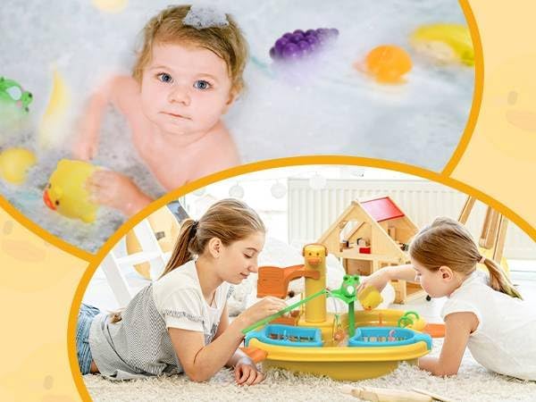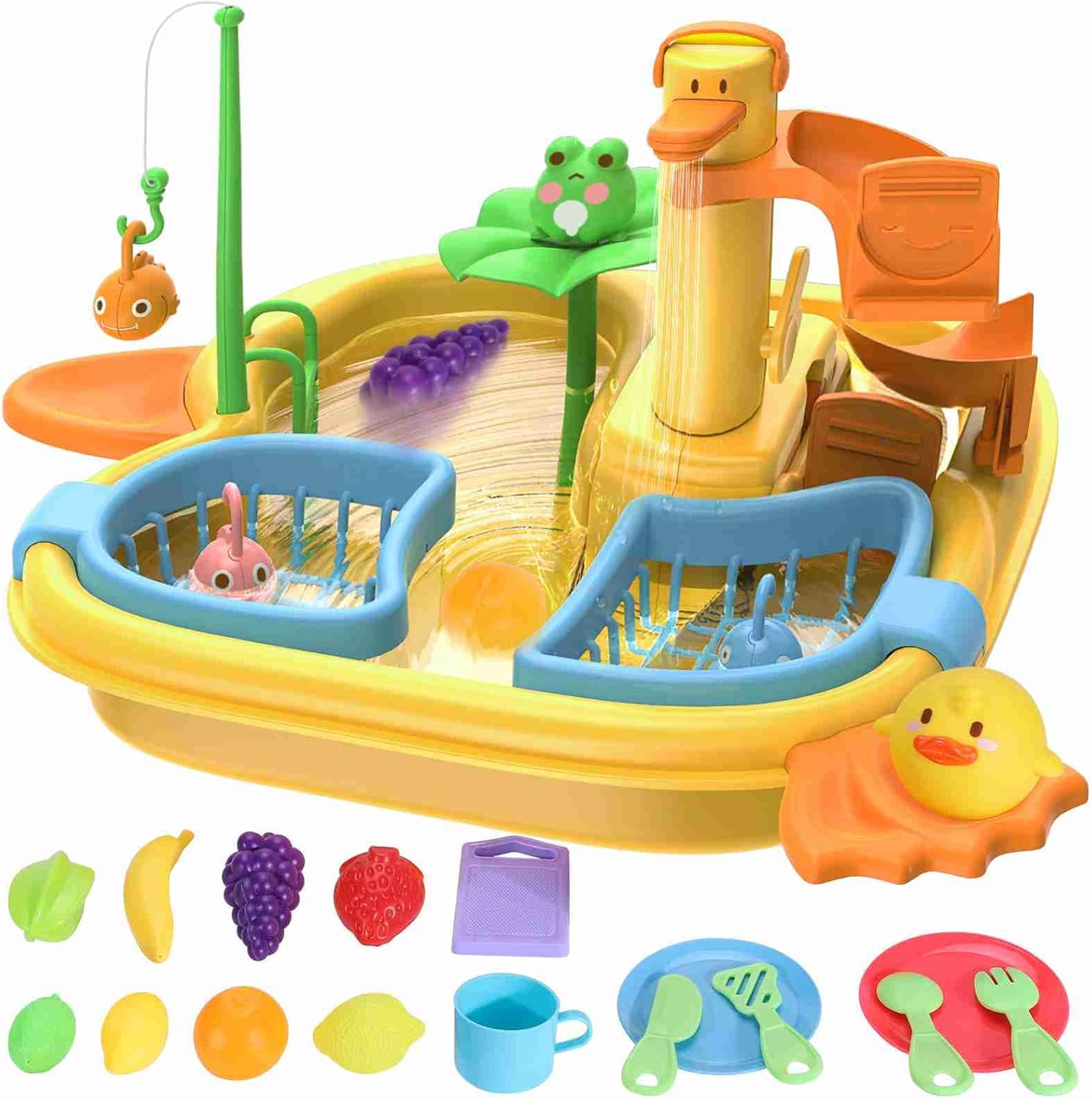 [Crescita attraverso il gioco] Pioggia o sole, questo set da gioco con lavandino e pesca è più di un semplice giocattolo; è un paradiso in cui i bambini possono esplorare, imparare e crescere attraverso esperienze di gioco coinvolgenti, rendendolo un ideale per i bambini. [Scintilla creatività e immaginazione] L'emozionante lavandino da gioco con accessori colorati e giocattoli da pesca galleggianti è progettato per favorire le capacità motorie e la coordinazione occhio-mano nei bambini, combinandosi con un'avventura di pesca. [Sicuro e durevole] Realizzato con materiali innocui, questo lavandino da gioco è robusto per un gioco entusiasta, mentre l'acqua dolce è l'ideale per i più piccoli. è una scelta rispettosa dell'ambiente con un di riciclo dell'acqua chiuso. [Design] Completo di rubinetto funzionante, lavabo e mini scolapiatti, questo set di lavelli da gioco con anatre imita la realtà, migliorando il riconoscimento dei colori e scenari di gioco fantasiosi per i bambini. [Esperienza di gioco educativa] Le dimensioni compatte rendono questo lavandino da gioco ideale per il gioco al chiuso. offre una miscela di abilità pratiche di vita, avventure all'aria aperta ed elementi educativi, per bambini curiosi e avventurosi.