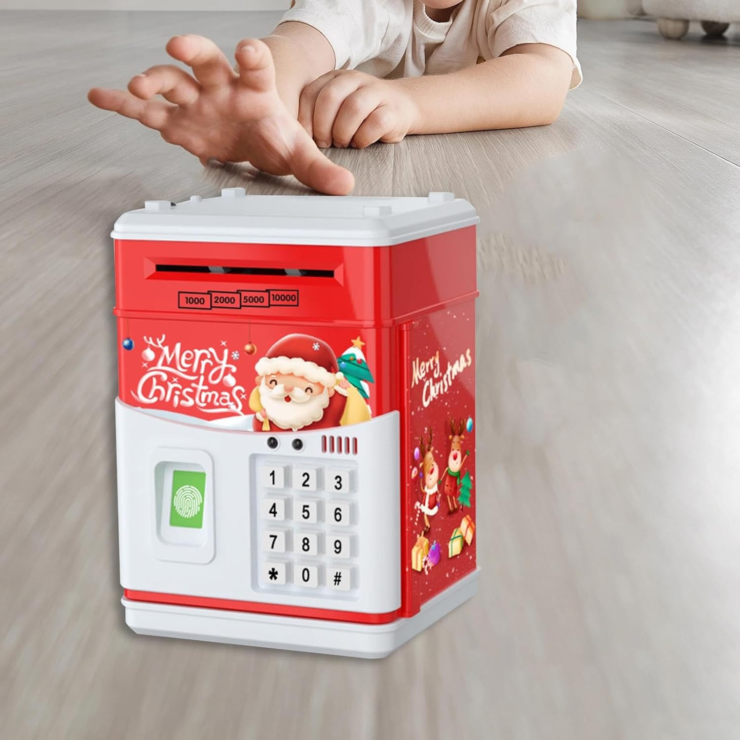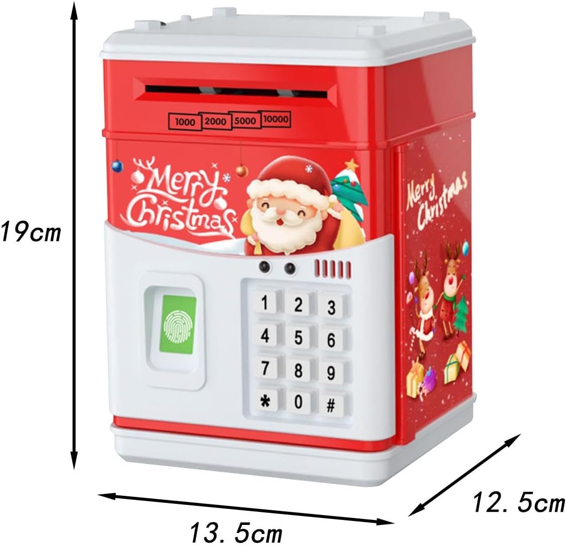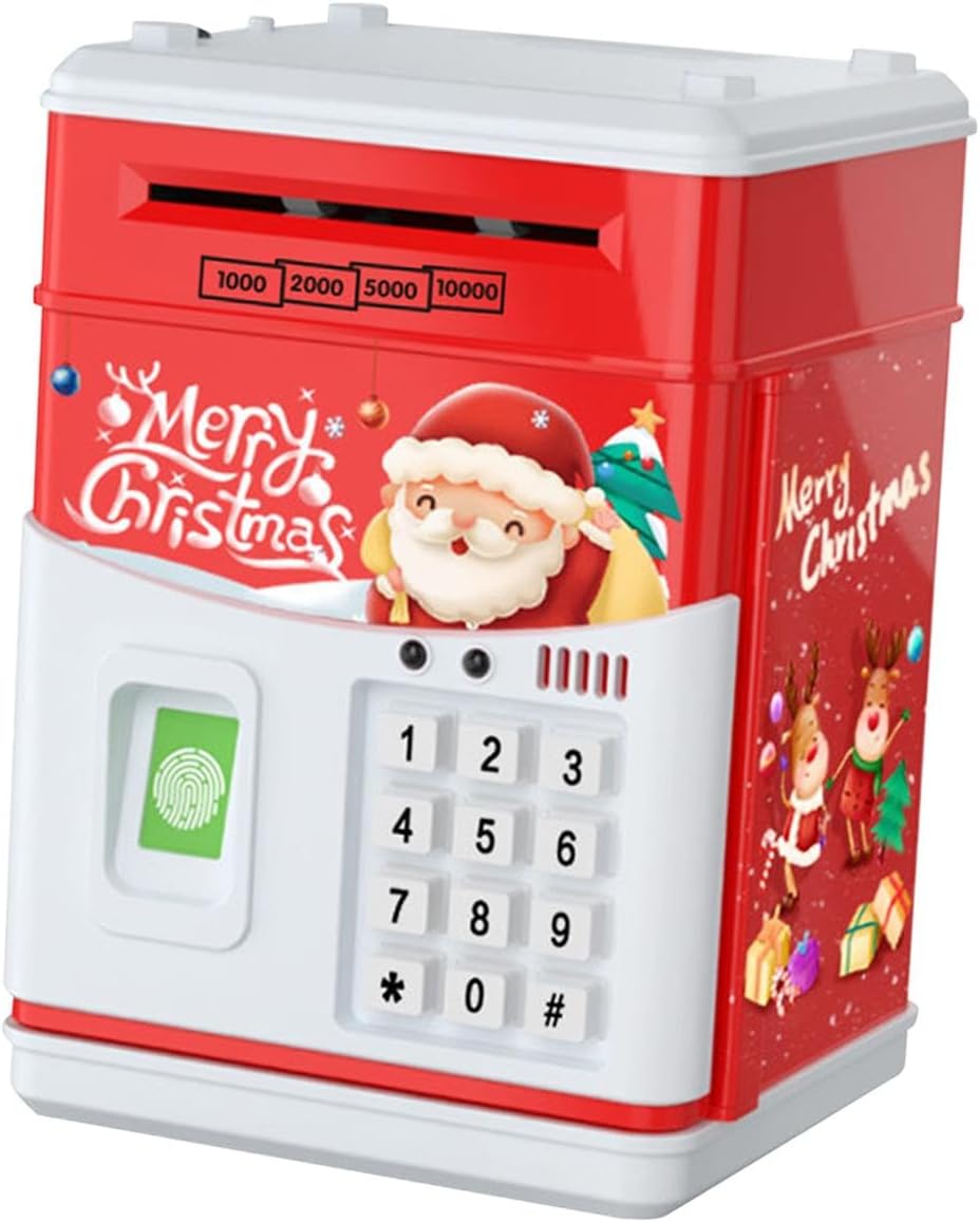 【Scorrimento automatico del denaro e amp; Salvadanaio】: di Natale è progettato con slot per monete e una scatola di risparmio ATM, scorrimento automatico, metti monry nello slot del rotolo, lo farà rotolare automaticamente nella scatola. 【Regalo】La banca di moneta elettronica è un ottimo regalo per bambini, ragazzi e ragazze in occasione di compleanni, Natale, feste. 【con musica e luce】: bancomat con impronte digitali con musica e luci, che sono più interessanti per i bambini. 【Password e password 】 Mini macchina elettronica di risparmio con password e amp; per il giocattolo del bambino dei bambini, portando molto divertimento. 【Giocattolo per lo sviluppo dei bambini】: la banca di risparmio aiuta notevolmente a migliorare la consapevolezza finanziaria dei bambini e consente a tuo figlio di sviluppare la migliore abitudine di risparmiare denaro.