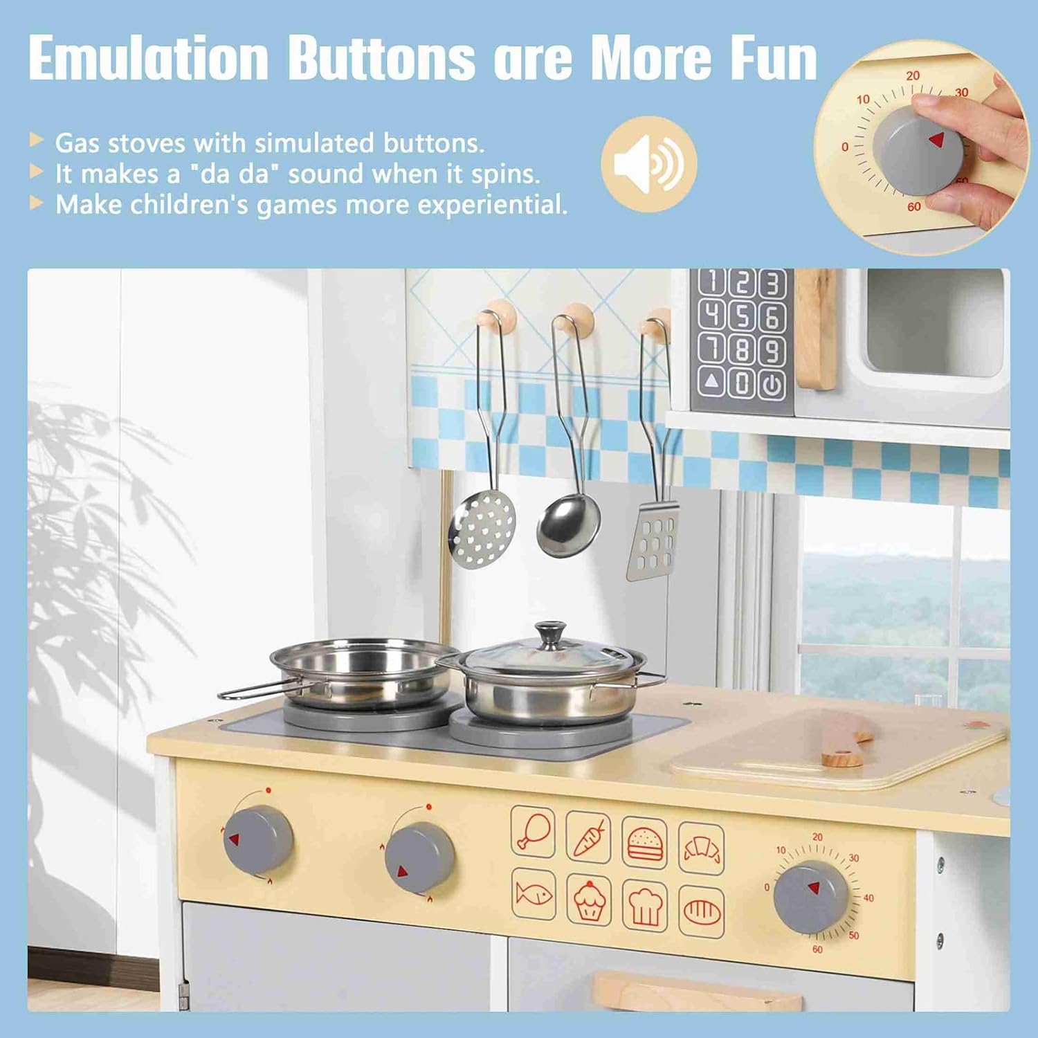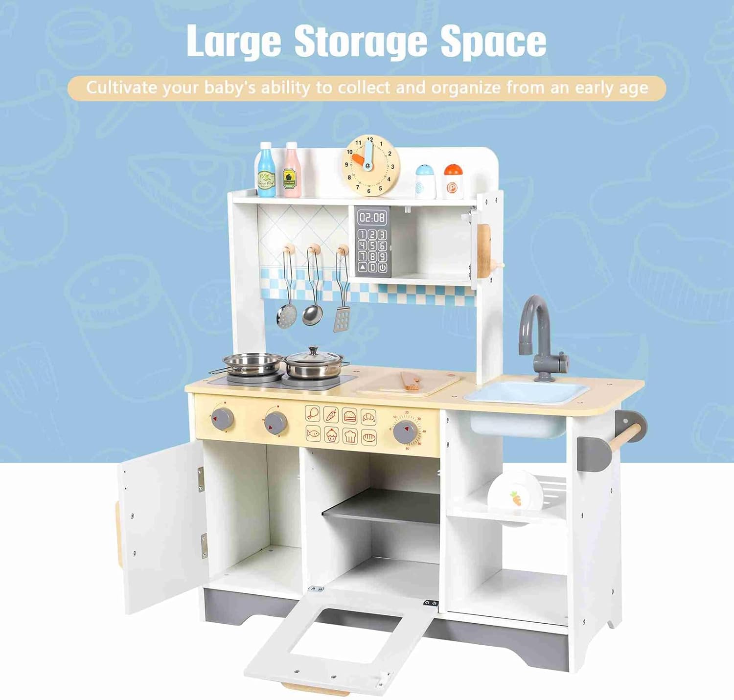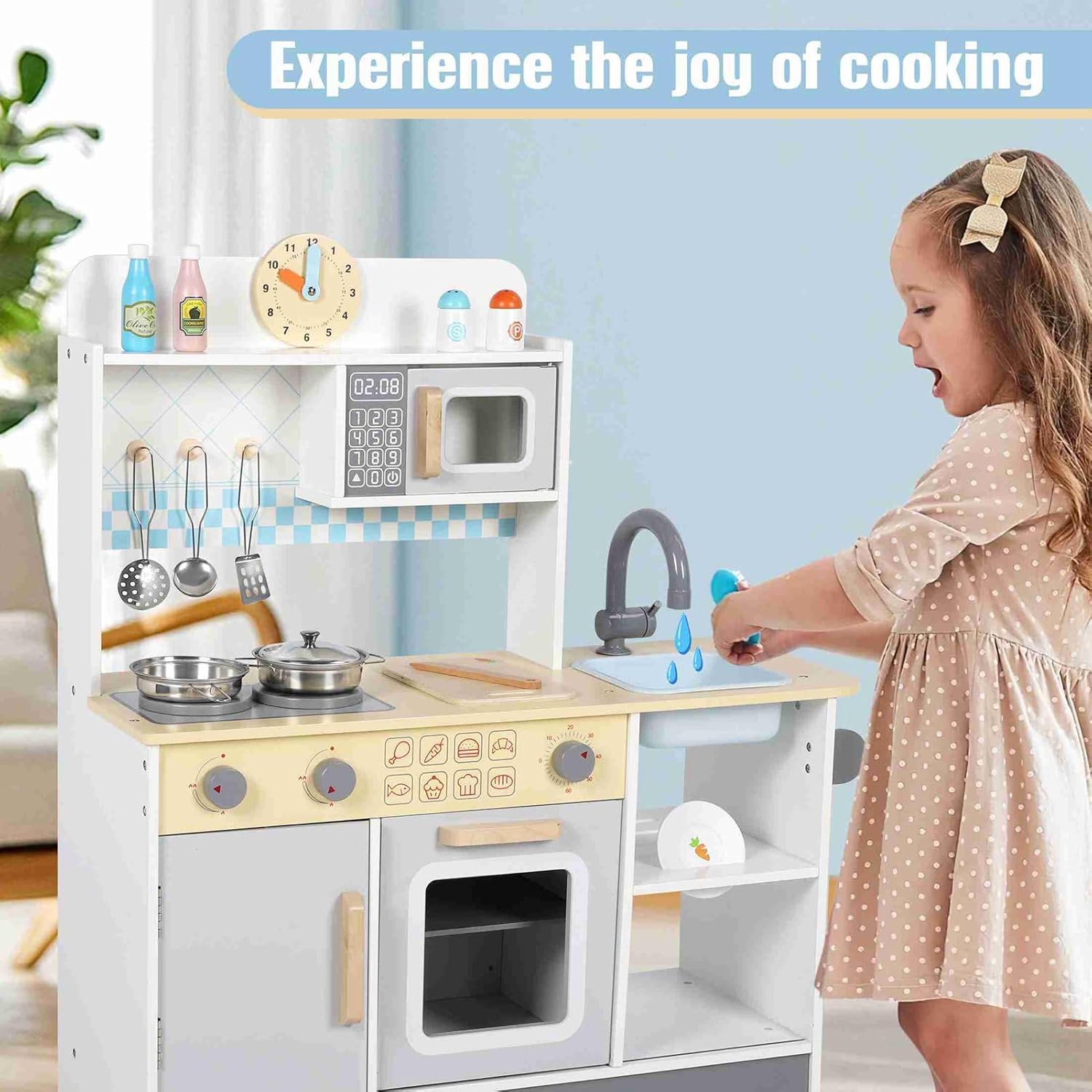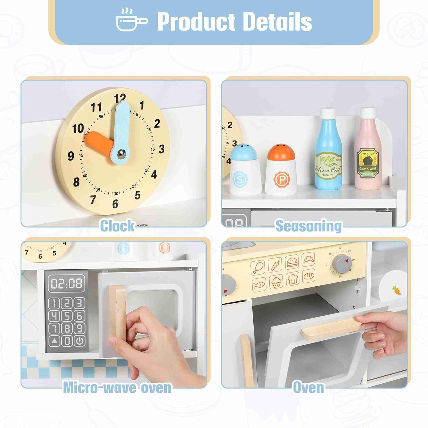 RICCHI ACCESSORI PER UN DIVERTIMENTO EXTRA: Dotato di una varietà di ricchi accessori, il set da cucina ti offre più modi di giocare, migliorando la loro esperienza complessiva e il loro divertimento. IMMAGINAZIONE E CREATIVITÀ SCINTILLANTI: questo set da cucina da gioco migliora l'immaginazione, consentendo loro di creare le tue avventure culinarie e scenari di gioco di ruolo. MIGLIORA IL LEGAME FAMILIARE: il set da cucina da gioco in legno è l'ideale per godersi del tempo di qualità in famiglia, incoraggiando il gioco cooperativo e le esperienze condivise tra tutte le età. PROMUOVERE LE ABILITÀ SOCIALI: Giocare insieme con amici o fratelli coltiva abilità sociali essenziali, come la comunicazione, il lavoro di squadra e la condivisione, mentre i bambini si impegnano nel gioco collaborativo. AUMENTA L'ABILITÀ COGNITIVA: interagire con la cucina giocattolo aiuta a sviluppare capacità di risoluzione dei problemi e pensiero critico mentre i bambini esplorano vari compiti e scenari di cucina.