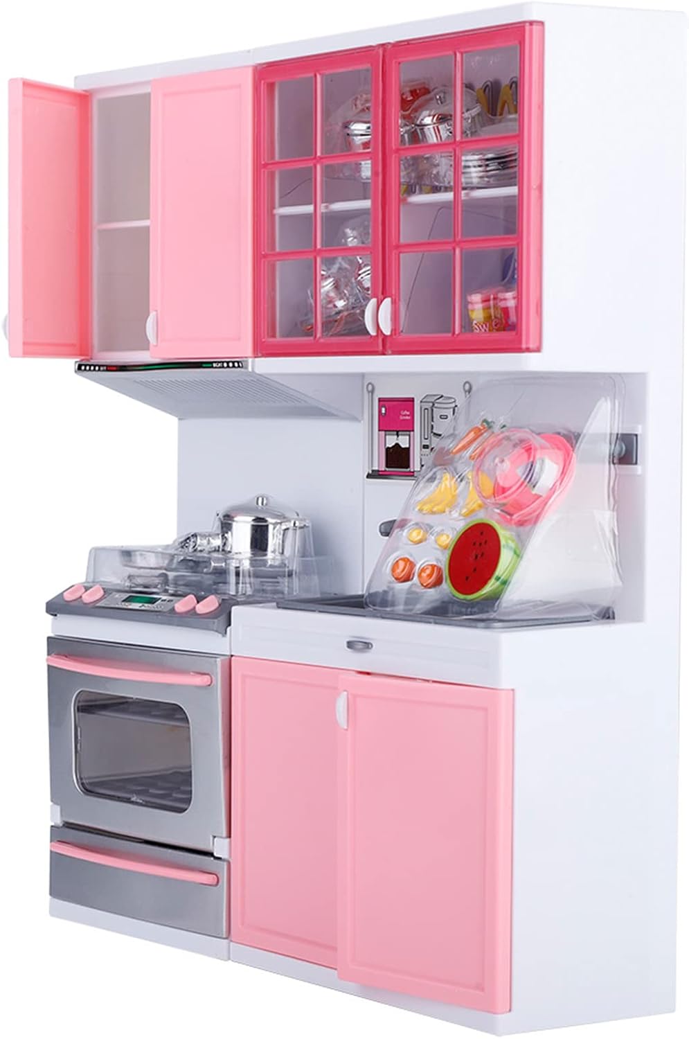 Questo set di giocattoli aiuta i bambini a conoscere diversi utensili da cucina divertendosi bambini potete giocare con le famiglie o con gli amici, migliorando la loro interazione e comunicazione Questo set da cucina comprende forno a gas, forno a microonde, lavastoviglie, lavello, armadietti e utensili da cucina Realizzato in plastica di qualità, non tossico e inodore, resistente e sicuro da usare Con il design del suono e della luce, sembra così bello e divertente, e premio per i tuoi bambini