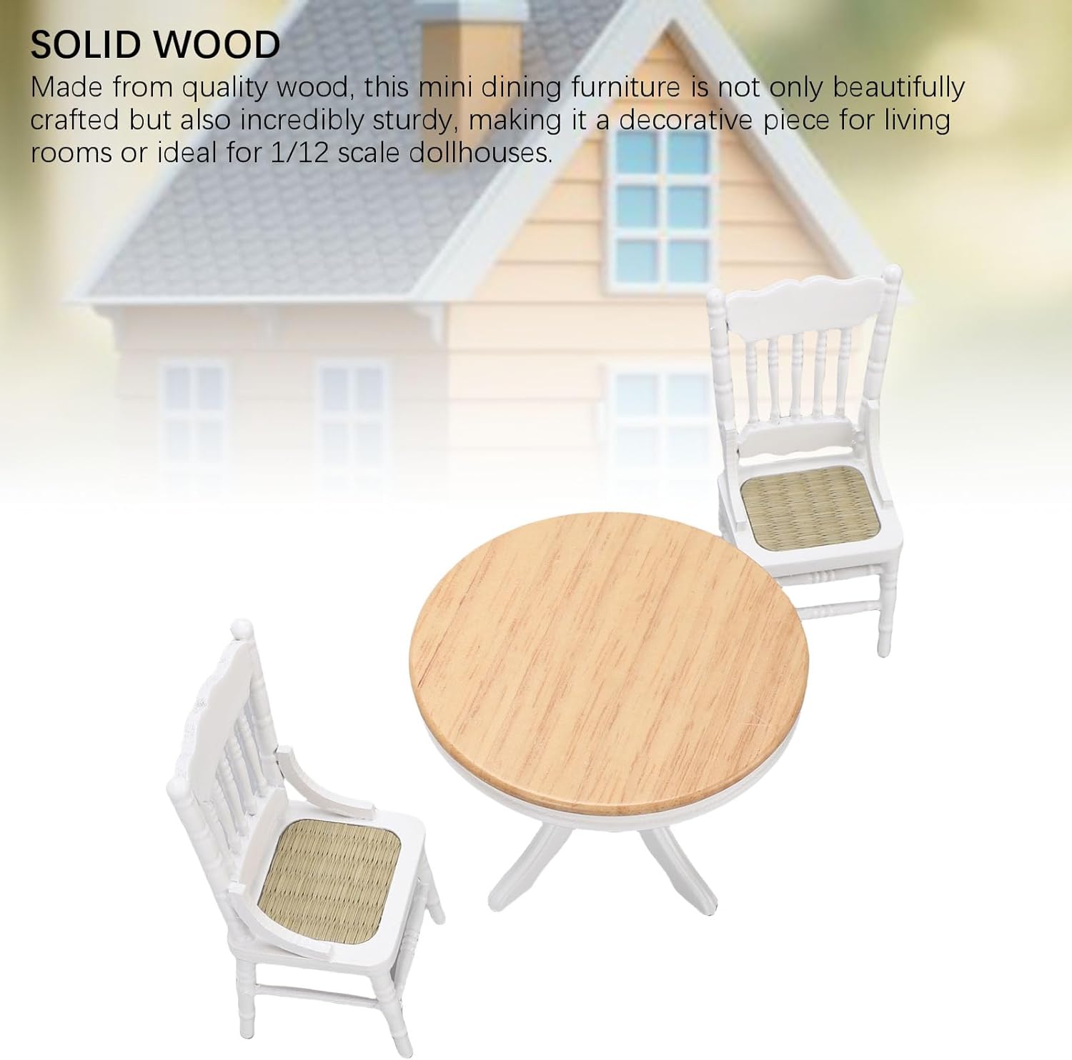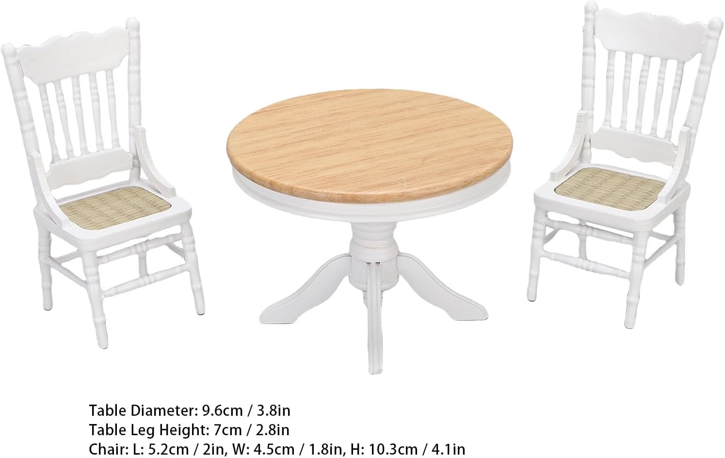 [Versatile pezzo decorativo] Questo elegante set di mobili in miniatura si fonde perfettamente con vari mobili micro e stili di decorazione per la casa. Il suo affascinante fascino estetico arricchisce qualsiasi casa delle bambole o in miniatura, rendendolo un'aggiunta straordinaria a qualsiasi collezione. [Opzione ideale] Aggiungi un tocco di unicità ai tuoi regali che danno questo squisito set da pranzo. Ottimo per Natale, compleanni o occasioni speciali, è un meraviglioso per ragazze, ragazzi e appassionati di Box/Cover delle bambole che apprezzano l'artigianato in miniatura fine. [Materiale premium] Fatto in legno massiccio, questo set da pranzo in miniatura non è magnificamente realizzato, ma anche incredibilmente robusto. La costruzione robusta garantisce un uso di lunga durata, rendendolo ideale sia per scopi decorativi che per il gioco funzionale nelle Box/Cover delle bambole. [Grande dimensione e proporzione] Il set include un tavolo e sedie con dimensione precisa (tabella: diametro 3,8 pollici, altezza 2,8 pollici; sedie: lunghezza 2 pollici, larghezza 1,8 pollici, altezza 4,1 pollici), perfettamente ridimensionati per 1:12 bambole. Il design proporzionale migliora il realismo di qualsiasi scena in miniatura. [Design altamente dettagliato] Questo set di tavoli da pranzo per bambole 1:12 presenta un intricato artigianato e un aspetto realistico, ottimo per la creazione di impostazioni in miniatura realistica. Gli splendidi dettagli imitano le scene della vita reale, affascinando sia i bambini che i collezionisti con il suo tocco autentico.
