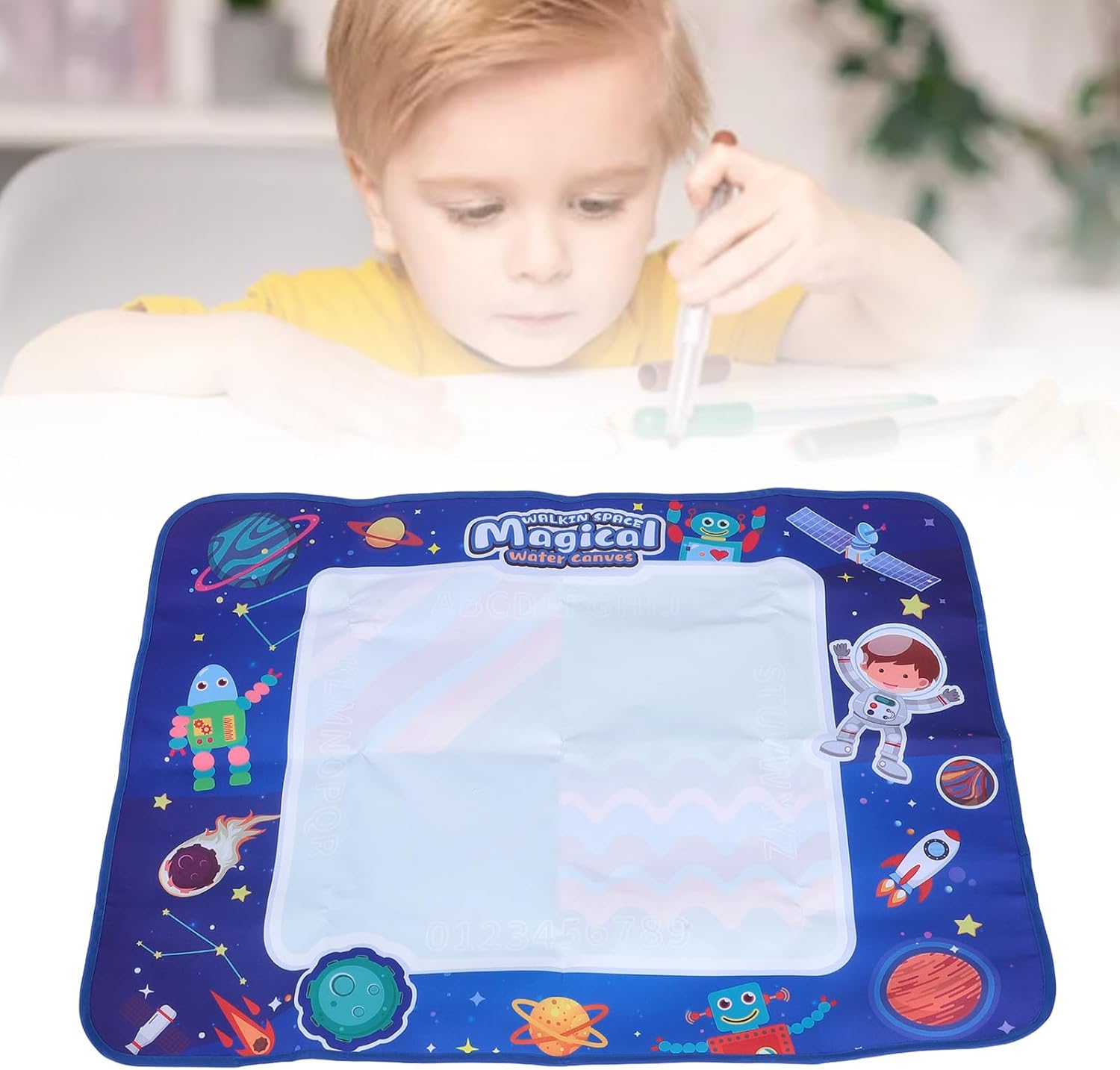 Giocattolo per l'apprendimento precoce: grande tela ad acqua, sussidi didattici innovativi per l'educazione precoce dei bambini, ha abbastanza spazio per far giocare i bambini, sia che si tratti di scarabocchiare, dipingere o rappresentare una scena di una storia, è facile da gestire, consentendo ai bambini di usare la loro immaginazione e creatività . Tela ad acqua: la speciale tecnologia dell'acqua, non richiede inchiostro, non lascerà tracce, non consente ai bambini di divertirsi dipingendo, ma garantisce anche un ambiente pulito e la sicurezza di mobili e indumenti. Riutilizzabile: la tela scarabocchio facile da pulire può essere applicata affinché i bambini possano scrivere e scarabocchiare, coltivando la concentrazione e la coordinazione occhio-mano. I genitori possono accompagnare i propri figli per migliorare la relazione genitore-figlio e godersi insieme il divertimento della creazione. Portatile: compatto e leggero, è facile metterlo in zaino o trasportarlo a mano, facile da trasportare, a casa, all'aperto o in viaggio, può portare divertimento e crescita senza fine ai bambini. Design raffinato: il design del cuscinetto in tessuto, con un'area pratica alfanumerica su un lato, offre ai bambini ricche risorse di apprendimento e un'area per gli scarabocchi sull'altro lato, offre ai bambini ampio spazio per giocare e soddisfare le diverse esigenze di apprendimento.