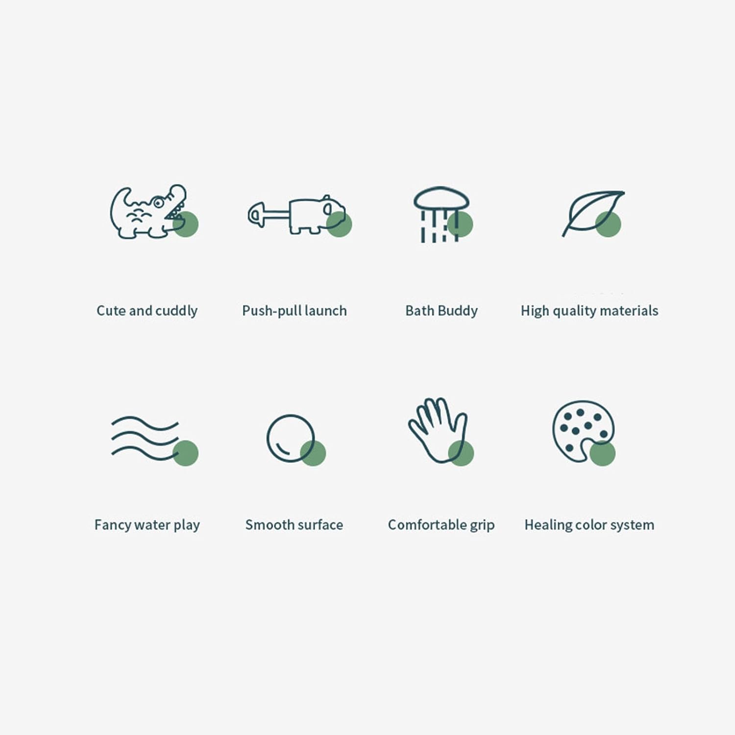 Pompa facile da usare: il meccanismo di trazione e spinta consente di spruzzare acqua senza sforzo, incoraggiando il tempo di gioco dell'acqua dei genitori e creando meravigliosi ricordi. Beat Heat: lascia che i tuoi bambini si godano l'estate rinfrescante con un'adorabile pompa dell'acqua a tema animale. Possono sperimentare le gioie del mondo rimanendo calmi. Portatile: leggero e compatto, il giocattolo della pompa dell'acqua dei cartoni animati è facile da trasportare, rendendolo per le gite in spiaggia, il gioco in giardino o il divertimento durante il bagno. Cute Animal Design: il giocattolo per bagnare l'acqua degli animali è progettato con una forma adorabile, che è accattivante e i colori ricchi lo rendono dei preferiti tra bambini e ragazzi. Sviluppo del cervello: il simpatico e giocoso giocattolo con pompa dell'acqua promuove lo sviluppo del cervello mentre i bambini si impegnano in giochi d'acqua interattivi e fantasiosi.