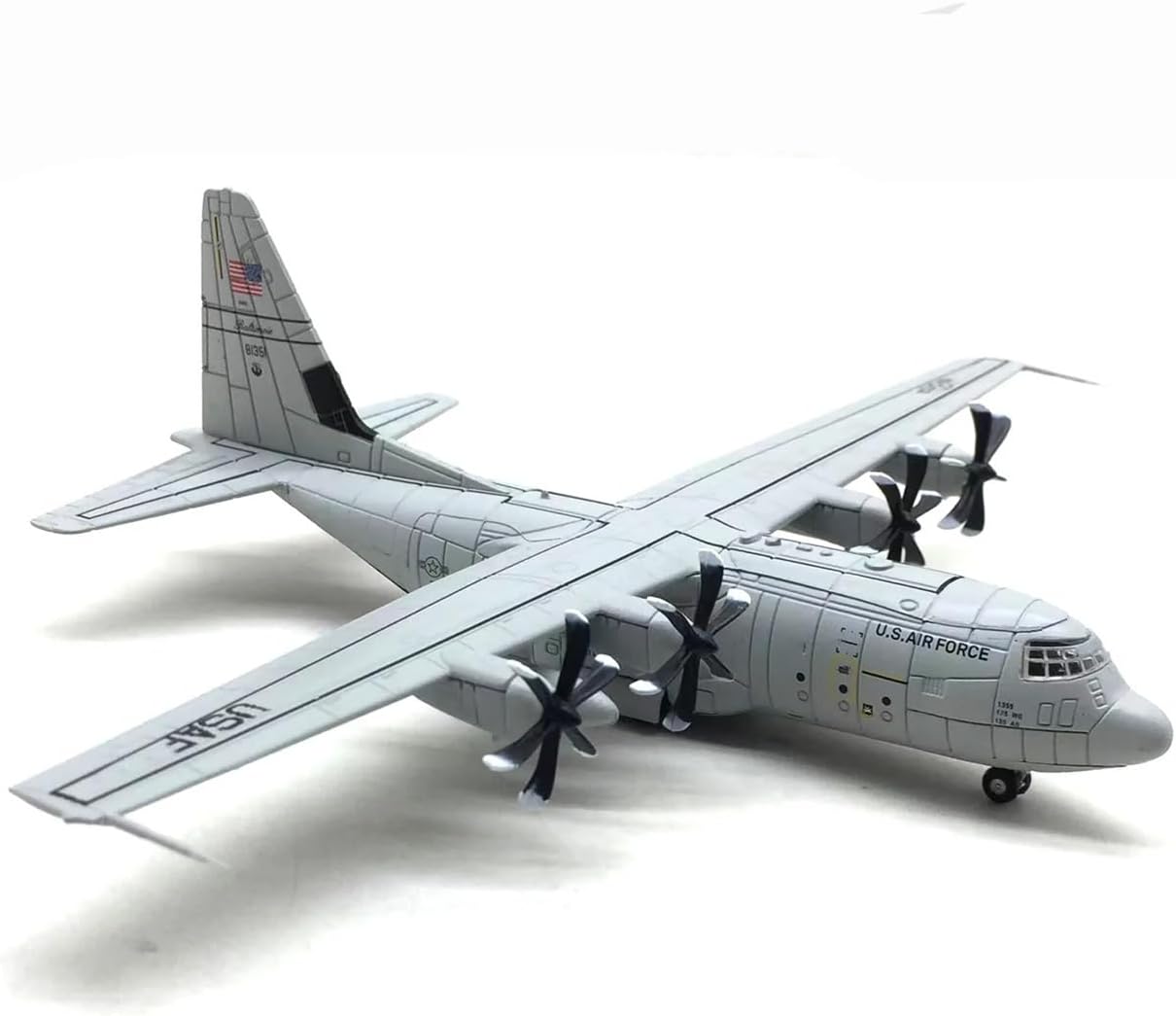 Replica autentica in scala 1:200 dell'aereo da trasporto C-130J Super costruzione in lega per durata e un aspetto premium Include un robusto supporto espositivo, perfetto per la decorazione della casa o dell'ufficio Ideale per appassionati di aviazione, collezionisti e appassionati di storia militare Lavorazione artigianale dettagliata con elementi di design realistici per catturare l'essenza del C-130J