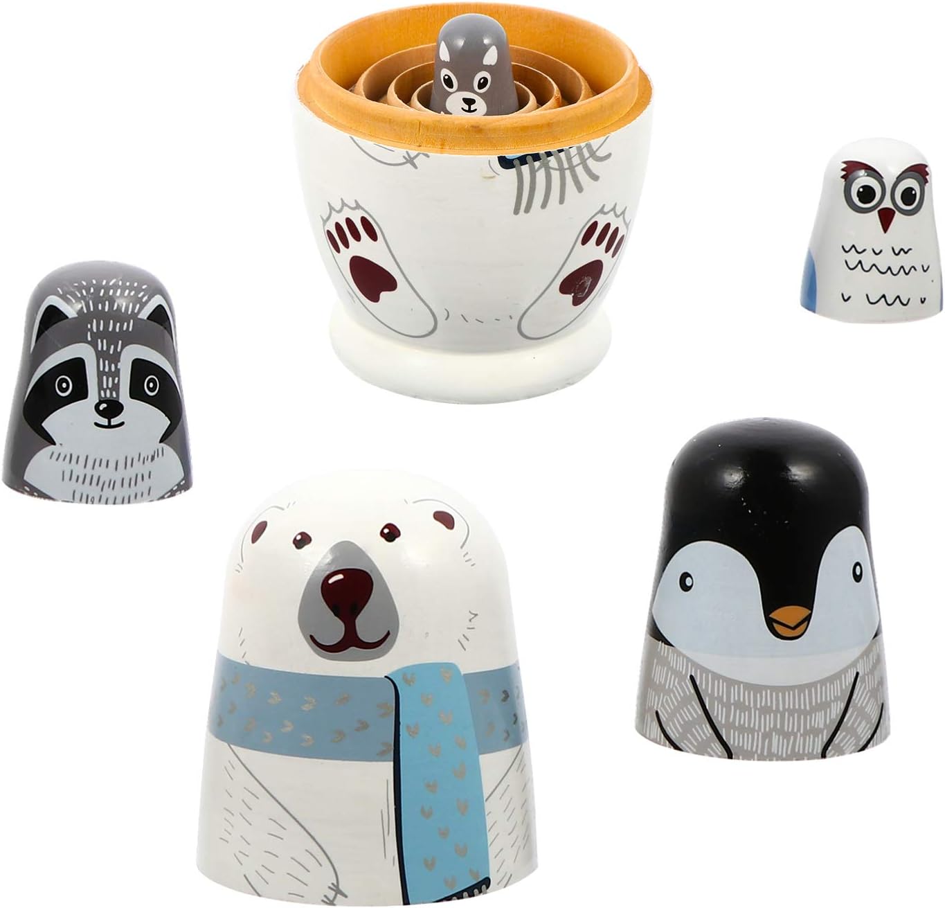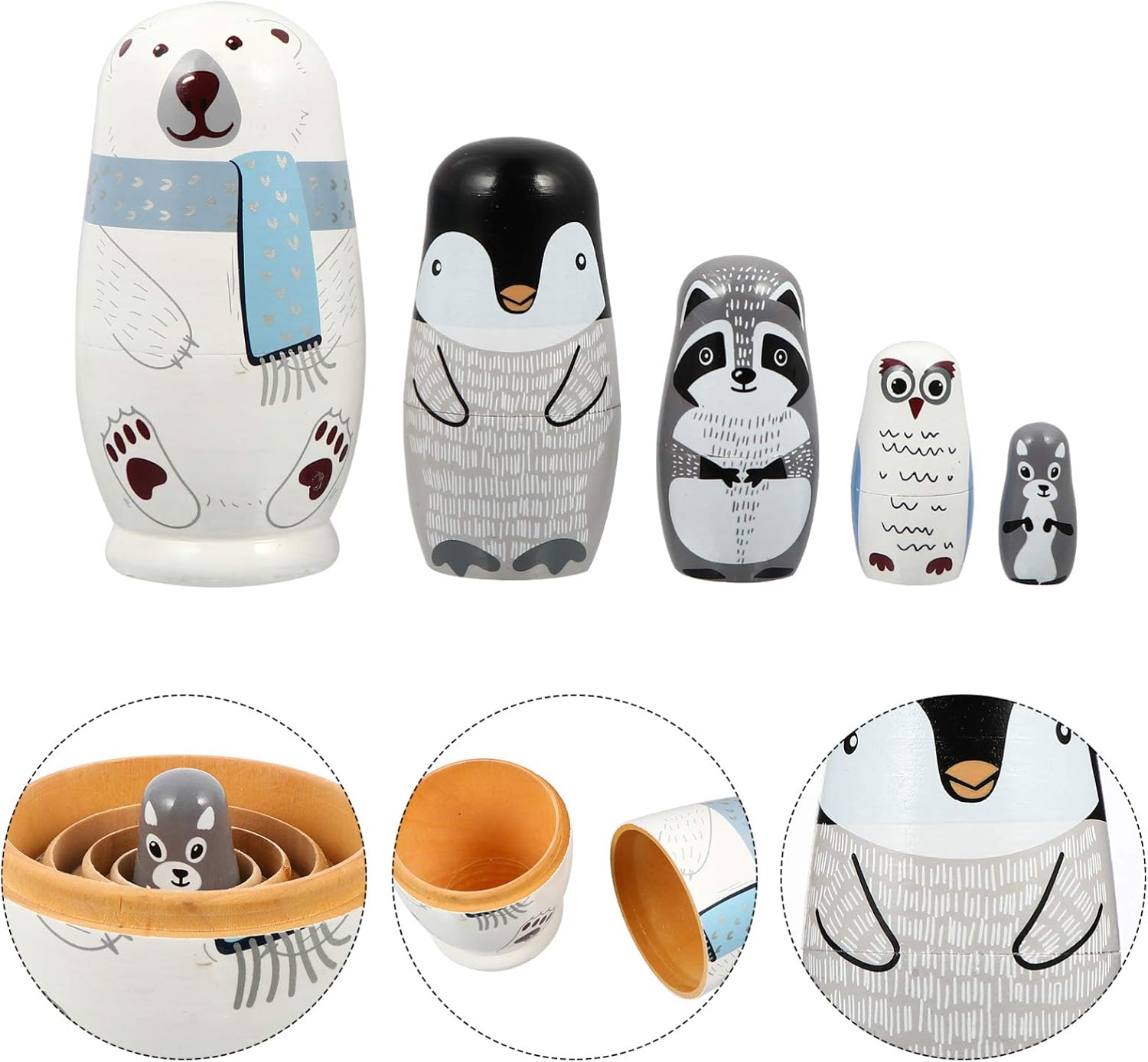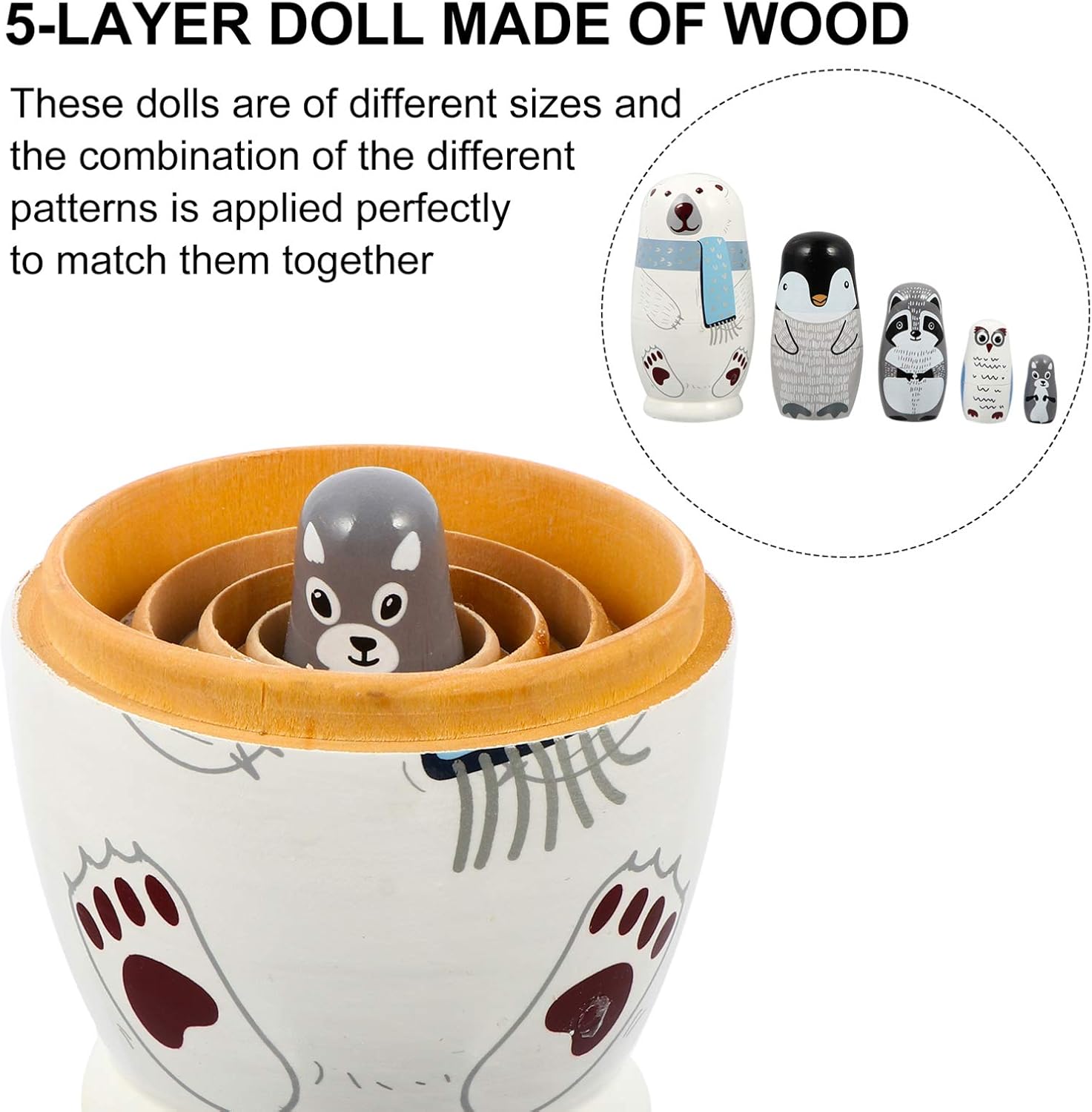Generico 1 set di bambole che nidificano Bambole che nidificano aminali 5 divani Bambole russe che nidificano Bambola animale Bambola matrioska in legno Bambole russe impilabili in legno per regali per bambini Tipo di prodotto: FIGURA GIOCATTOLO Marca: Generic