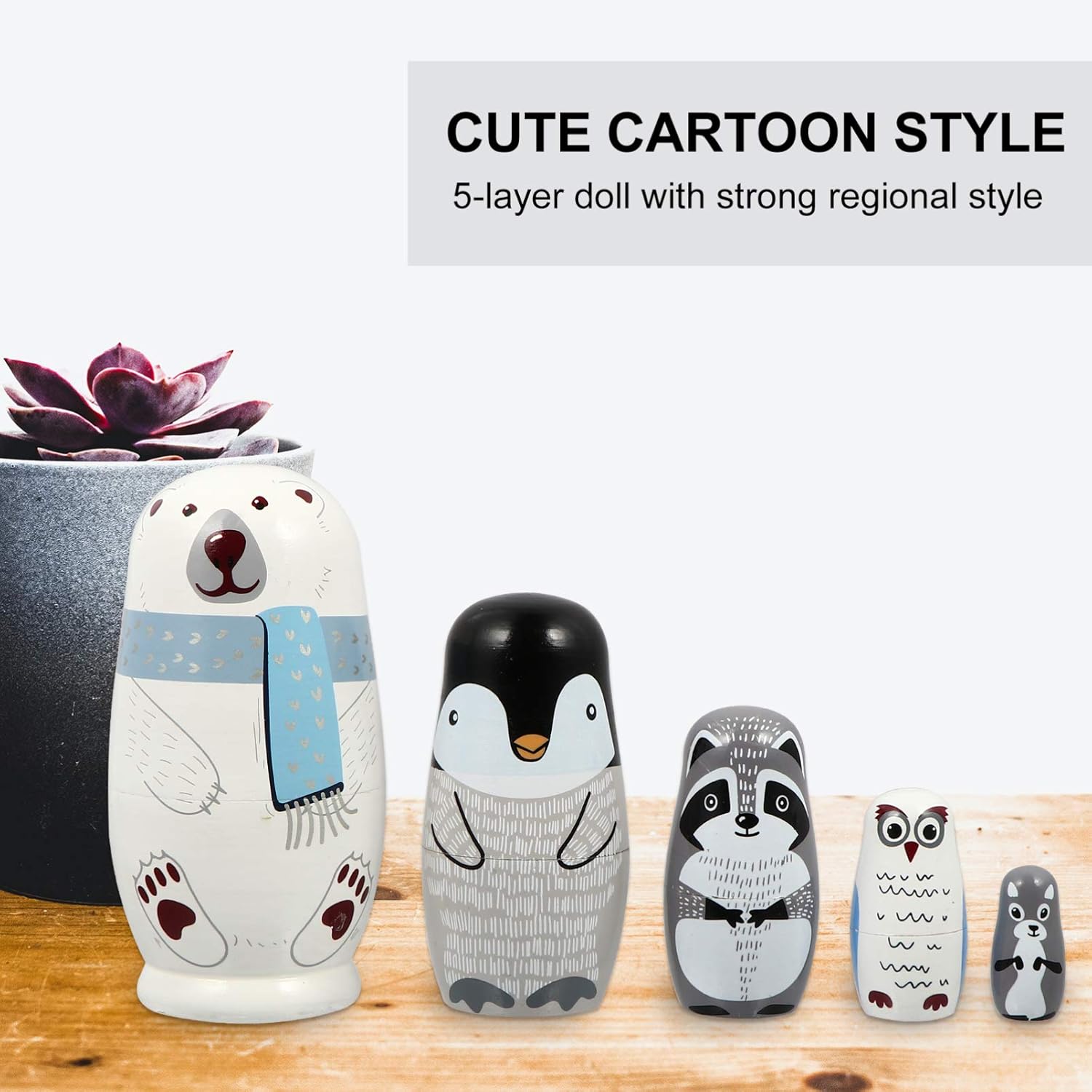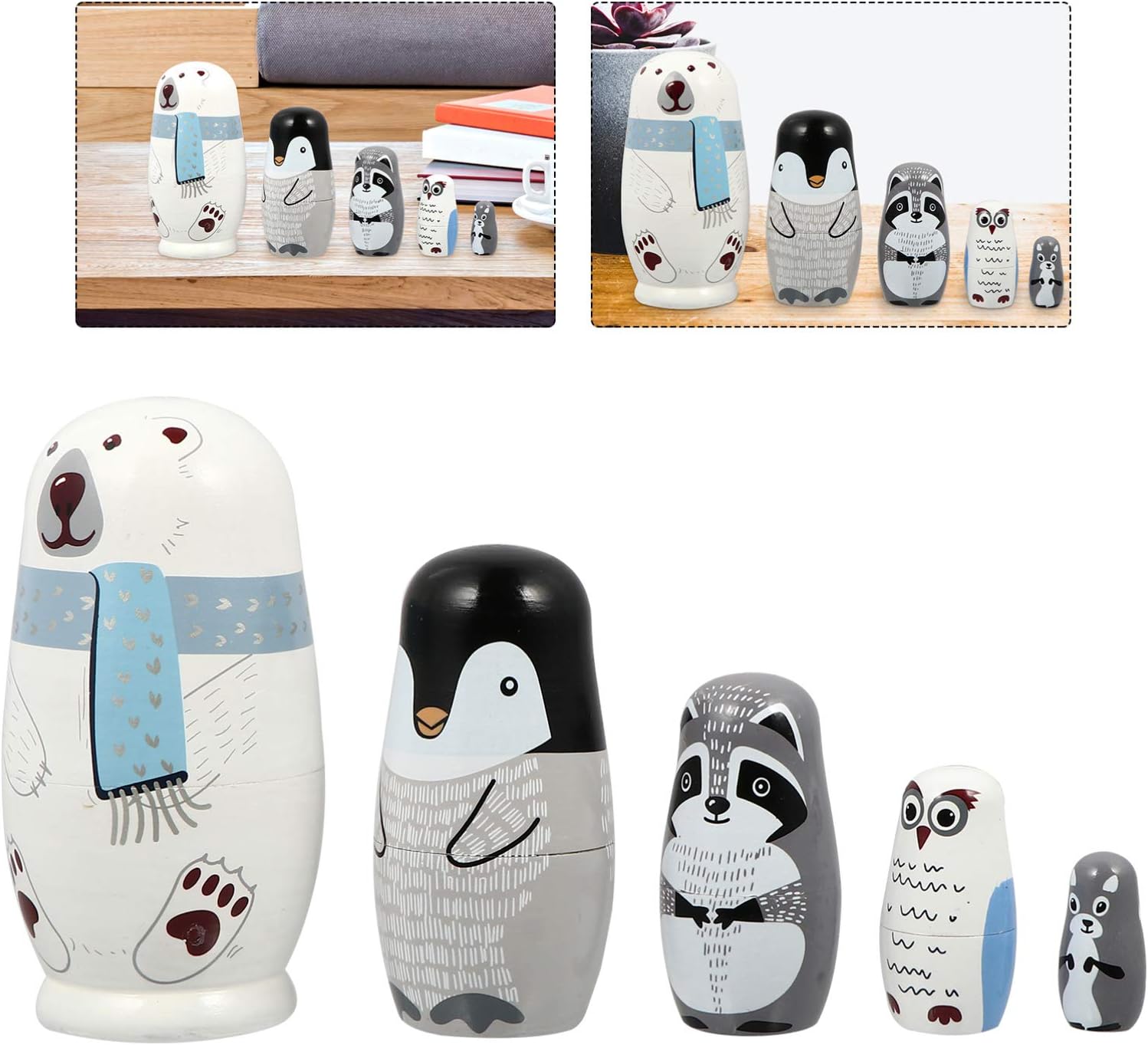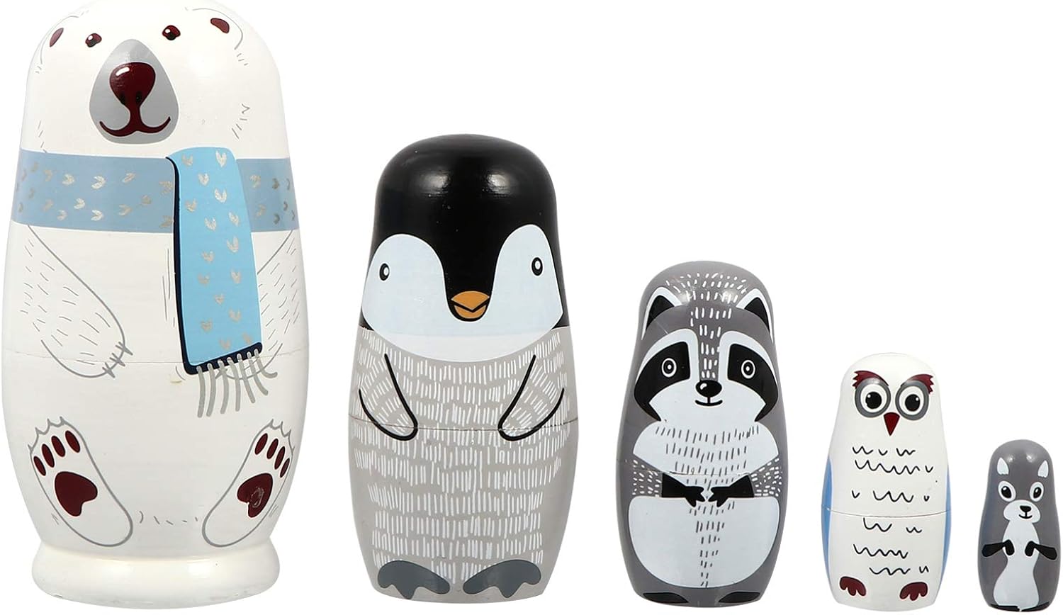 Generico 1 set di bambole che nidificano Bambole che nidificano aminali 5 divani Bambole russe che nidificano Bambola animale Bambola matrioska in legno Bambole russe impilabili in legno per regali per bambini Tipo di prodotto: FIGURA GIOCATTOLO Marca: Generic