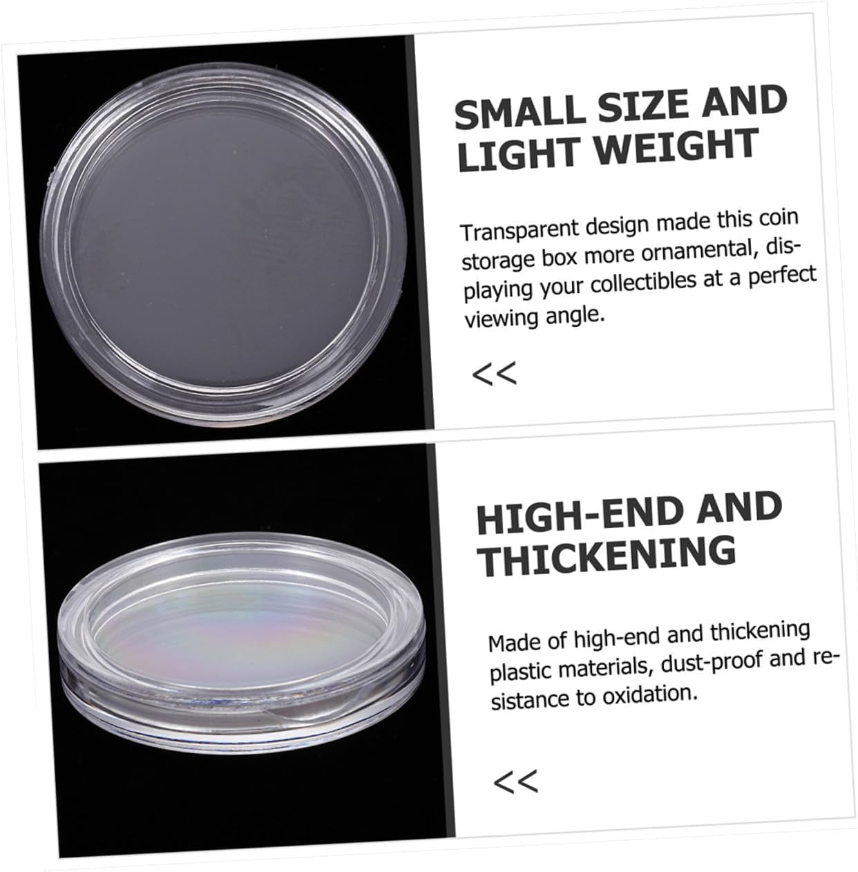 Portamonete in plastica: il design trasparente è un buon modo per esporre le tue monete, molto pratico e comodo, capsule trasparenti per monete Comodi porta monete: la copertura è liscia al e non ti farà male alle dita, porta monete Accessori per monete: e questo contenitore può contenere diverse monete commemorative, scatole trasparenti per la conservazione delle monete Protezioni trasparenti per monete: questo supporto in plastica può proteggere efficacemente dall'ossidazione per un lungo periodo di conservazione delle monete Porta monete: è facile e chiaro per te esporre la tua collezione di monete e monete da collezione, comodi porta monete