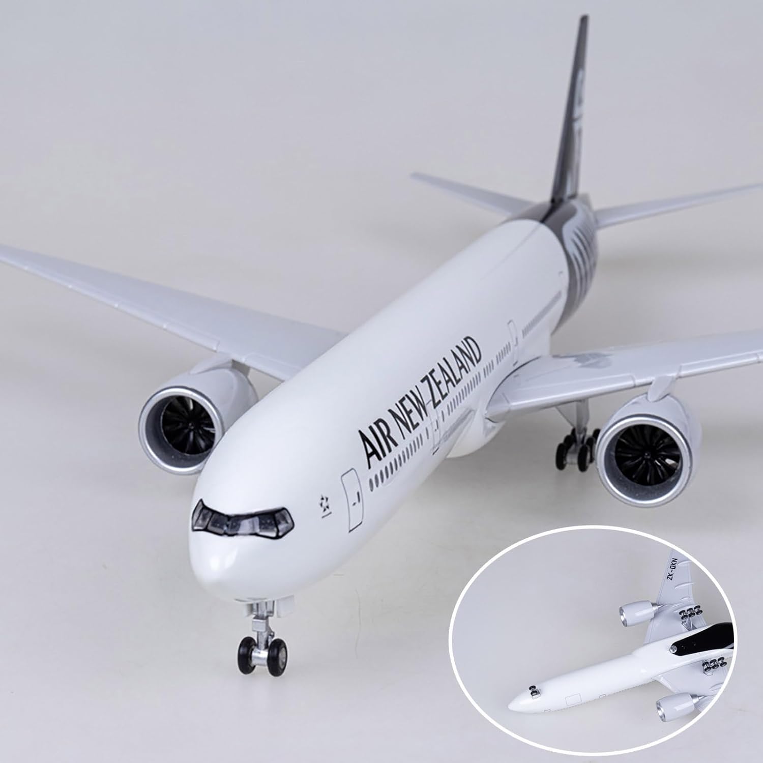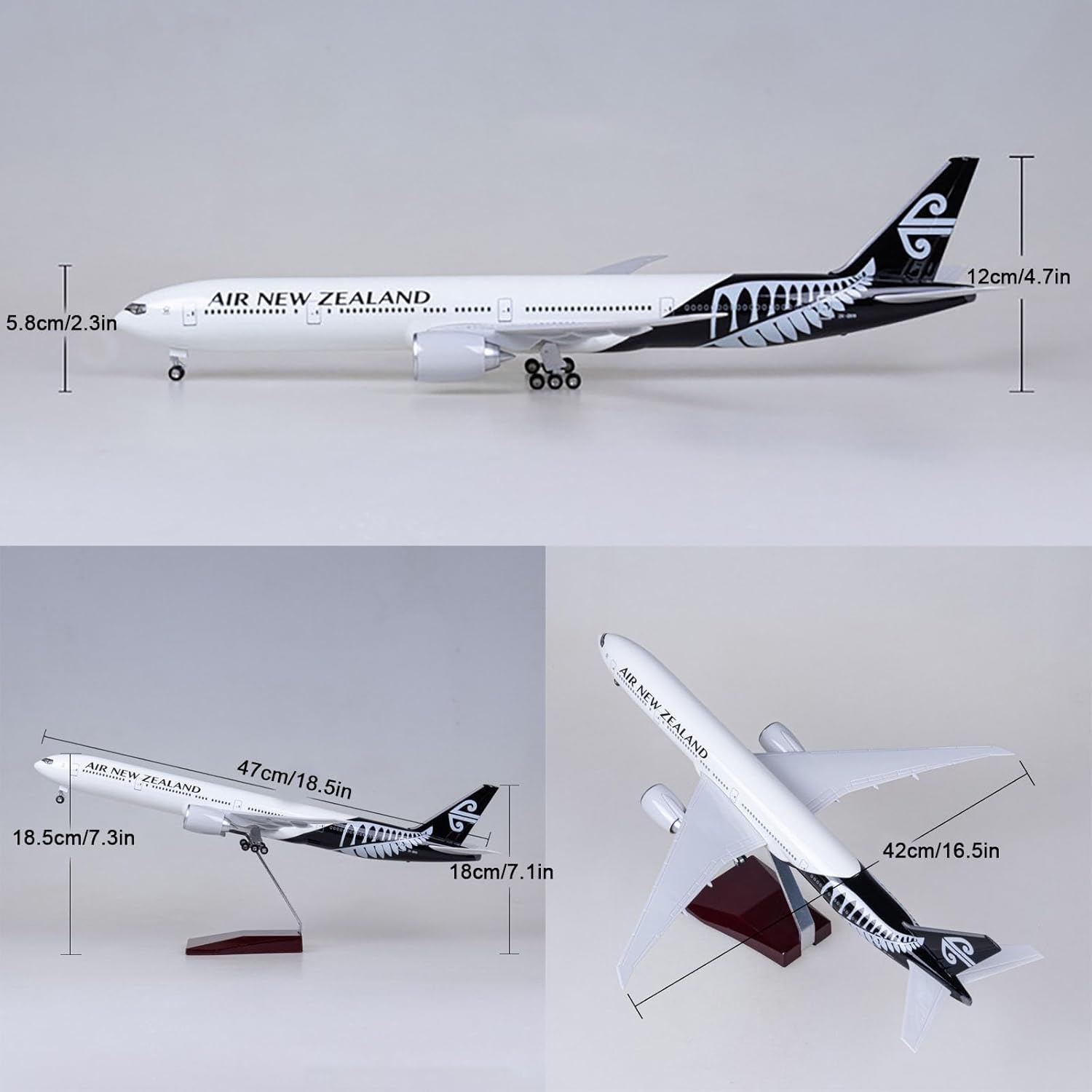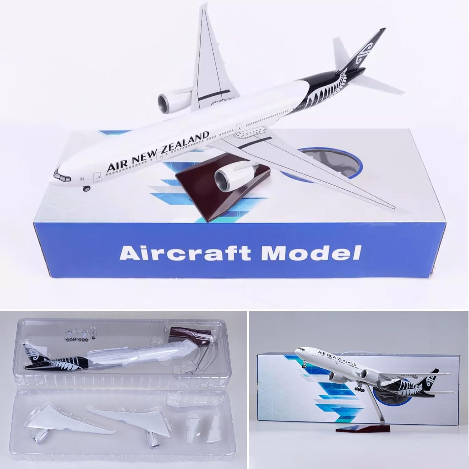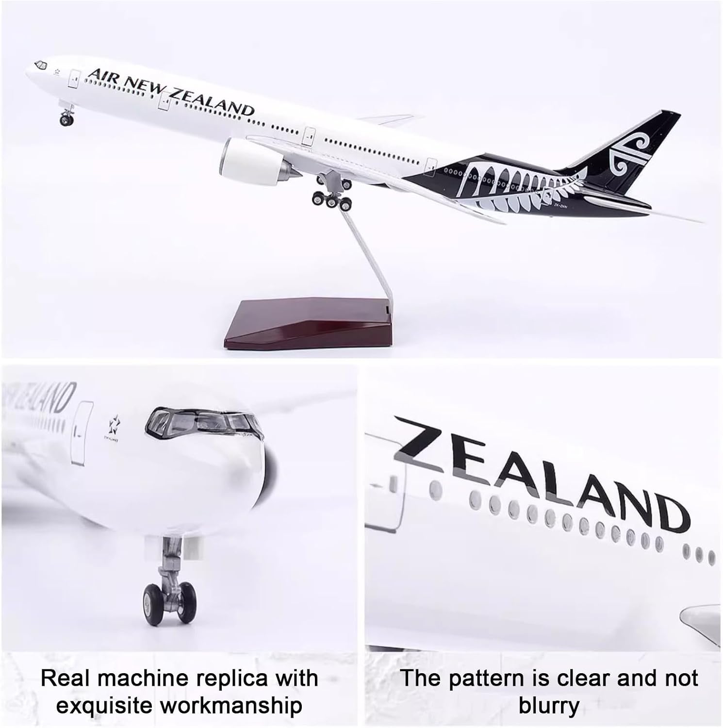 Modellino di aereo in scala realistica: modello di aereo modello Jet New Zealand B777-300 da 18,5 pollici in scala 1:130 con ruote, modello di aereo, 18,5 x 17 x 8,3 pollici. Design semplice a scatto: il modello B777 della Nuova Zelanda può essere facilmente installato in soli tre passaggi. Puoi esporre un modello migliore allo stand. Il modello di visualizzazione statica è completamente ridotto rispetto al modello originale e presenta un elevato grado di simulazione. LED e ruote: tocca o dai voce al modello dell'aereo, l'illuminazione della cabina si accenderà. Dopo 20 secondi, il modello dell'aereo entrerà in modalità di risparmio energetico e spegnerà automaticamente le luci a LED. Materiali dettagliati di alta qualità: l'aereo B777 della Nuova Zelanda utilizza fusoliera, base e staffe metalliche di alta qualità. I dettagli dalla scheda motore alla verniciatura sono meticolosi. Il modello generale dell'aereo è molto aerodinamico. I finestrini del modello dell'aereo sono chiaramente visibili. Regalo da collezione: il modello di aeroplano viene fornito con una base pronta for l'esposizione, una bellissima decorazione e un oggetto da collezione for l'ufficio, la casa ed è un regalo perfetto for gli appassionati di aviazione, il personale militare o i collezionisti.
