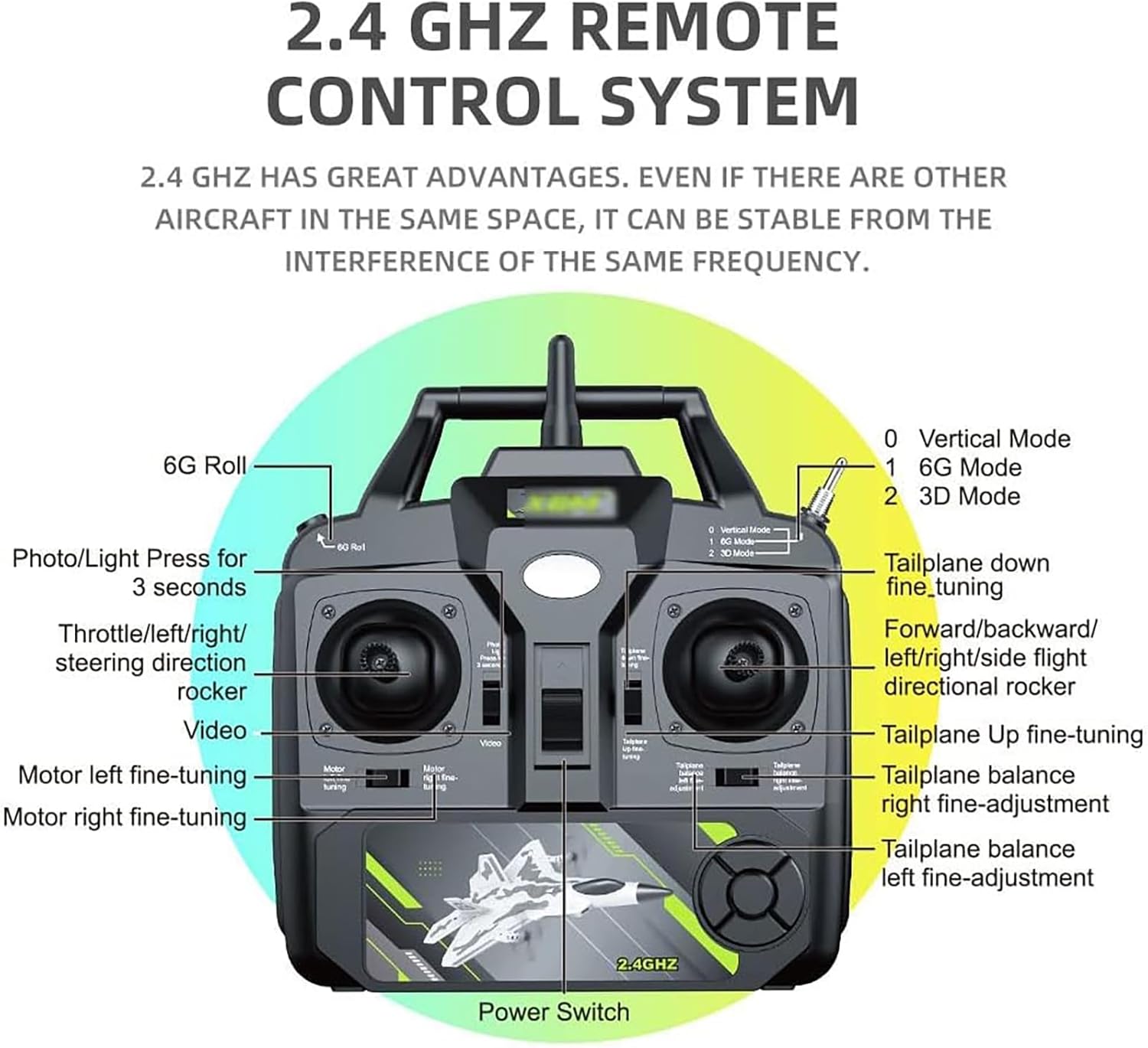 Il materiale espanso EPP utilizzato appositamente per gli alianti è ad alta resistenza e più leggero. Ha una migliore flessibilità e non è facile da deformare Sotto le ali sono disposte due file di lampade a LED ad alta luminosità e le luci colorate lampeggianti cambiano automaticamente, rendendovi la stella più luminosa del cielo notturno in un ambiente con scarsa illuminazione 2. 4GHZ ha grandi vantaggi, anche se altri velivoli nello stesso spazio, può essere stabilmente libero dalle interferenze della stessa frequenza. 4GHZ ha grandi vantaggi, anche se ci sono altri velivoli nello stesso spazio, può essere stabilmente libero dalle interferenze della stessa frequenza Il layout aereo del simulatore è dotato di un potente motore a tazza cava 8623, che fornisce una forte potenza e stabilità al velivolo Layout aereo simulato, layout bilaterale delle ali, utilizzando il principio dell'aerodinamica per migliorare ulteriormente la velocità di volo