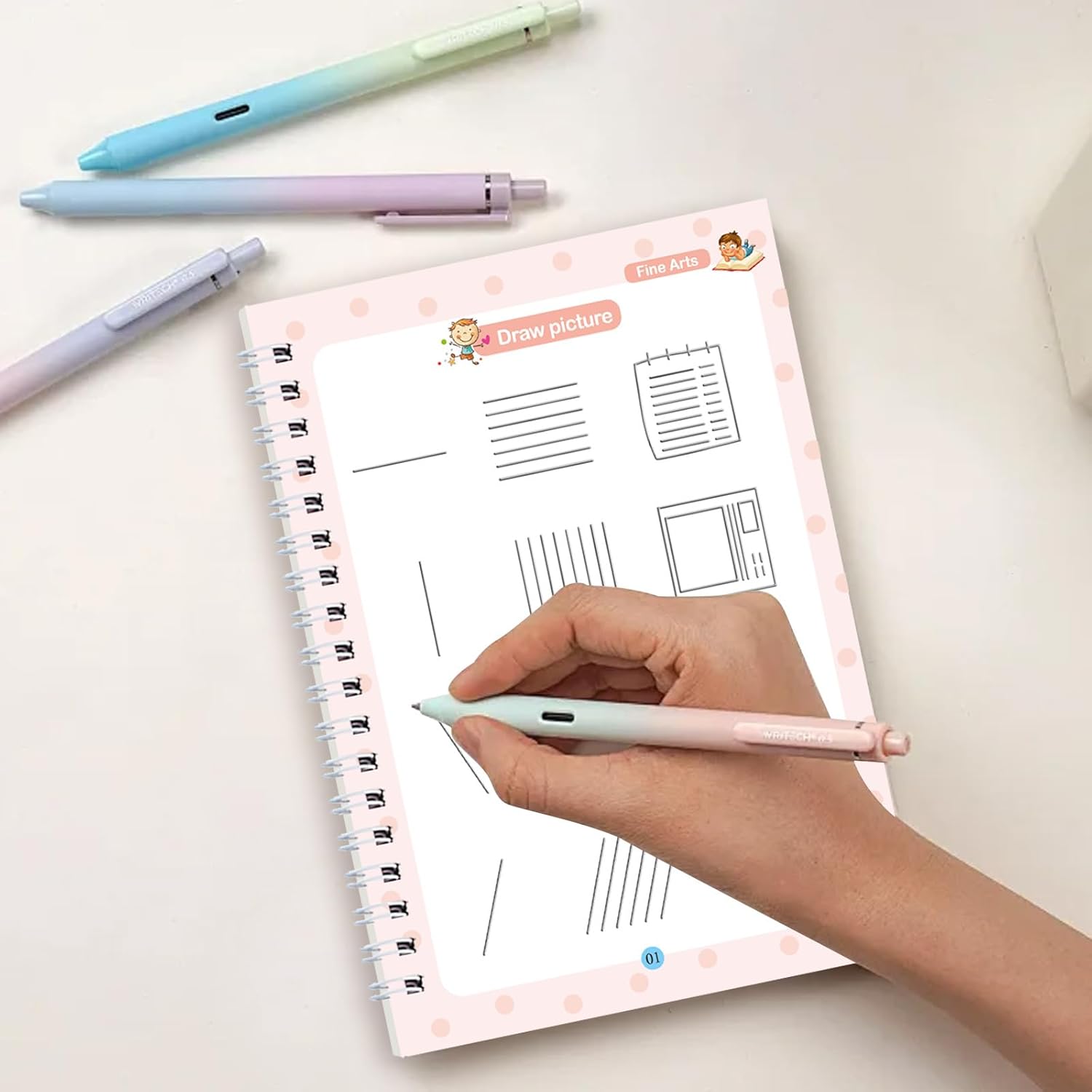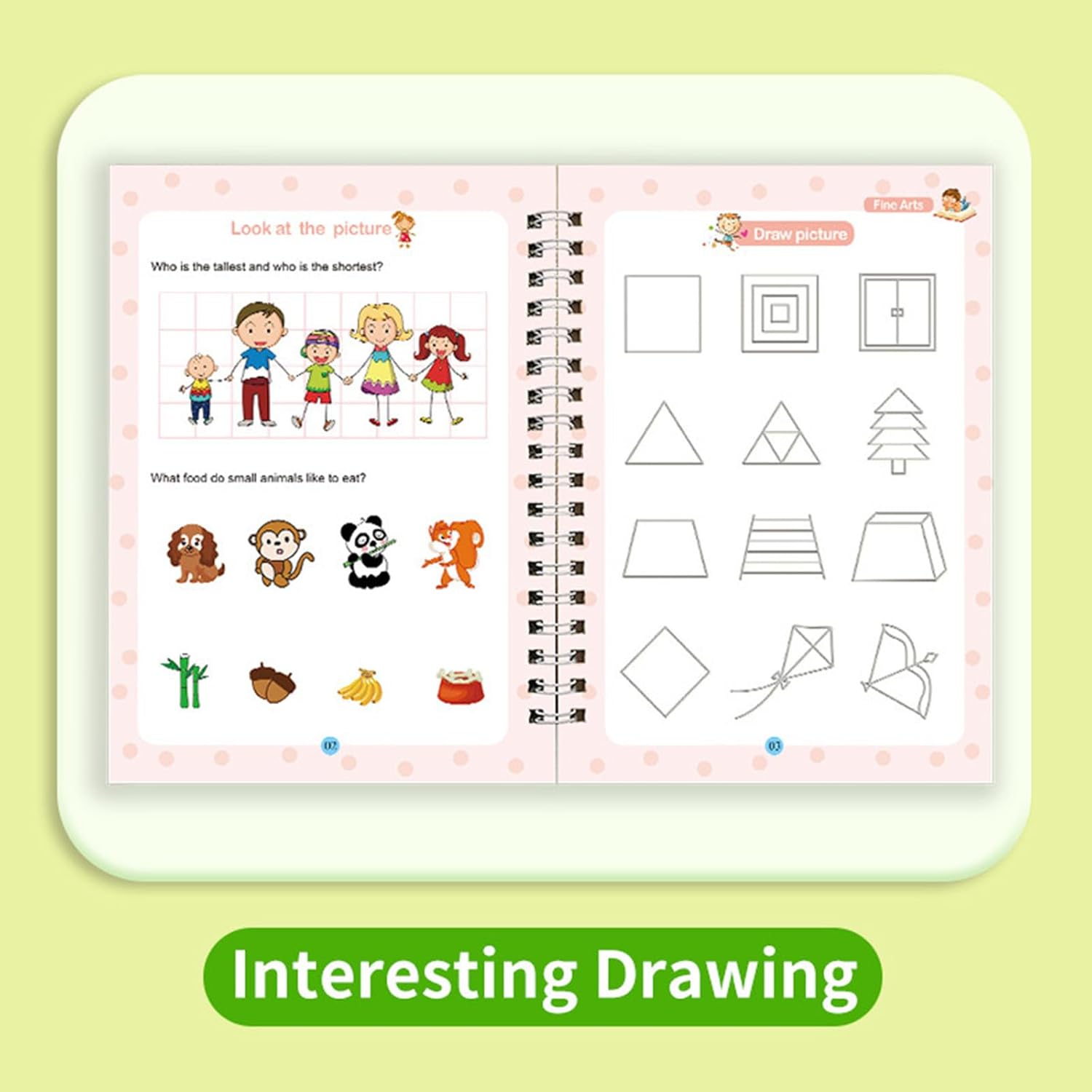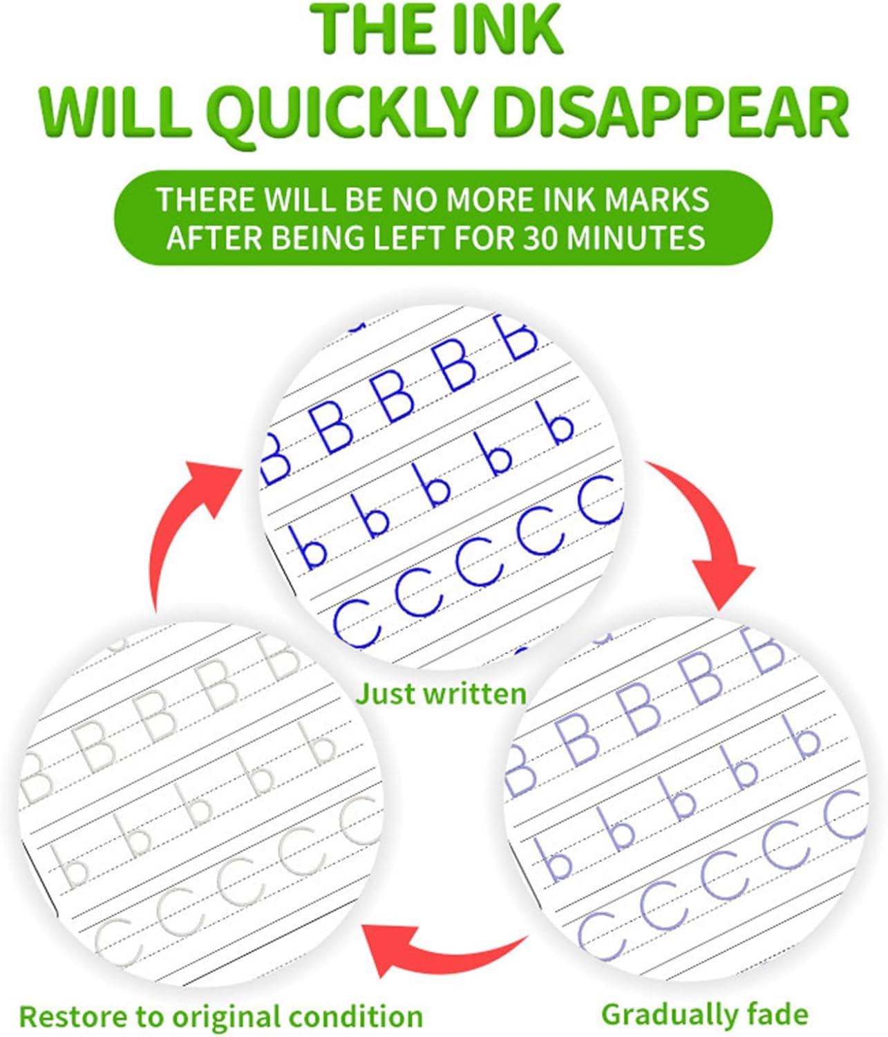 Inchiostro a scomparsa riutilizzabile: questo libro di scrittura utilizza la tecnologia dell'inchiostro magico, le linee scompaiono dopo circa 30 minuti, rendendo la ripetizione facile e riducendo gli sprechi. I bambini possono perfezionare la calligrafia senza ulteriori cure e risparmiare denaro e risorse. Supporto per scanalatura tridimensionale: ogni libro di lavoro per la scrittura a mano fornisce scanalature 3D che fungono da modelli di scrittura e aiutano i bambini a tracciare le forme corrette di lettere, numeri e immagini. La ricerca guidata supporta lo sviluppo delle abilità e costruisce la sicurezza di sé. Grip Grip Guide premurosa: ogni libro di tracciamento dei numeri include una speciale impugnatura a penna per aiutare i bambini a mantenere correttamente la penna e correggere la cattiva postura. Costruisci solide abitudini di scrittura a mano in giovane età con questo accessorio di supporto. Struttura in carta spessa e sicura: il nostro libro di esercizi di scrittura a mano è realizzato in carta resistente di alta qualità per garantire linee pulite senza perdite di inchiostro. I bambini godono di un uso ripetuto di scrittura e scorrimento, aumentando il comfort di ogni esercizio. Vari contenuti per l'apprendimento a tutto tondo: ogni set di copie di tracciamento contiene libri per lettere, numeri, disegno e matematica di base, arricchendo le routine di studio per bambini. Leggero e portatile, è un regalo premuroso per i giovani studenti per la casa o per l'esercizio a casa.
