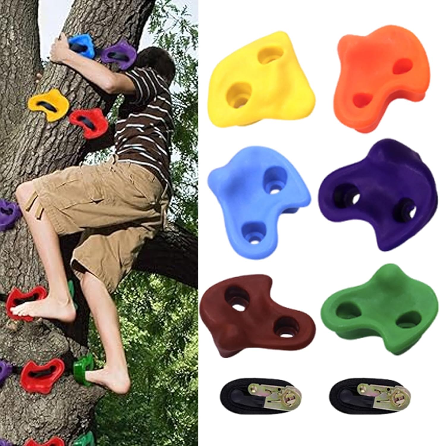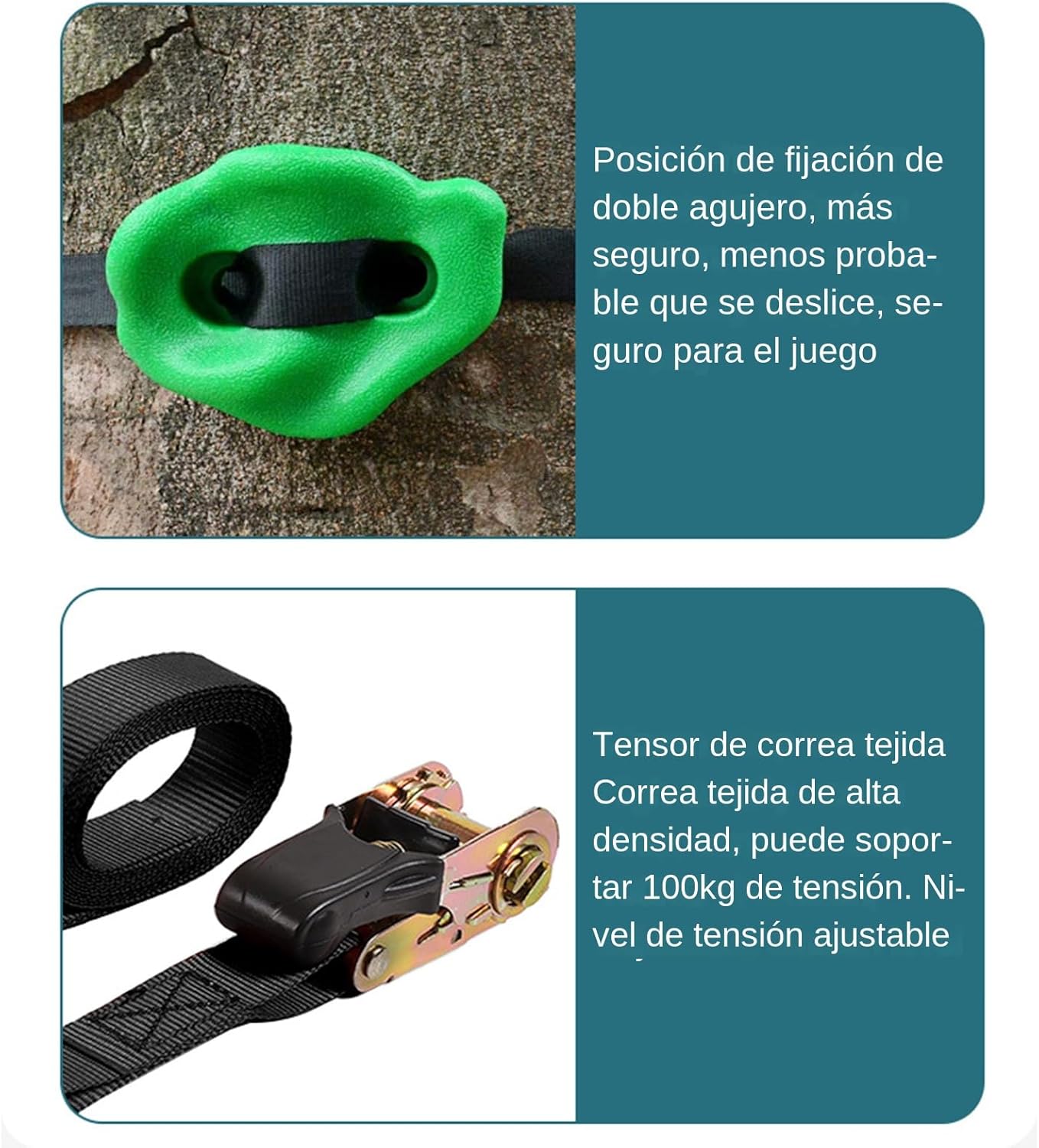 Tecnologia con bordi lisci: progettati con bordi lisci e texture antiscivolo, offrono un'esperienza di presa e calpestio sicura in ogni salita con le nostre dighe per bambini. Montaggio agile: la filettatura della cintura e lo strumento di serraggio consentono l'installazione rapida fornendo tensione regolabile adatta a molteplici dimensioni di alberi garantendo esperienza di arrampicata. Versatilità massima: progettati per parchi esterni e giardini fatti in casa. La sua ampia adattabilità li rende perfetti per le aree dei bambini, stimolando giochi fantasiosi durante ore attive. Alta capacità: offre prestazioni affidabili sotto pressione, assistendo efficacemente gli utenti con la sua struttura ben progettata e cintura rinforzata a doppio foro. Vantaggi evolutivi: Stimola forza fisica, equilibrio e coordinazione -mano migliorata durante attività giocose, rafforzando fiducia, concentrazione e sviluppo generale del bambino.