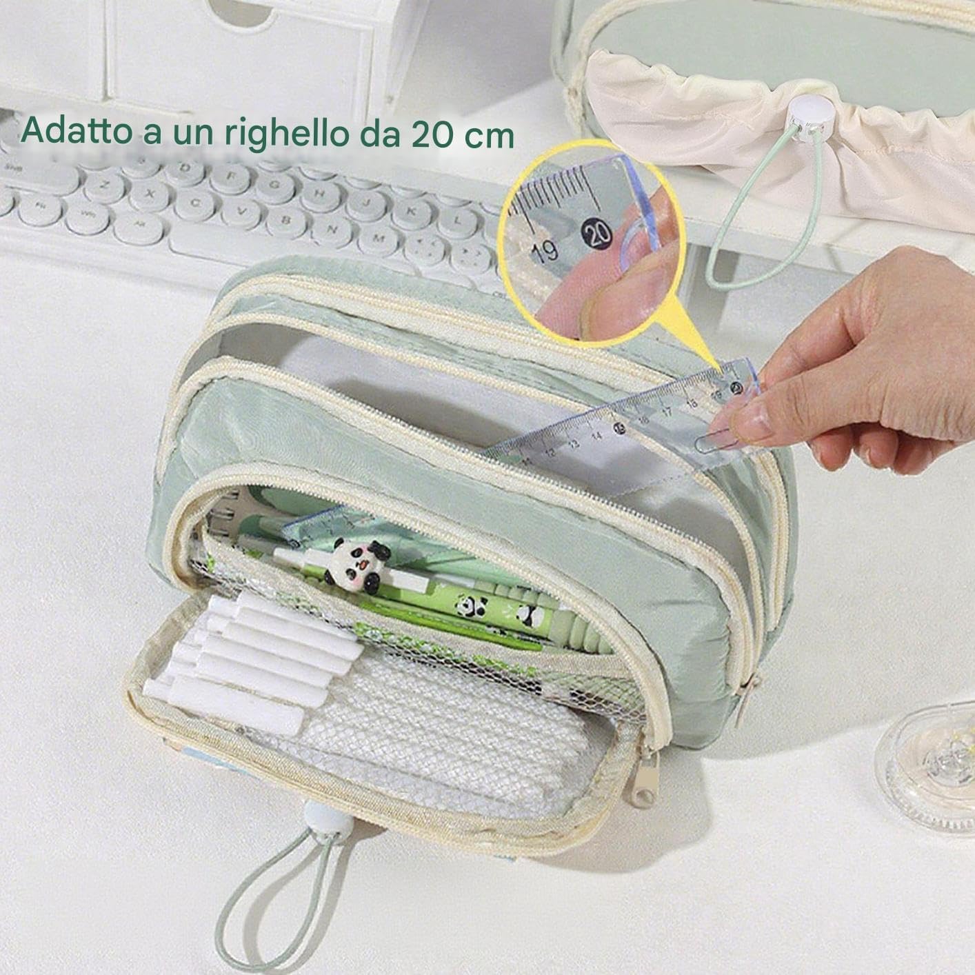 Gestione Efficiente: Architettura interna multistrato permette di riporre ordinatamente fino a 100 strumenti da scrittura con estrazione agevole, ottimizzando lo spazio disponibile e semplificando la ricerca quotidiana degli oggetti essenziali Organizzazione Ottimizzata: Grazie alle dimensioni compatte e alla struttura resistente, mantiene ordinati articoli da cancelleria essenziali, facilitando il trasporto e l'accesso rapido per studenti e professionisti in movimento Sicuro Antismarrimento:Chiusura a cordino innovativa per apertura/chiusura , garantisce massima sicurezza durante l'uso prevenendo smarrimenti e scivolamenti delle matite, funzionalità affidabile per astucci scolastici Tonalità Moderne: Le vivaci rallegrano la tua giornata unendo praticità a un design alla moda, che valorizza le preferenze personali con eleganza attuale e appeal visivo immediato. Impermeabilità Efficace: Materiali di alta qualità garantiscono lunga durata e protezione da d'acqua per prestazioni affidabili in qualsiasi condizione, mantenendo la qualità nel naturalmente