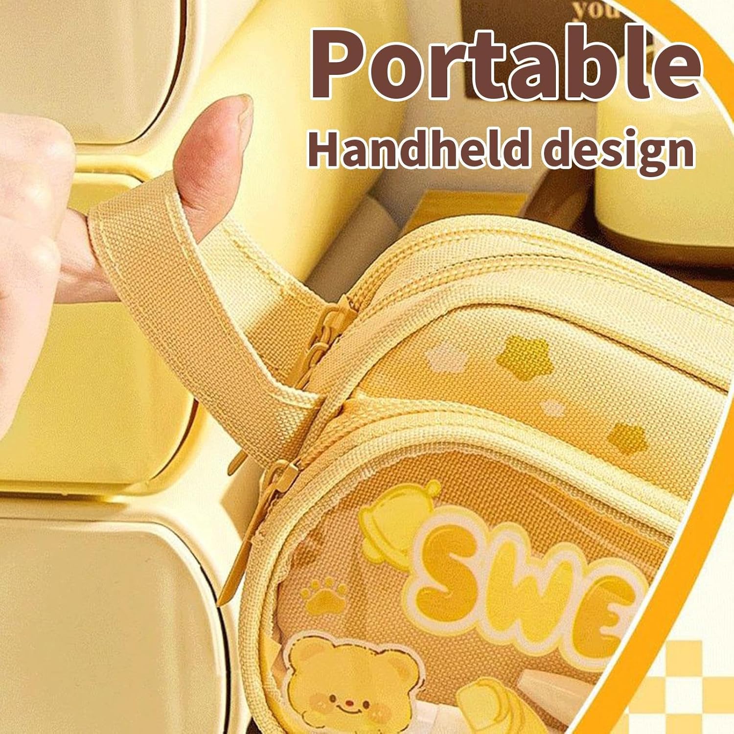 Stampa Animale Carina: Progettata con una tavolozza di colori rilassante e simpatici motivi di capibara e orsi, ispira i bambini a divertirsi nello studio rendendo l'organizzazione piacevole e visivamente accattivante con un design giocoso e rassicurante. Struttura Infrangibile: La selezione di tessuti ultra-resistenti e privi di odori contrasta efficacemente l'usura giornaliera, garantendo durabilità a lungo termine con totale sicurezza per l'uso da parte di bambini Pratico da Trasportare: Impugnatura confortevole e design leggero offrono soluzione pratica per trasportare oggetti scolastici durante lezioni o avventure all'aperto senza sforzo Pratictà Massima:Tiene fino a 100 penne in 3 livelli organizzati, garantendo ordine nella cancelleria e agevolando l'apprendimento con spazio per righelli e accessori. Risparmio : Sezione trasparente permette identificazione immediata degli articoli facilitando l'organizzazione personale e completando con stile il design complessivo evitando inutili disordini nella borsa o nello zaino