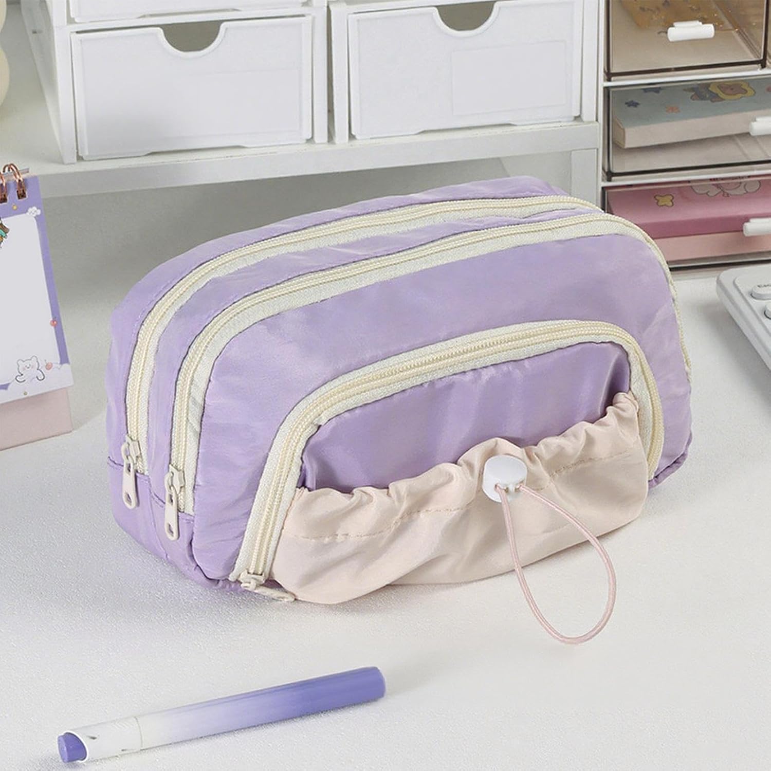 Soluzione Intelligente: Struttura compartimentata multilivello assicura elevata capacità contenitiva per articoli da scrittura, ospitando fino a 100 penne eliminando il disordine e assicurando praticità immediata in ogni contesto di utilizzo reale Design Pratico: La chiusura scorrevole e i materiali leggeri assicurano apertura/chiusura semplice e portabilità, ideale per riporre matite colorate, evidenziatori e piccoli strumenti creativi in aule, uffici o laboratori Chiusura Sicura Conveniente:Caratteristica a cordino avanzata per apertura/chiusura perfetta, mantiene vantaggi antismarrimento e antiscivolo per esperienza d'uso ottimale con materiali scolastici Estetica : Arricchita da tinte vibranti, la trousse dona una piacevole sensazione di freschezza unita a un design elegante e curato per l'utilizzo quotidiano, bilanciando funzionalità e stile con armonia. Costruzione : Tessuto impermeabile e struttura robusta assicurano una lunga vita utile all'astuccio, resistendo all'uso frequente senza compromettere integrità o funzionalità quotidiana