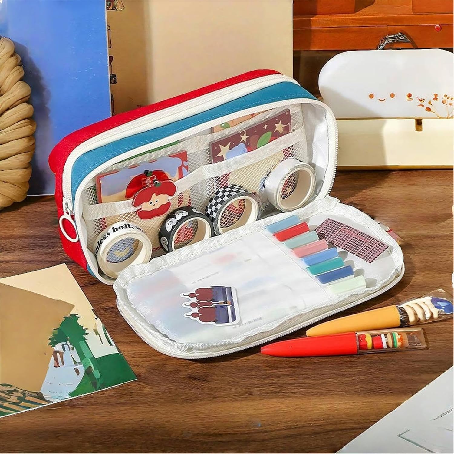 Funzionalità quotidiana pratica: Il design concentrato sull'accessibilità, unito a cerniere scorrevoli e affidabili, assicura prestazioni costanti e un'apertura senza sforzo durante l'uso regolare del portamatite. Protezione da polvere: Grazie a una speciale finitura superficiale, assicura una manutenzione agevole con pulizia a straccio, offrendo efficace barriera contro polvere e liquidi oltre a resistenza alle macchie per una lunga vita utile Layout intelligente: Multiple tasche interne offrono capienza generosa per oltre 50 strumenti scrittura, con accesso organizzato e immediato. Il anti-confusione mantiene tutto ordinato e efficiente per un utilizzo senza stress. Design Retro Ricercato: Ispirato stile vintage con abbinamenti di colori vibranti, questo astuccio offre un modo elegante per organizzare l'essenziale distinguendosi grazie al suo fascino speciale e alla personalità unica Materiale tessile robusto: Combina materiali resistenti agli strappi e metodi di cucitura rinforzati, questo astuccio offre una difesa duratura per i tuoi articoli di cancelleria, realizzato in tessuto solido per garantire prestazioni prolungate durante i cicli di usura e manipolazione quotidiana