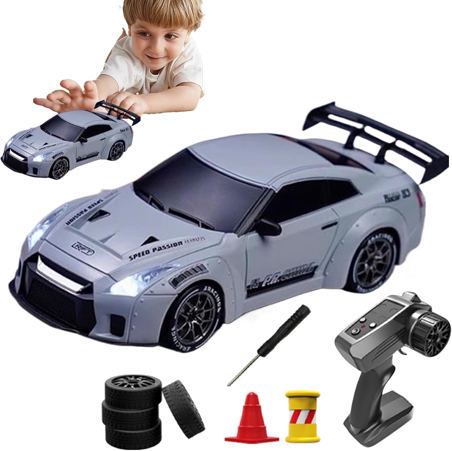 Aggiornamento 'estetica rivoluzionaria: vantando un design retro-moderno, la nostra auto Drift RC è utilizzata con una finitura in argento in metallo liquido che combina l'estetica nostalgica con prestazioni avanzate. Con ogni diapositiva, sperimentare precisione e stile senza rivali Capacità di guida versatili: conquistare qualsiasi terreno con facilità usando la nostra auto Drift RC. Con la capacità di cambiare tra 4 pneumatici per la deriva per scorrimento senza cuciture o 4 pneumatici dritti per le corse ad alta velocità, la nostra versatile auto offre un'esperienza di guida come nessun altro. Play esteso divertente: potenziata da un alimentatore ricaricabile, l'auto della deriva RC non sto mai dando brivido e eccitazione. Il telecomando funziona con 2 batterie AA, garantendo lunghe ore di gioco, mentre si presenta una batteria al litio ricaricabile e un cavo di ricarica per auto per alimentazione non distintiva Crea corsi di deriva personalizzati: migliora la tua abilità alla deriva o divertiti a competere con i tuoi amici. Crea corsi di deriva personalizzati con i piccoli coni di traffico inclusi per trovare sfide uniche PEFECT Present Choice: Delizia il tuo amore con questa auto Drift RC: un Ice Presente per familiari, colleghi e amici. Un buon modo per mostrare il tuo apprezzamento, questa macchina è buona per uso personale e fa un'idea presente ponderata per ogni occasione