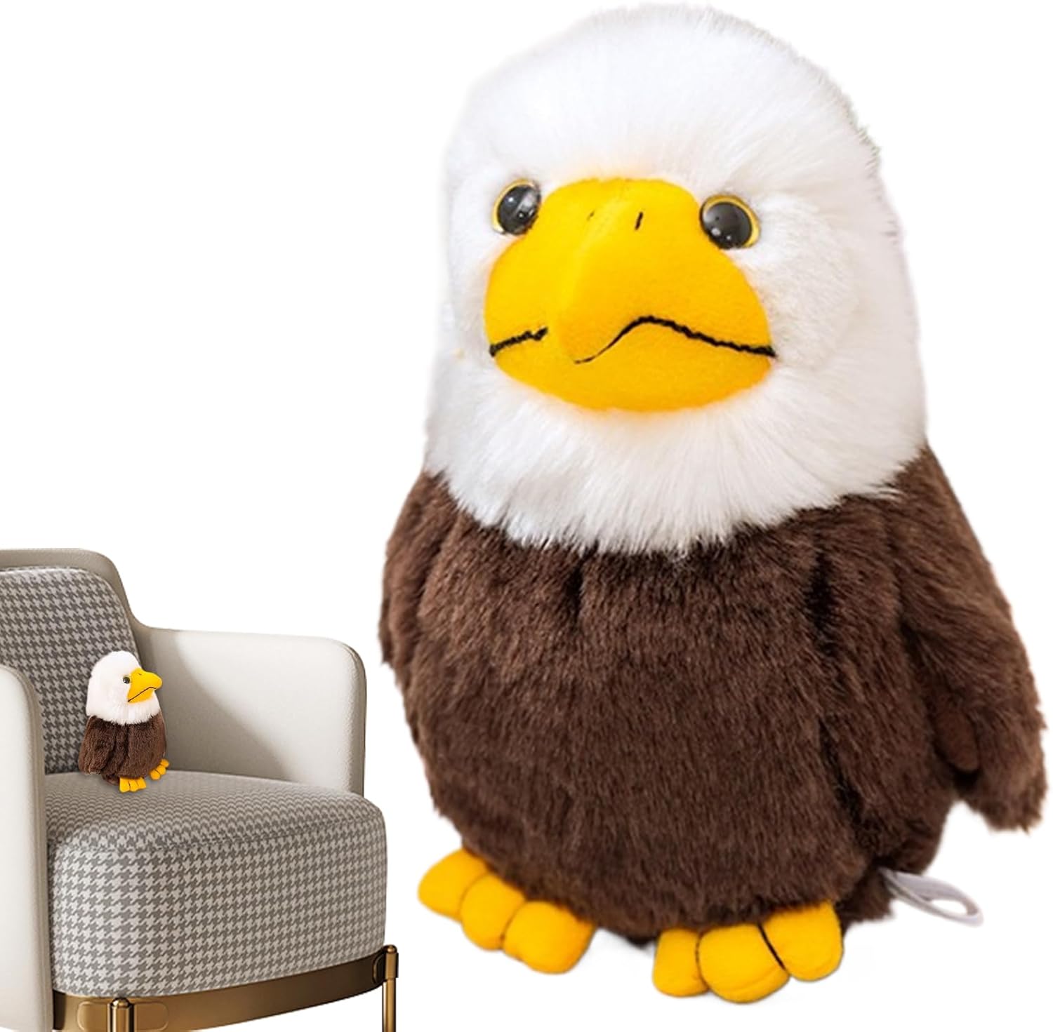 Educational & Decorative Value: Encourages curiosity about wildlife while serving as a fun decor piece for homes, classrooms, or nurseries, making it suitable for both play and learning environments Portable & Lightweight: Its compact 17cm size makes it easy to carry, ideal for travel or outdoor adventures, allowing kids or collectors to take their favorite eagle anywhere with ease Soft & Huggable Texture: Made from high-quality plush fabric with filling, this eagle doll a gentle, velvety touch that’s perfect for cuddling, comforting, or displaying on desks and shelves Adorable Eagle Design: This 17cm bald eagle plush captures the charm of a wild bird with bright colors and soft textures, making it a cute collectible or decorative addition to any bedroom, study, or living room Perfect Gift for All Ages: A thoughtful and unique gift for bird lovers, collectors, kids, and adults alike, ideal for birthdays, holidays, and special occasions, bringing warmth and joy to any setting