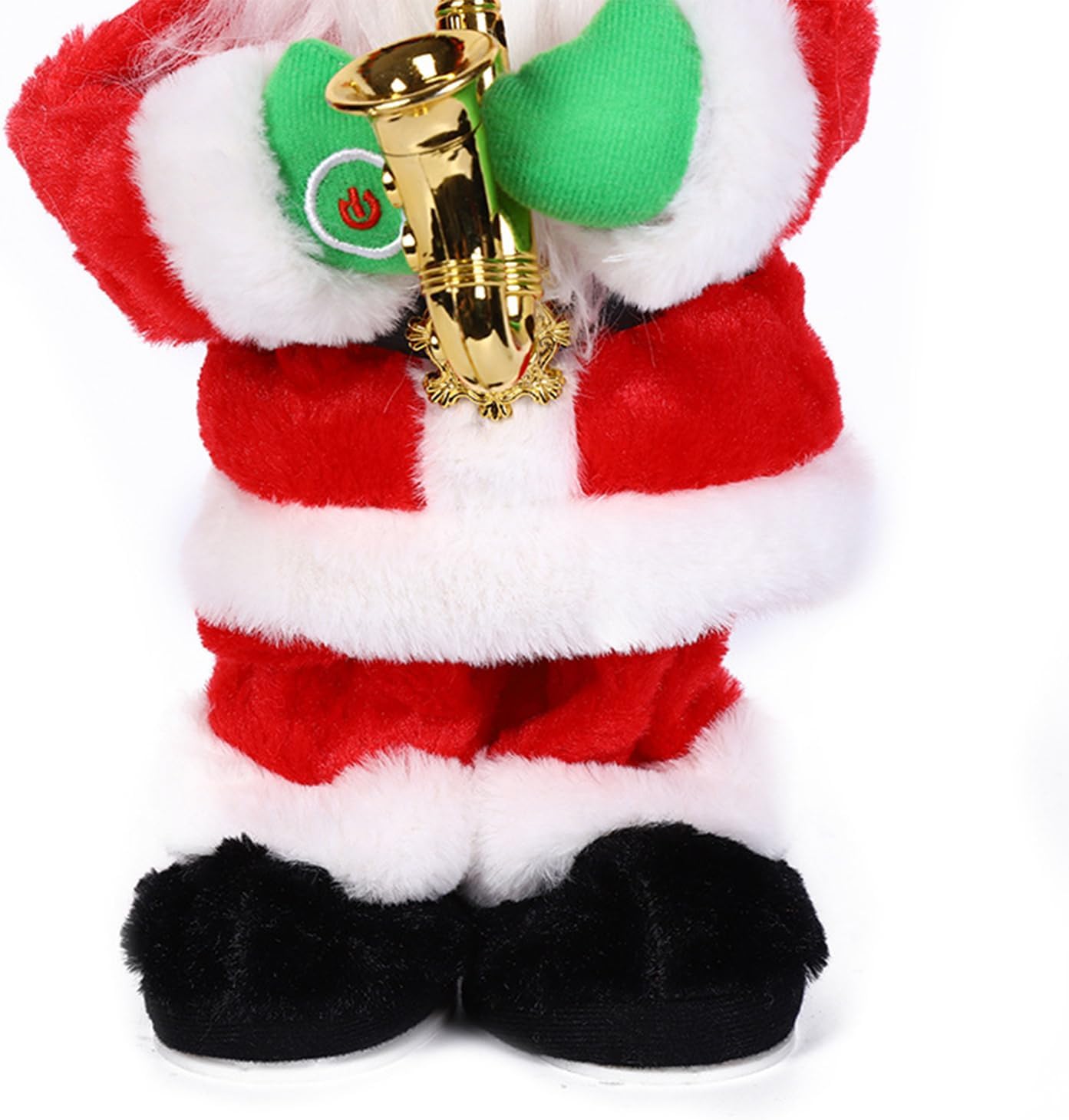 Generatore di ritmo festivo: con la capacità di riprodurre musica natalizia ed eseguire movimenti ispirati al sassofono, questa bambola di Babbo Natale crea un coinvolgente spettacolo di ritmo festivo. Esalta l'atmosfera delle riunioni natalizie e riempie le case di un allegro spirito stagionale. Questo spettacolo ritmato è perfetto per arricchire momenti conviviali e mantenere le tradizioni. Attrazione festosa per tutte le età: la bambola di Babbo Natale è progettata con un divertente elemento musicale che delizia i bambini ed evoca ricordi preziosi negli adulti. Serve come aggiunta ideale alle riunioni di famiglia e diffonde senza sforzo l'allegria natalizia. Il loro design senza tempo e l'accompagnamento musicale li rendono un must per le vacanze che collegano le generazioni e portano un'atmosfera festosa in ogni stanza. Regalo di festa indimenticabile: questa bambola di Babbo Natale con musica e movimento combina musica e movimento per portare gioia festosa nelle case, creando ricordi natalizi duraturi per bambini e famiglie. Allo stesso tempo è un regalo speciale e sorprendente per le occasioni festive, che suscita sempre entusiasmo con il suo mix unico di divertimento ed emozioni e rende le vacanze uniche. Superficie liscia e sicura: la bambola di Babbo Natale danzante presenta una superficie esterna liscia progettata magistralmente che fornisce una costruzione completamente sicura e a misura di bambino. Ideale per far giocare i bambini nel periodo natalizio senza il rischio di lesioni dovute a spigoli vivi o superfici ruvide. Questa superficie liscia garantisce un'esperienza di gioco senza preoccupazioni e promuove la gioia nelle attività festive, mentre la finitura a prova di bambino offre ai genitori tranquillità. Adorabile aggiunta natalizia: il Babbo Natale musicale illumina gli uffici domestici e le esposizioni dei bar aziendali e funge da punto focale decorativo per mensole e scene di feste. Riempie le stanze di un vivace spirito natalizio e di allegria festosa che arricchisce ogni celebrazione e crea un'atmosfera accogliente per gli ospiti. Questa aggiunta aggiungerà un fascino speciale alle tue decorazioni natalizie.
