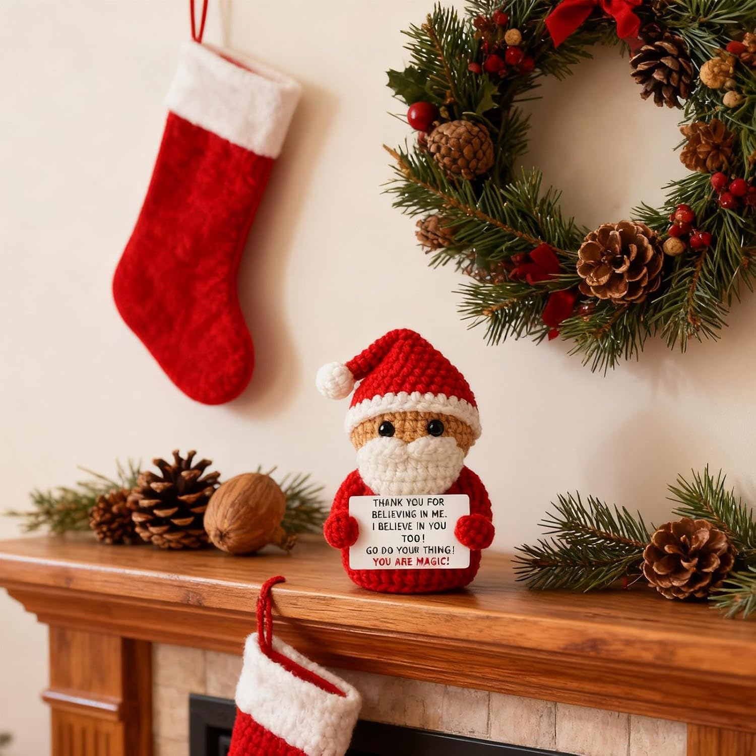 Decorazione Natalizia Adattabile: La bambola all'uncinetto di Babbo Natale presenta un design adattabile che consente di posizionarla su scaffali, caminetti o tavoli, migliorando le decorazioni delle feste e diffondendo allegria natalizia in qualsiasi stanza durante la stagione di Natale, integrando tradizionali per creare un'atmosfera e accogliente che valorizza ogni ambiente della casa con stile festivo e caloroso. Opzioni di Esposizione Versatili: La bambola all'uncinetto di Babbo Natale si adatta a tutti gli stili natalizi, fondendosi con decorazioni stagionali diverse. Perfetta per temi classici rosso-verde o setup moderni minimalisti, porta gioia e unità in ogni ambiente festivo. La sua presenza armoniosa valorizza salotti, aree ricreative e decorazioni tematiche, diffondendo un'atmosfera di celebrazione e coesione durante le festività. Il design versatile garantisce compatibilità con varie ambientazio Decorazione Natalizia Immediata: La Bambola Natalizia all'Uncinetto offre un miglioramento festivo istantaneo come opzione di setup decorativo rapido che non richiede assemblaggio, consentendo agli utenti di godere di un'esperienza di decorazione conveniente mentre trasformano i loro spazi in ambienti natalizi allegri ed efficienti. Questo prodotto ideale per le feste aggiunge un tocco festivo alla casa in modo pratico e veloce, sfruttando la semplicità di utilizzo per creare un'atmosfera gioios Pezzo di Connessione Emotiva: La Bambola all'Uncinetto Natalizia agisce come un pezzo di connessione emotiva incorporando testuali motivanti che infondono energia nei momenti quotidiani, rendendola una perfetta opzione regalo motivazionale per i durante le vacanze, mentre aggiunge un significativo accento natalizio alle celebrazioni festive e all'arredamento domestico con calore e ispirazione. Artigianato Natalizio Incantevole: Progettata con precisione di uncinetto a mano, la bambola all'uncinetto natalizia exhibit dettagli fini e una texture calda, elevando l'ambientazione stagionale e servendo come ricordo prezioso o pezzo decorativo per ambienti festivi. L'artigianato incantevole della bambola all'uncinetto natalizia la rende unica per le decorazioni natalizie, ed è perfetta per regali o come aggiunta alle tradizioni festive familiari.