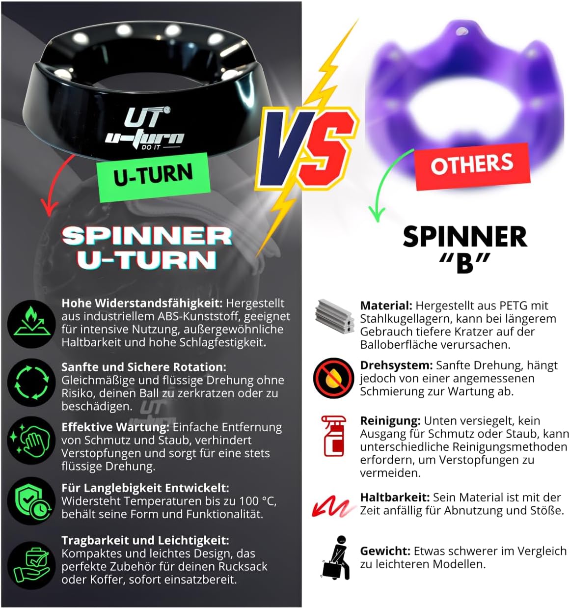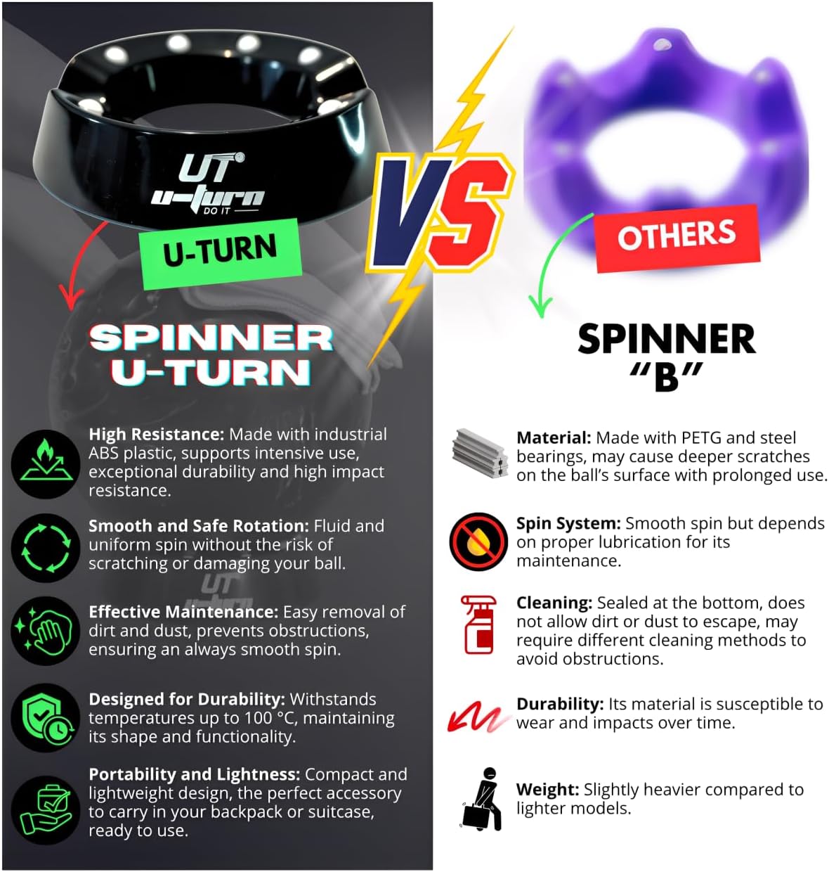 PULIZIA - PULIZIA - LIZZATURA Sfere in plastica di alta qualità consentono una rotazione fluida in tutte le direzioni e garantiscono una pulizia, una lucidatura e una rettifica senza sforzo Plastica ABS resistente, una scelta migliore per i supporti in plastica economici Ruota la palla in modo sicuro senza rischio di danneggiare né la palla né l'accessorio Design compatto per riporlo facilmente nella borsa da bowling Può essere utilizzato anche con altre palline sportive, che aumentano la sua versatilità. Compatibile con Brunswick, Storm, Hammer, Motiv e altre marche Accessorio essenziale per chi cerca di mantenere le proprie palle da bowling in perfette condizioni